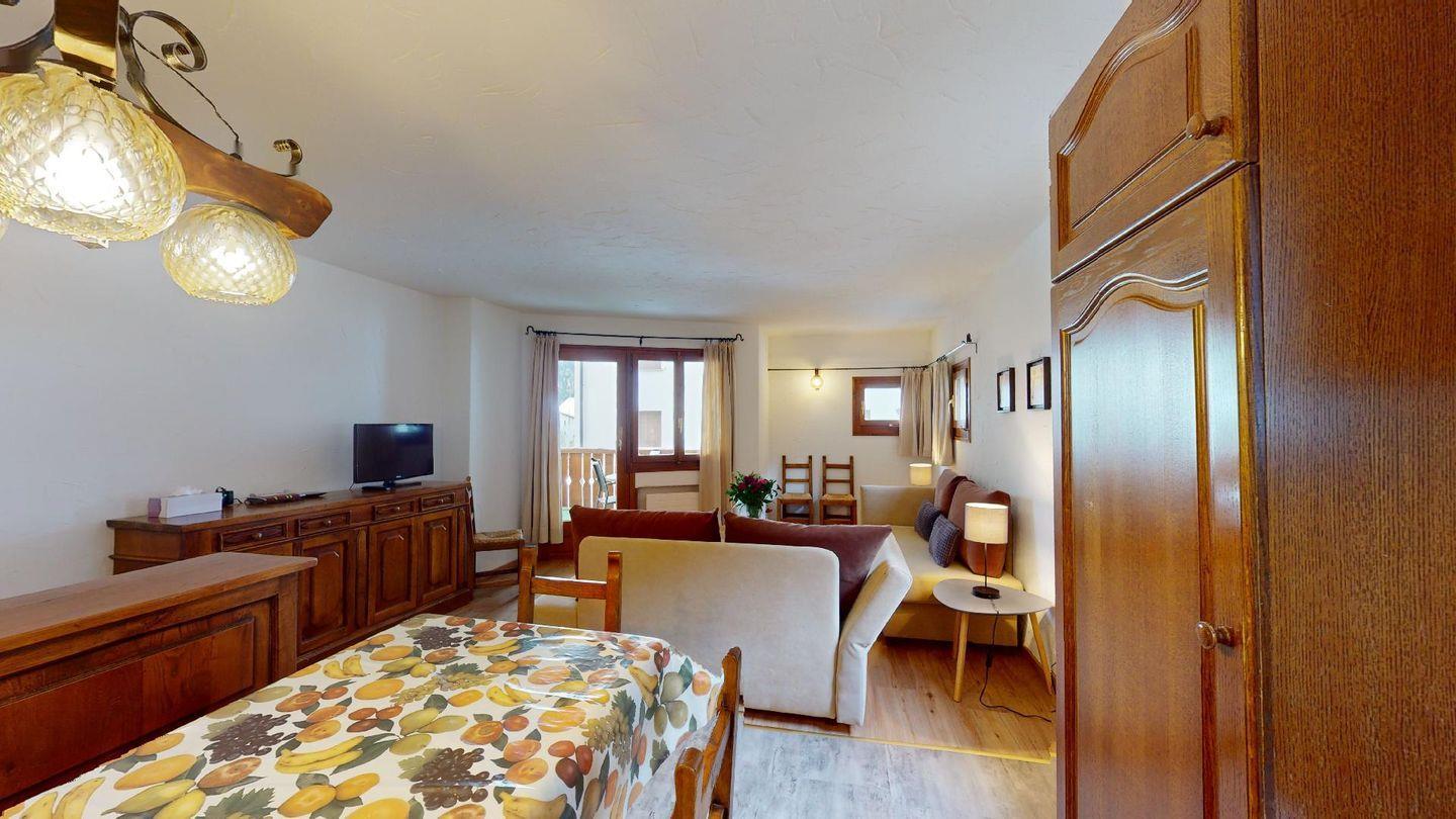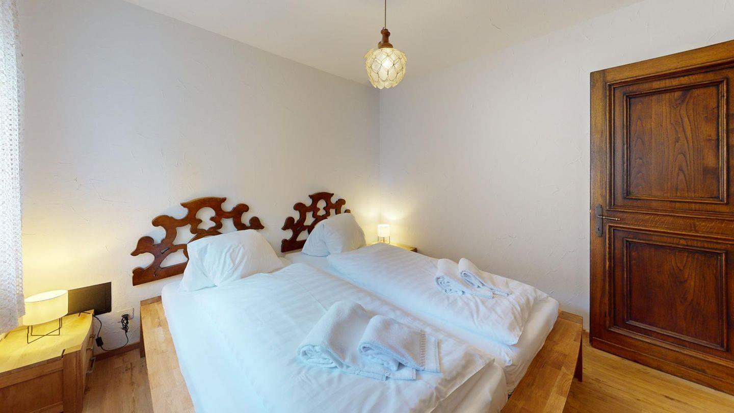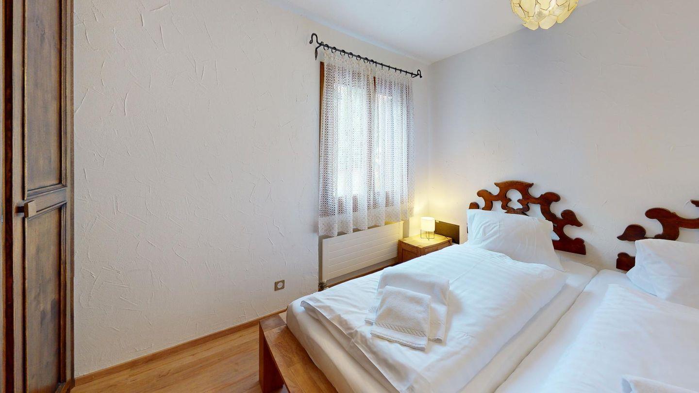 Sympatische, grosszügige 2- Zimmer Ferienwohnung im 2. Stock eines authentischen Engadinerhauses. Wohn- /Esszimmer mit Sofabett, Balkon. Offene Küche. Doppelschlafzimmer, Bad/Dusche. Lift. Garage.