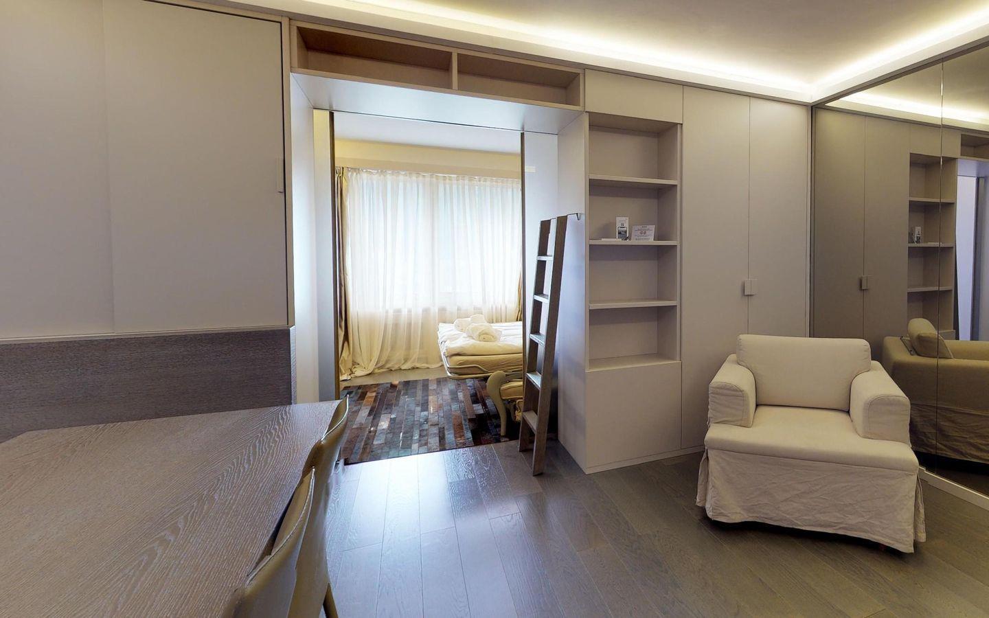 Das Studioapartment ist einladend gestaltet. Ihr Licht durchflutetes Wohnzimmer, das offen zur Küche ist, schafft eine gemütliche Atmosphäre, in der sich jeder sofort wohlfühlt. Hier finden Sie ein komfortables Sofa, einen Esstisch und einen Fernseher. Die gut ausgestattete Küche bietet alles, was Sie benötigen – von einem Herd und Backofen über eine Spülmaschine bis hin zu einer Nespresso-Maschine.