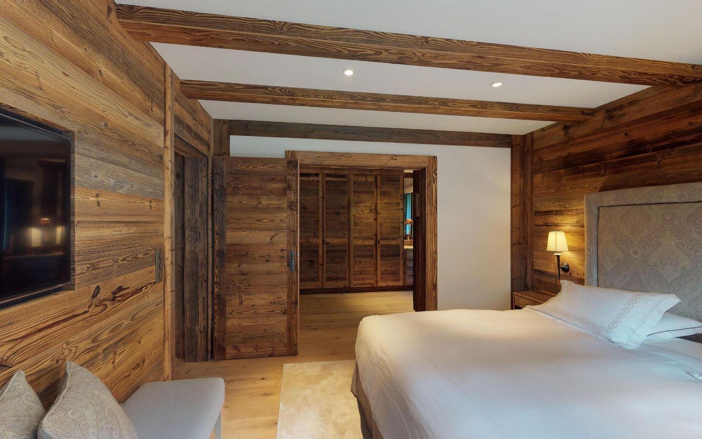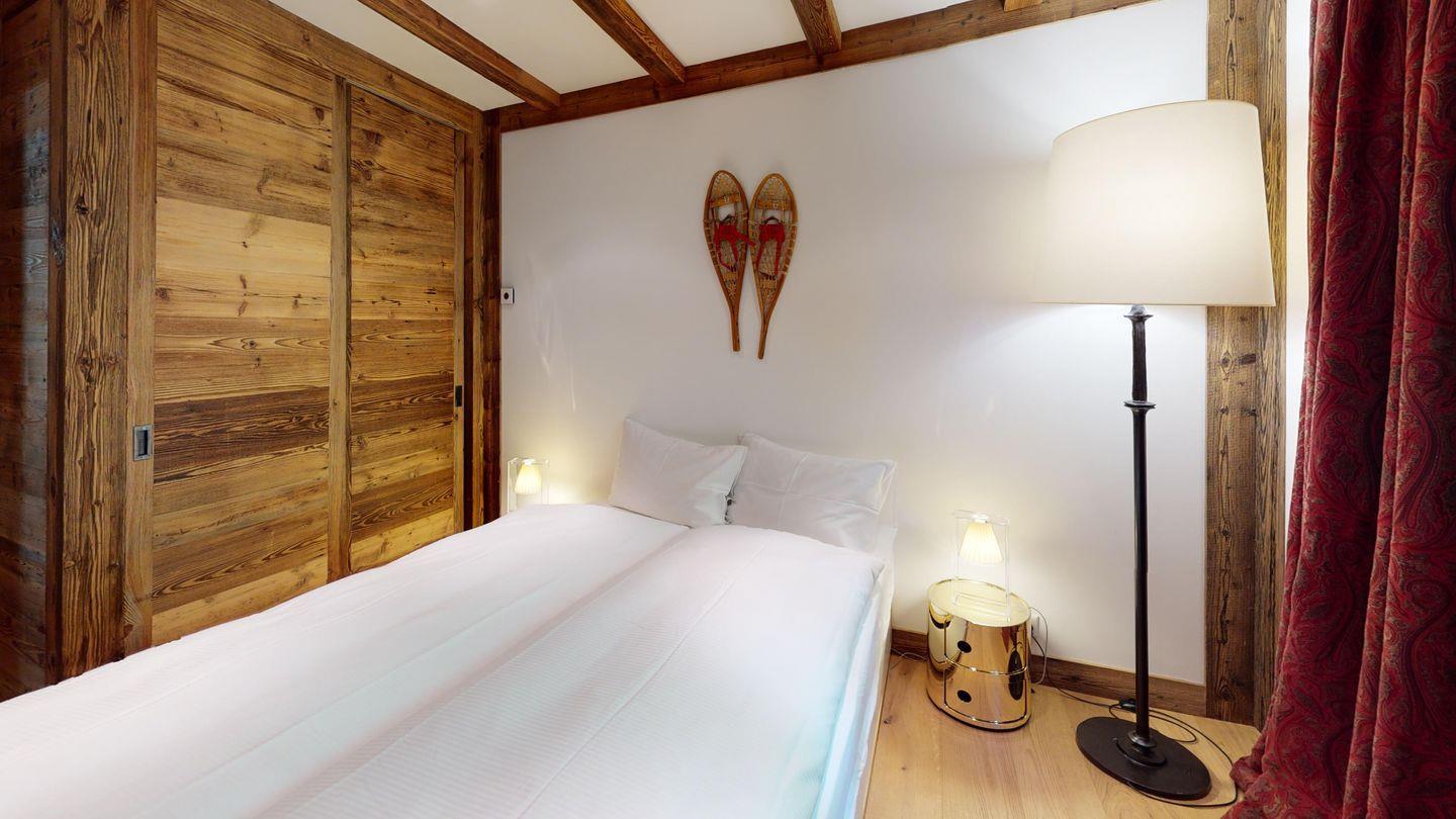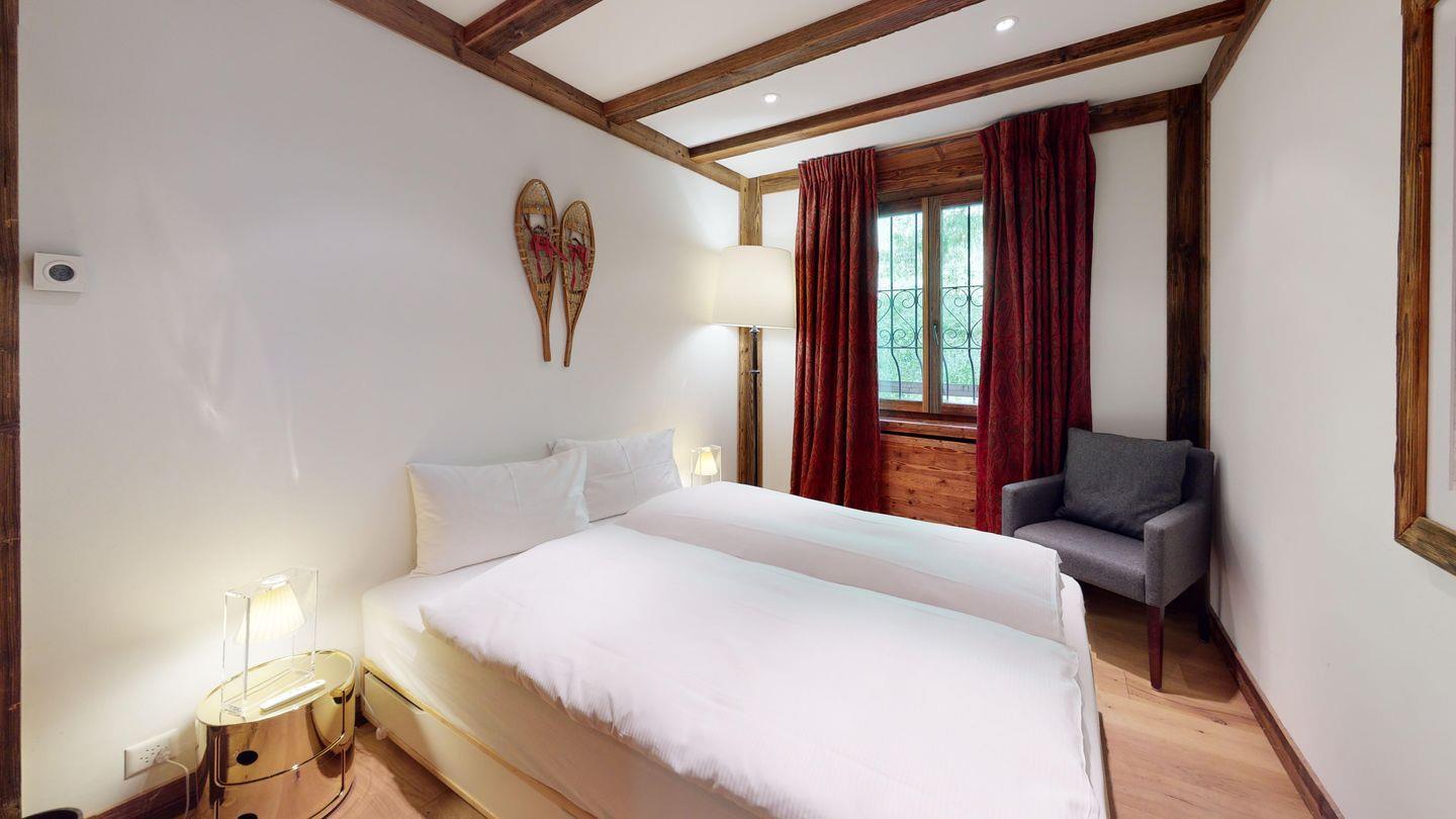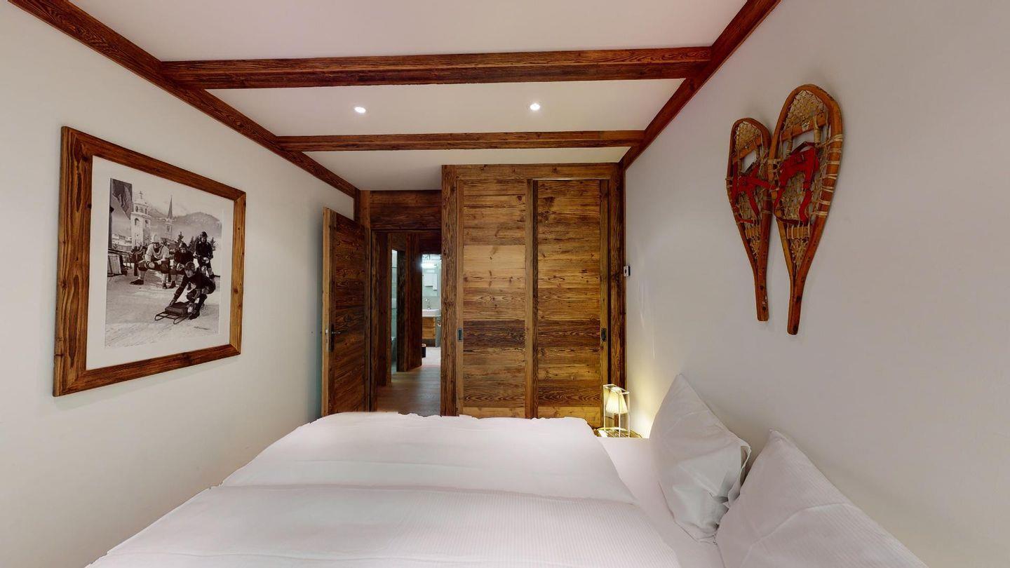 Luxuriöses Design im 'mountainstyle' widerspiegelt diese super attraktive 3-Zimmer Ferienwohnung im 2. Stock. Grosszügiges Wohn- /Esszimmer mit offener Küche, Kamin-Cheminee und Balkon. Grosses Elternschlafzimmer mit Ankleide und TV. 1 kleines Doppelschlafzimmer mit Doppelbett. 2 separate Duschen. Lift. Eigene Garage.