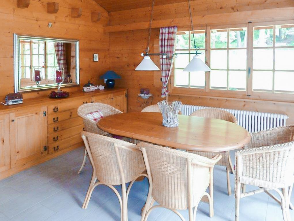 Haus: Schönes Komfort-Chalet mit Sauna und Kamin. 5 Zimmer-Chalet mit 170 qm Wohnfläche über 2 Etagen. 4 Schlafräume, 3 Bäder! Typische Chalet Atmosphäre mit schöner Holzvertäfelung, moderne Komfort-Ausstattung. Internet kostenlos über W-Lan. Waschmaschine, Trockner. Zentralheizung. Nichtraucherhaus. Balkon. Terrasse mit Sitz- und Liegemöbeln, Grill. Großer Garten, teils in Hanglage. Lademöglichkeit für E-Autos nach Vereinbarung. 3 Pkw Stellplätze am Haus, 2 weitere Stellplätze 150 m.
