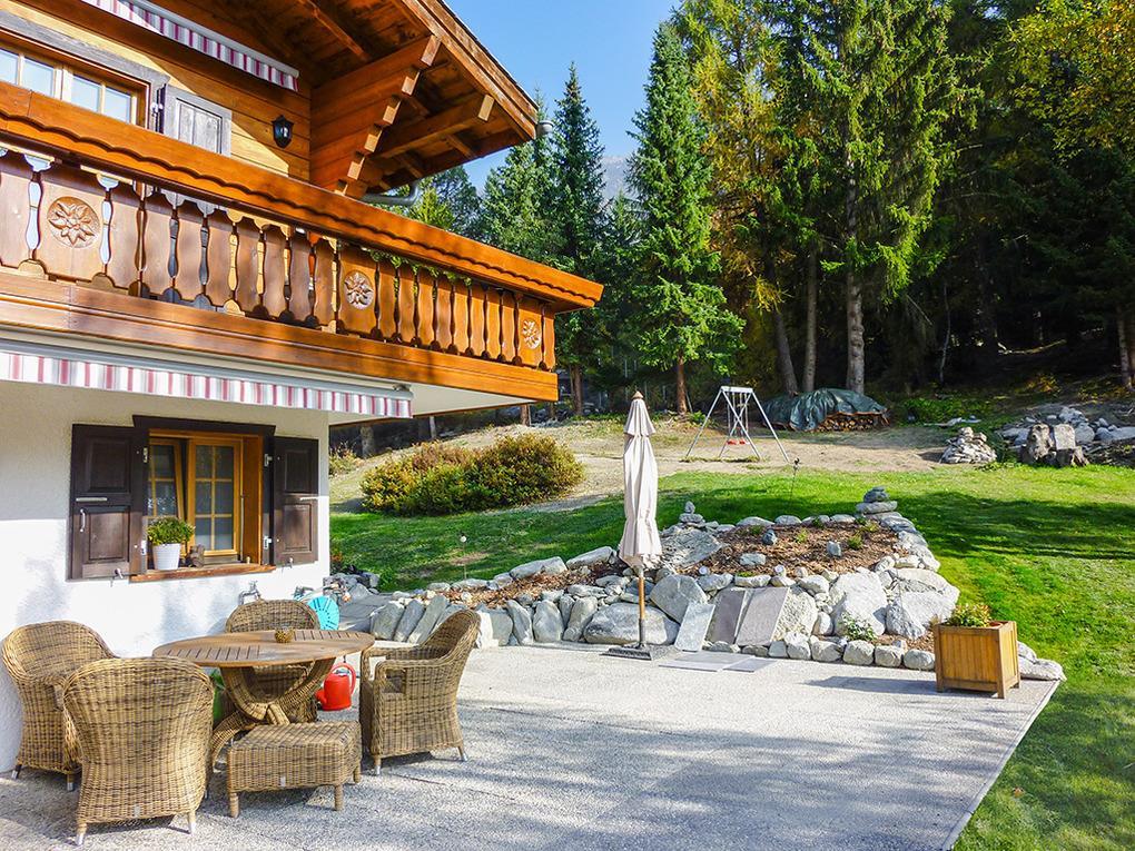 Ort: Niedergrächen. Ruhige Lage auf 1.500 m Höhe in einer Chaletsiedlung unterhalb des autofreien Orts Grächen. Schöner Panoramablick auf das Weisshorn (4.505 m) und die imposante Bergwelt des Mattertals. Ortsmitte Grächen mit Supermarkt, Restaurants, Gondel (Sommerbetrieb) zu Fuß nur 1,2 km (Wanderweg), per Pkw 2,5 km. Postbus 250 m. Der Europaweg Grächen-Zermatt verläuft in unmittelbarer Nähe des Hauses. Vielfältige Wander- und Mountainbikewege rund um Grächen und die Hannigalp.