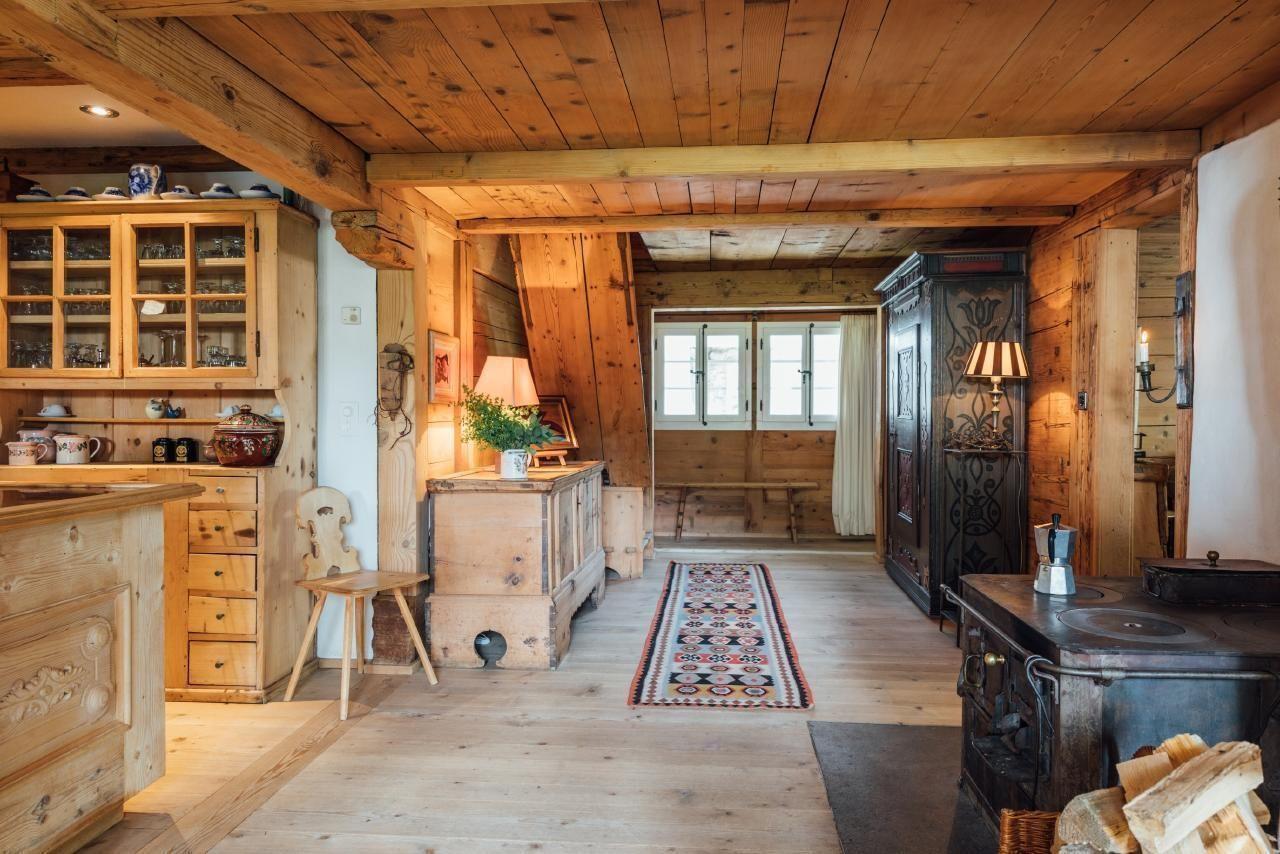 Inside, the BLACHTY welcomes you with a lovingly designed eat-in kitchen, which is equipped with a wooden cooker, a corner bench and an antique table. The entire living area is furnished with authentic period furniture, complemented by contemporary works of art from the owners' family. The functional kitchen has a cooking island and is equipped with everything you need to conjure up culinary masterpieces. A traditional wood-burning cooker provides cosy warmth, alongside modern amenities such as an oven and dishwasher. In the cosy living room, sofas and a wing chair next to an old sandstone stove invite you to relax, while two spacious bedrooms with comfortable beds and a loft with a TV and reading room round off the offer.