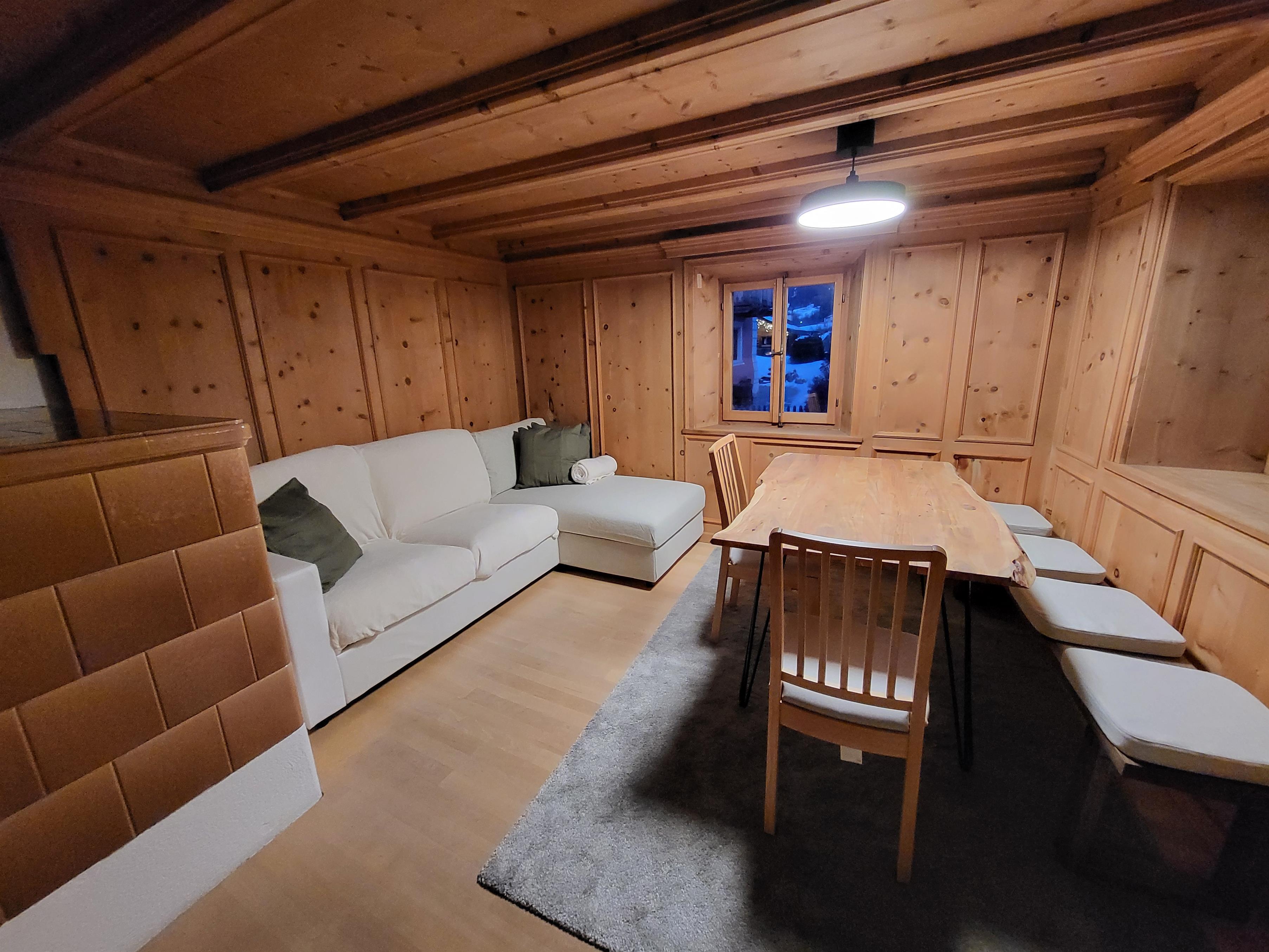 Das charmante alte Bauernhaus liegt in der Via Paclera, einer ruhigen Gasse im malerischen Sta. Maria, eingebettet in die idyllische Biosfera Val Müstair. Umgeben von unberührter Natur, ist das Haus der perfekte Ausgangspunkt für Ihre Sommer- und Winterabenteuer. Tauchen Sie ein in den sanften Tourismus, fernab von Konsum und Hektik, und genießen Sie die Ruhe und Beschaulichkeit unserer einfachen, aber mit viel Liebe zum Detail eingerichteten Ferienwohnung.Die UnterkunftVerbringen Sie Ihre nächsten Ferien in einer gemütlichen Ferienwohnung in Sta. Maria, gelegen in der wunderschönen Biosfera Val Müstair. Die Wohnung bietet auf 2 Zimmern Platz für 3 (ideal) bis 4 Personen. (bei 4 Personen wird es etwas enger im zweiten Zimmer)Voll funktionstüchtige Küche mit Kochfeld, Kühlschrank, Geschirr, Abwaschmaschine und Backofen, Wasserkocher ist für die Zubereitung von Michelin-Sterne Menus geeignet.Das Badezimmer verfügt über eine Badewanne, ein WC und eine Waschmaschine - ideal, um nach einem aktiven Tag im Freien zu entspannen oder Ihre Wäsche zu erledigen.Das Wohnzimmer bietet eine gemütliche Atmosphäre mit einem Sofa, einem Esstisch mit ausreichend Sitzmöglichkeiten sowie einem Fernseher für entspannte Abende. Selbstverständlich steht Ihnen auch ein Internetzugang zur Verfügung.Vor dem Haus haben Sie die Möglichkeit, kostenlos einen Parkplatz zu nutzen. Sollten Sie mit viel Gepäck, Fahrrädern oder Ski-Equipment anreisen, steht Ihnen ein zusätzlicher Abstellraum im dazugehörigen Stall zur Verfügung.Im 2. Stock der Wohnung finden Sie einen kleinen, südlich ausgerichteten Balkon - der perfekte Ort, um den Tag bei Sonne und frischer Bergluft zu genießen.Wir laden Sie ein, die Natur und Ruhe der Biosfera Val Müstair zu erleben. Ihre Ferienwohnung wartet auf Sie!