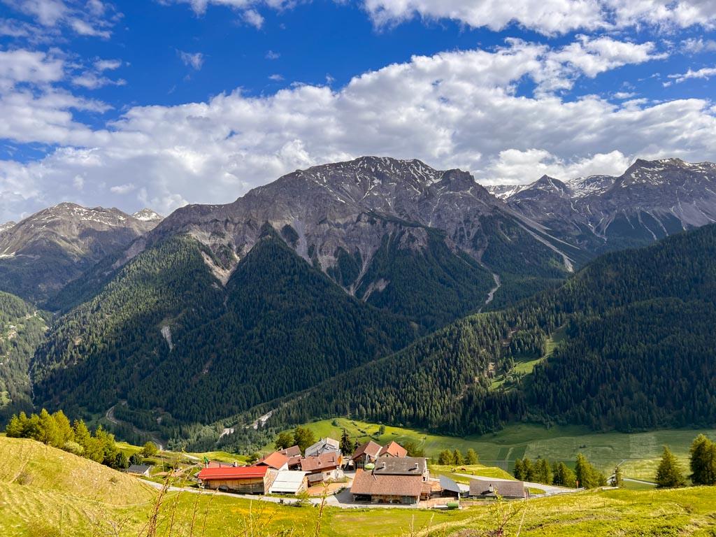 In a sunny south direction, high above Val Müstair, our fully equipped appartment"Bergblick" is located in the small village Caistas at an altitude of 1880m.