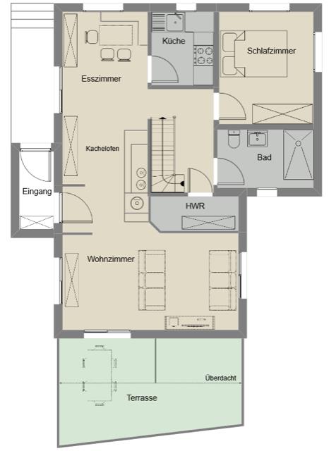 Two built-in tiled fireplaces are in the appartment to provide a pleasant heat in the house. Wood is available. The wintergarden is NOT heated but due to the sun it during daytime it can be used most of the winter time!