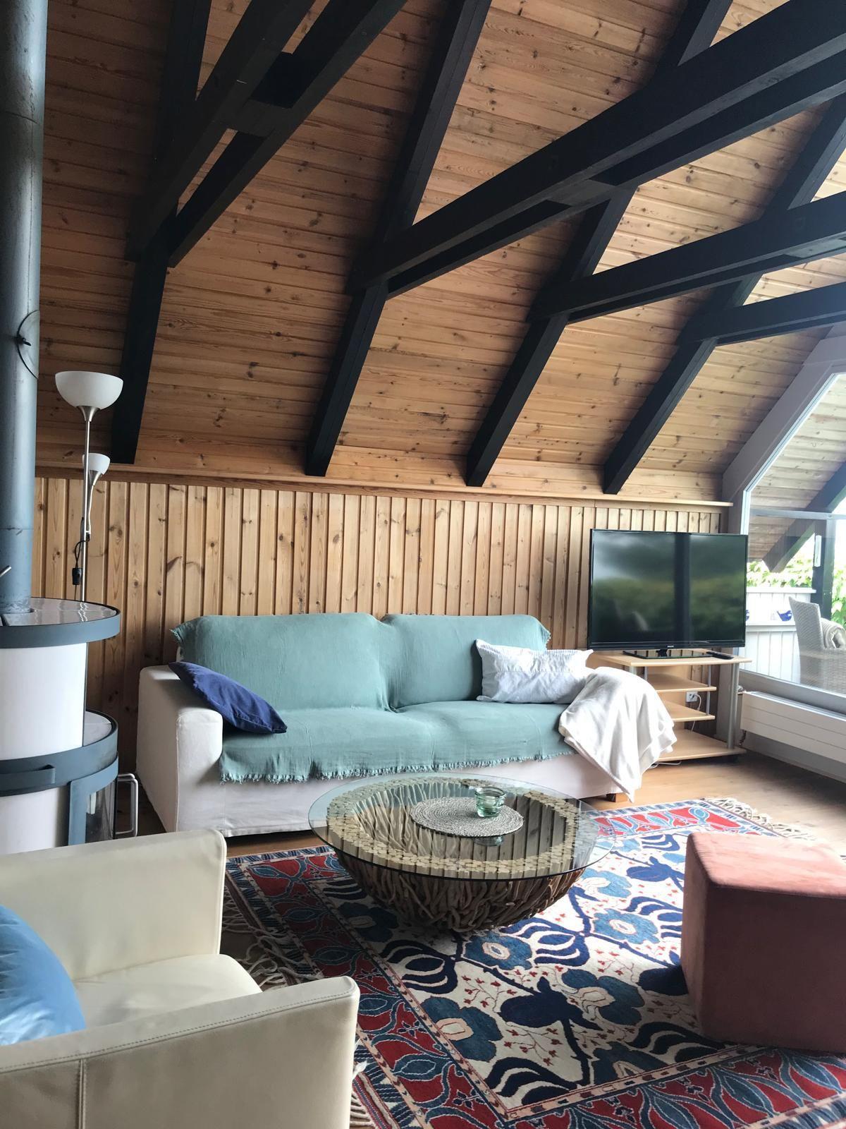 In Steckborn, on a hillside, 4 1/2 room maisonette flat (timber construction) with separate entrance from the outside, fireplace inside and outside, open-plan kitchen into the dining-living room, a bathroom with bath and shower and a large sun terrace with fantastic views of Lake Constance (Untersee TG).