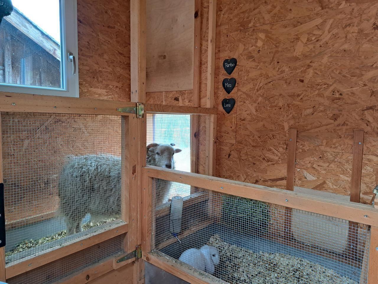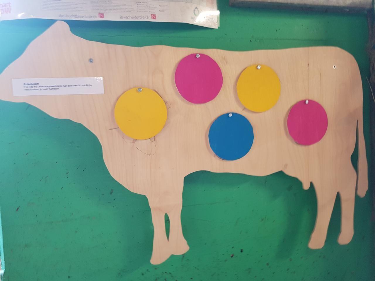 Around 18 dairy cows, 5-7 calves and cattle, 6 goats, 2 dwarf sheep, 3 rabbits and 4 chickens live with us on the farm.