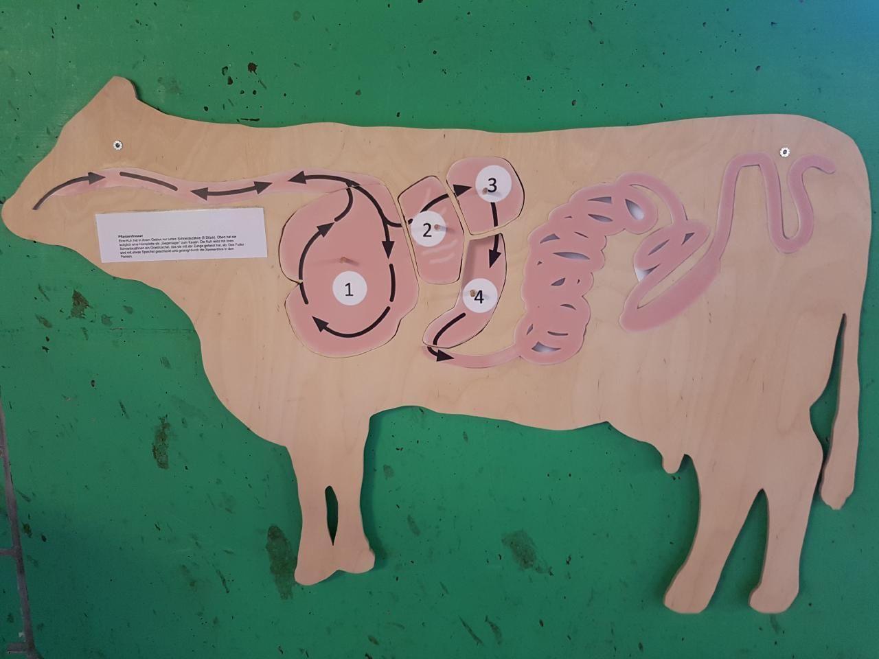 Around 18 dairy cows, 5-7 calves and cattle, 6 goats, 2 dwarf sheep, 3 rabbits and 4 chickens live with us on the farm.