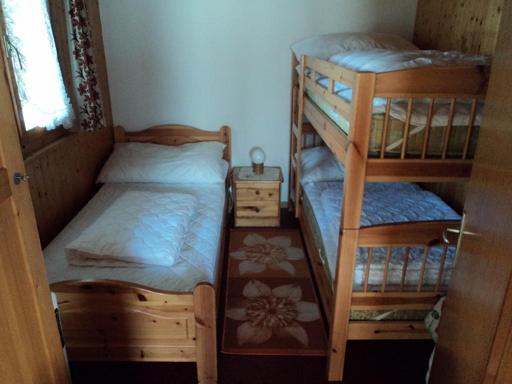 1 Doppelzimmer mit gratis Kinderbett (bis 4 Jahre), 1 Zimmer mit Einzelbett und einem Etagenbett. Dieses Zimmer ist vor allem für Kinder geeignet Wohnzimmer: