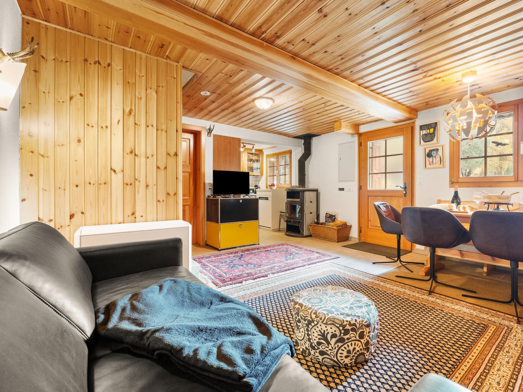 "Lätthaus Rot", 3-room house 75 m2 on 2 levels. Simple and comfortable furnishings: living/dining room with Scandinavian wood stove, dining table, digital TV, electric heating and boiler. Exit to the garden, to the terrace. Open kitchen (oven, dishwasher, 4 ceramic glass hob hotplates, toaster, kettle, electric coffee machine, raclette grill, fondue Set (cheese)). Sep. WC. Electric heating. Upper floor: (spiral staircase), 1 double bedroom with 1 double bed (180 cm, length 200 cm). 1 room with 1 bed (90 cm, length 200 cm). Shower/WC. Natural stone floors. Terrace furniture, barbecue, deck chairs. View of the countryside. Facilities: washing machine. Internet (WiFi, free). Parking at the house, in winter at 100 m. Please note: non-smoking house.