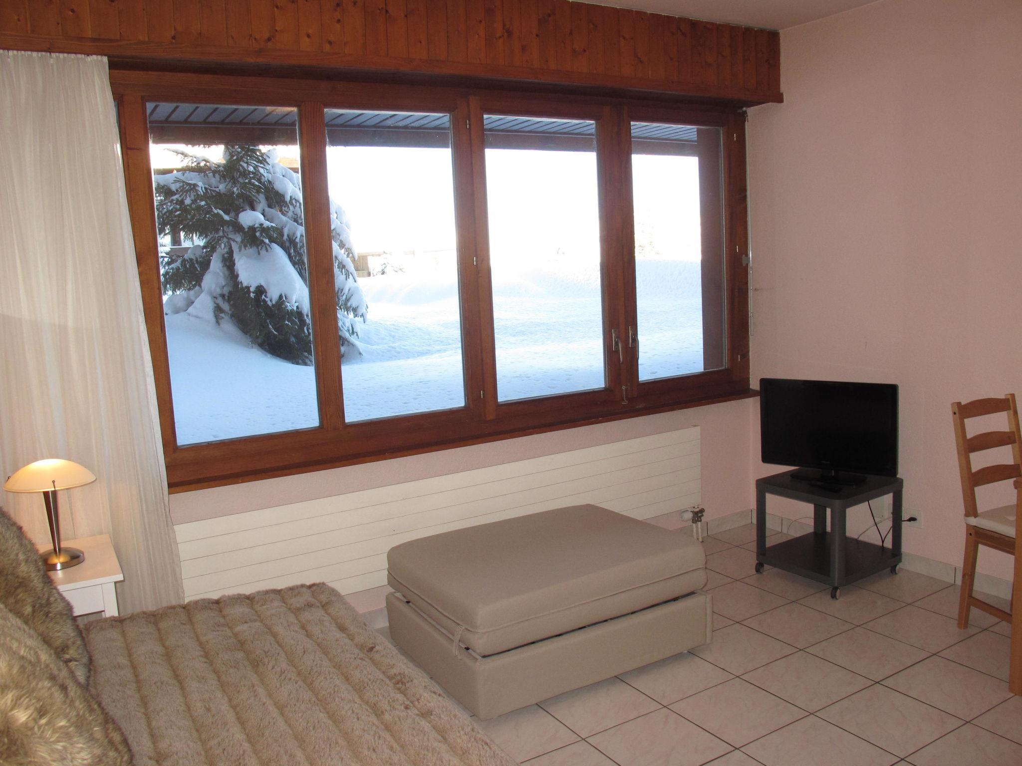 Resort. In the resort, 20 m from the skiing area. For shared use: indoor pool (seasonal availability: 14.Dec. - 10.Apr. and 13.Jul. - 24.Aug. pool opening hours: 10:00-12:00 and 15:00-19:00). In the house: storage room for skis, central heating system. Parking (extra), communal covered parking (extra). Grocery 100 m, restaurant, bus stop 20 m. Walking paths from the house 1 m, ski lift 100 m, slopes 20 m. Please note: car recommended. The keys‘ handover takes place by the agency Imalp in Thyon.