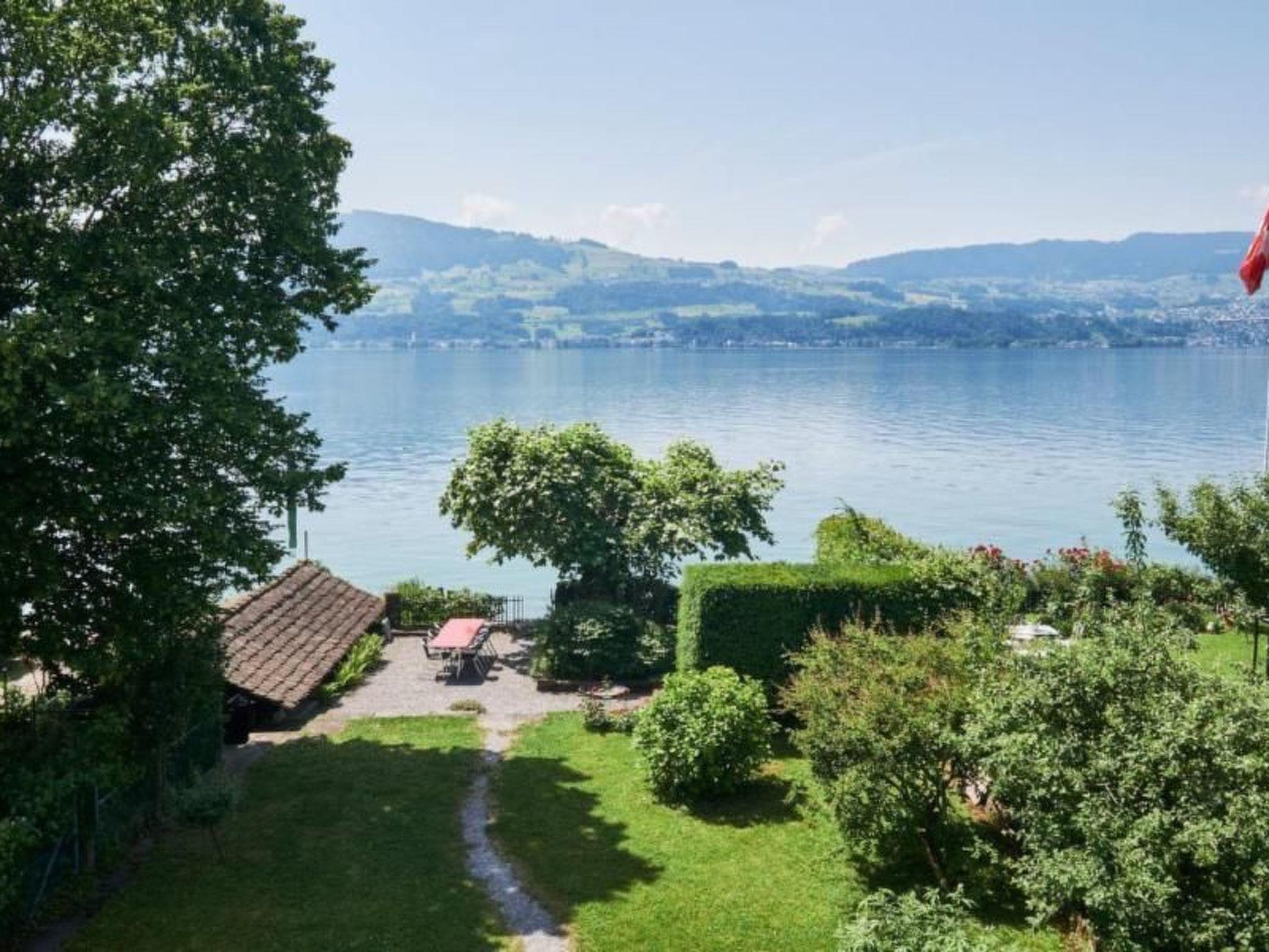 Garden: The house has a garden directly bordering Lake Zurich. The garden of the house leads unsecured to the lake. The owner declines any liability arising from this fact.