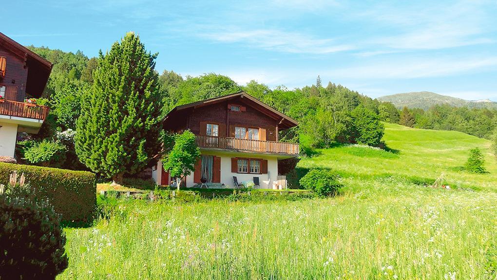Haus: Schönes Chalet mit Sauna und Kamin. 4-Zimmer-Haus mit ca. 90 qm Wohnfläche über 2 Etagen. Gemütlich-rustikales Chalet-Ambiente mit Holzvertäfelungen im ganzen Haus. Internetzugang über W-Lan. Waschmaschine. E-Heizung. Warmwasser über 300 l E-Boiler. Balkon, Südterrasse mit Sitzmöbeln. 1 reservierter Pkw-Stellplatz (70 m).
