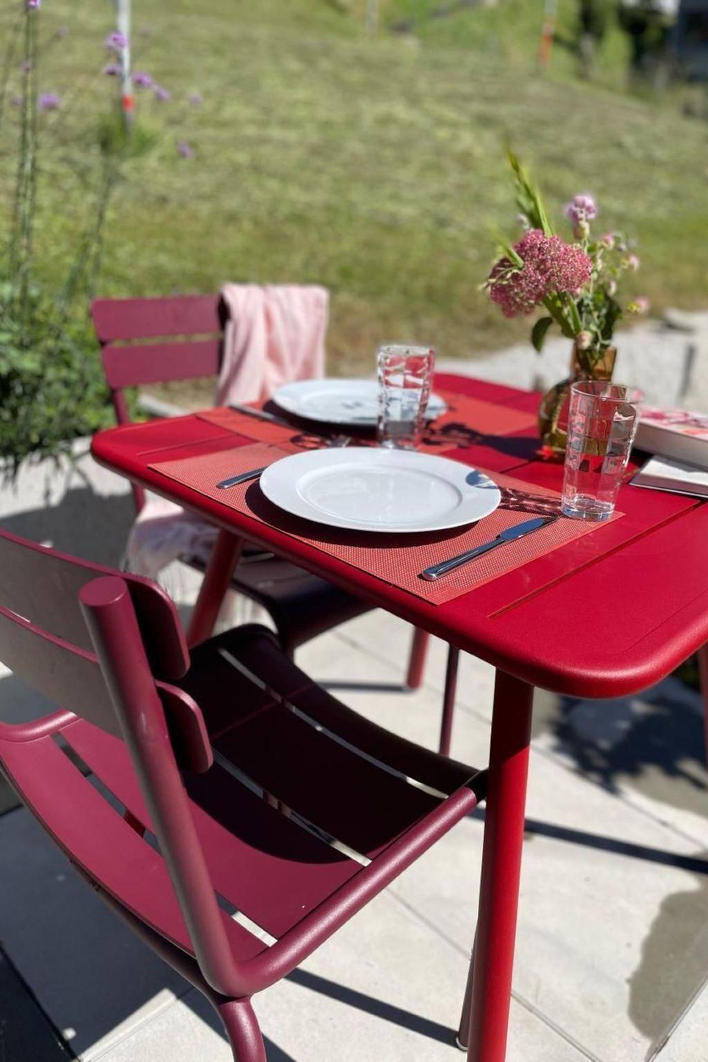 Time for beautiful hikes or relaxation! Enjoy a stylish experience in our centrally located 2.5 room flat in the village of Urnäsch in the beautiful Appenzellerland. The newly renovated flat has a modern kitchen with a spacious cooking island. In the living room there is a round dining table for 4 people, a children's chair can be added on request. In addition, a cosy sofa (extendable, space for 2 adults) invites you to linger. Two cosy armchairs round off the stylish furnishings. The bedroom with a double bed promises restful nights. A baby cot can also be booked. The baby cot must be placed in the living room. The stylish bathroom has a walk-in shower, WC and washbasin with large mirror. A separate garden seating area awaits you outside, inviting you to enjoy cosy evenings. There is free public parking directly opposite the holiday flat. The railway station, the post bus stop (connection to Schwägalp - Säntis) and all shops for daily needs are just a two-minute walk away. Despite the rural location, the village of Appenzell (10 km) and the cultural city of St. Gallen (20 km) are within easy reach. We are a member of the Oskar holiday card, which can be purchased directly from us.
