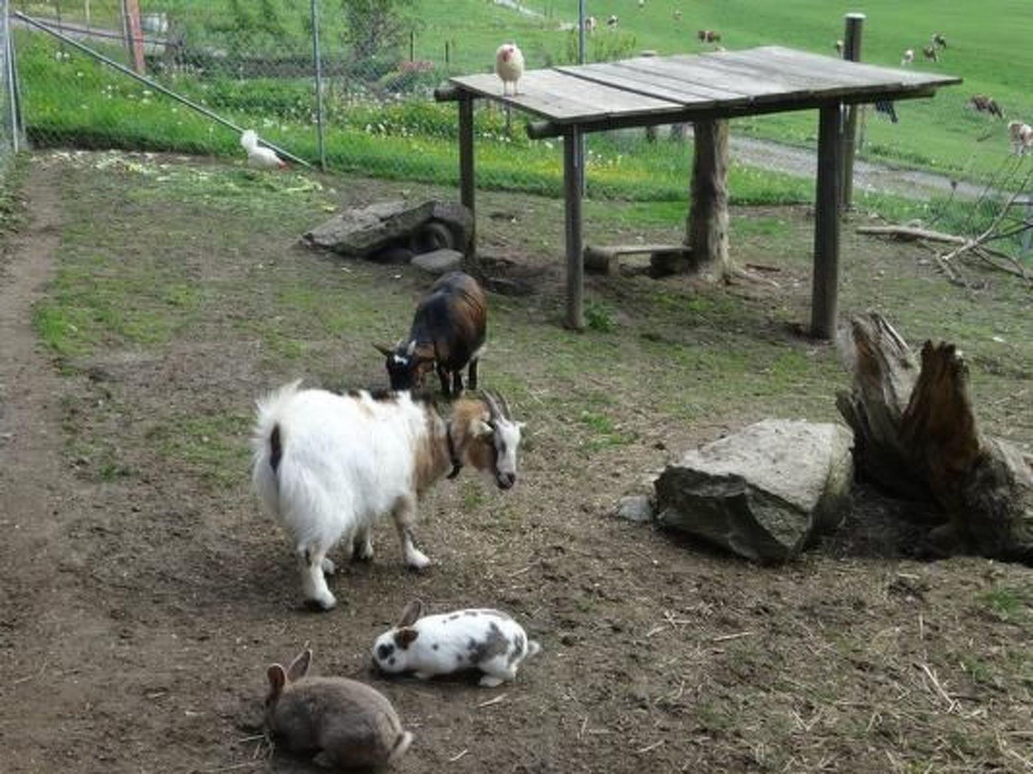 The outdoor area of our farm invites you to enjoy numerous activities. Enjoy the marvellous view of the Stockhorn-Niesen mountain range as well as the Eiger, Mönch and Jungfrau. There is plenty of space for the children to play, a seating and barbecue area for cosy hours outdoors and the opportunity to relax by a quiet stream. A playground on the farm and the proximity to our animals, including suckler cows, cattle, calves, dogs, cats, rabbits, goats and chickens, make every day an adventure.