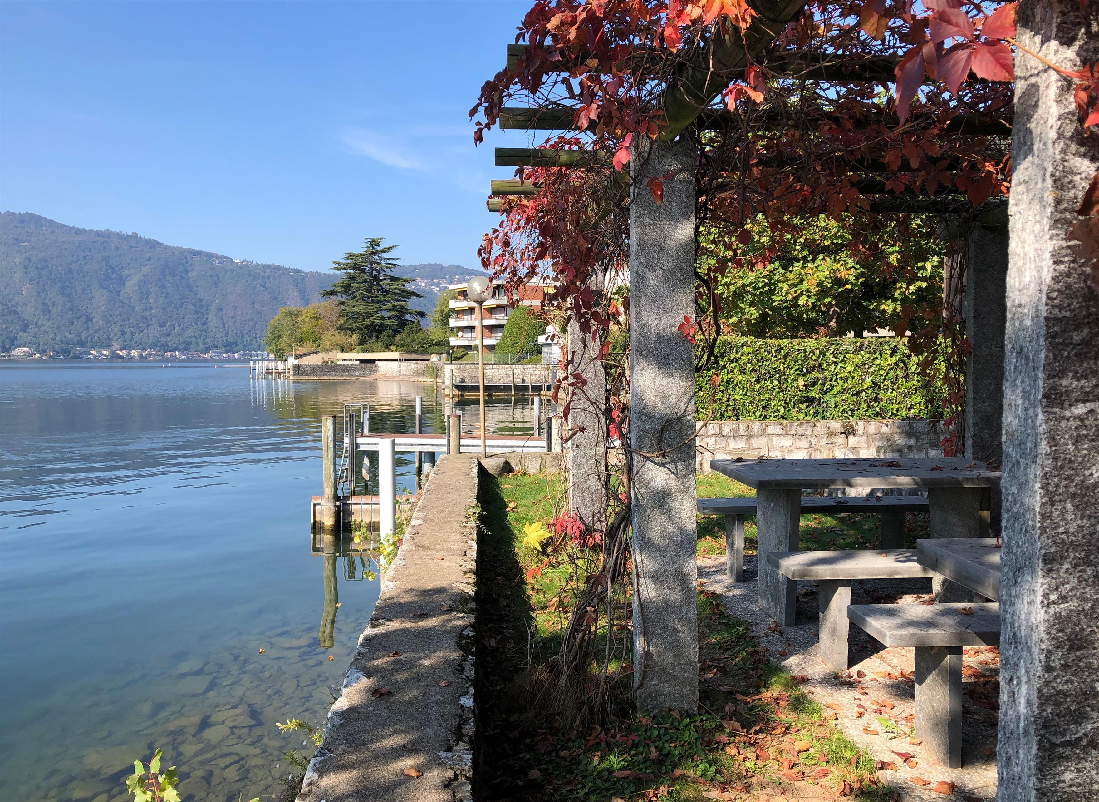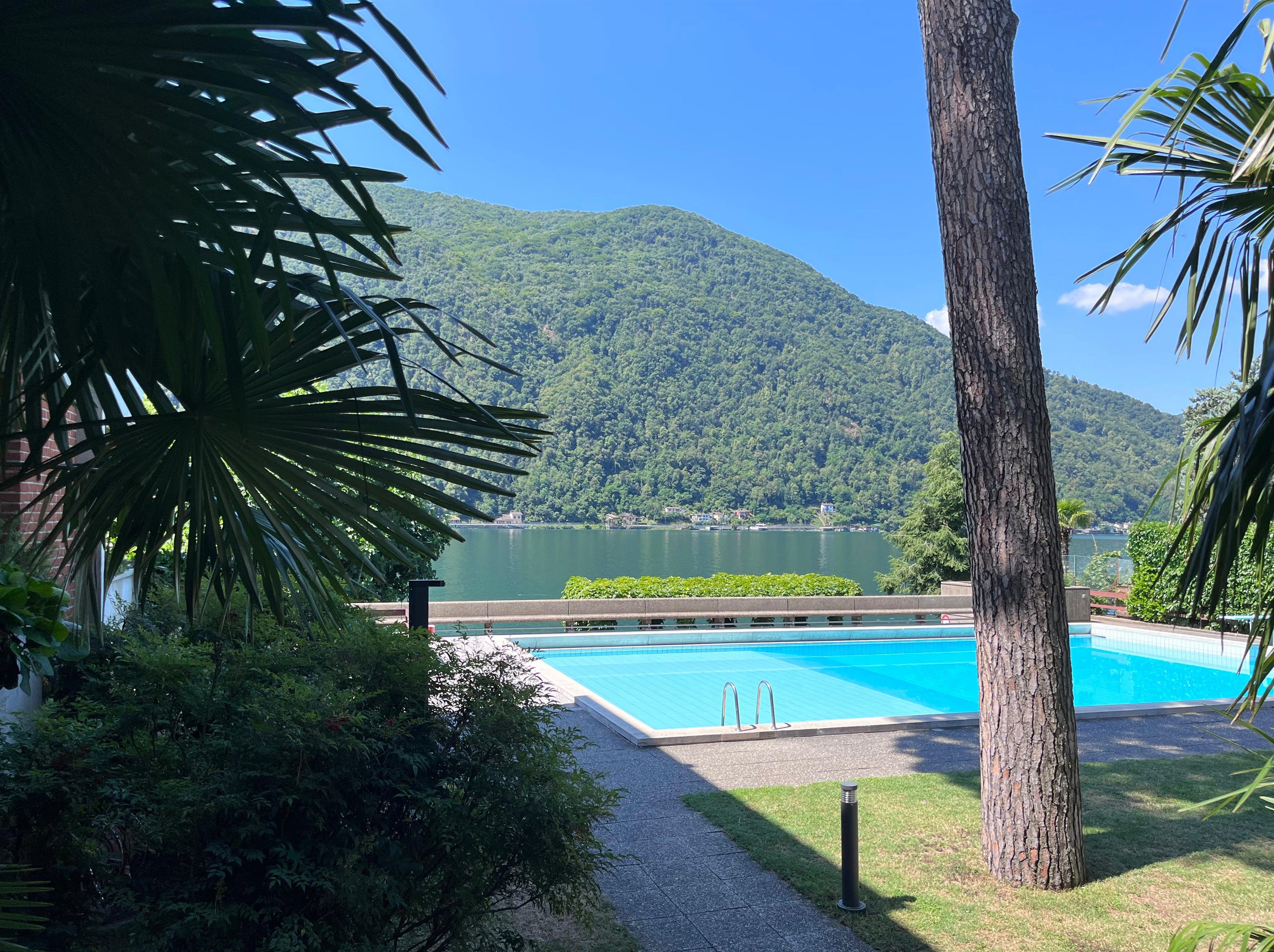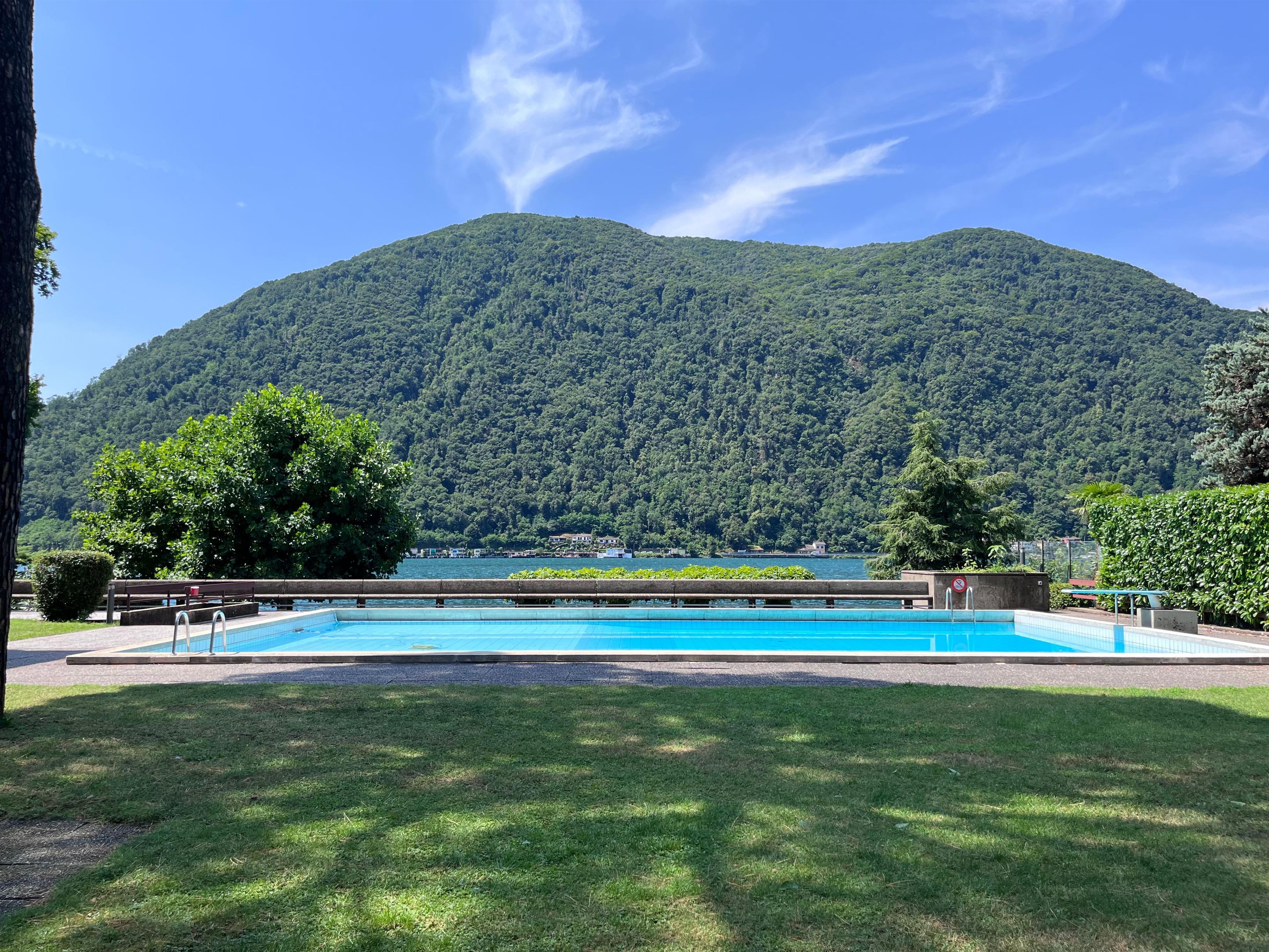3-room apartment on the Lugano lake with outdoor pool and garden. Surrounded by green, with direct and private access to the lake, it offers opportunities for outdoor and water activities. A grill area and stone tables are right on the lakeshore. In front to the train station and to public transport the place is 1 hour away from Milan city and Malpensa airport, with direct train connection. A small indoor pool with a hot sauna cabin are available when the outdoor pool closes during cold season.