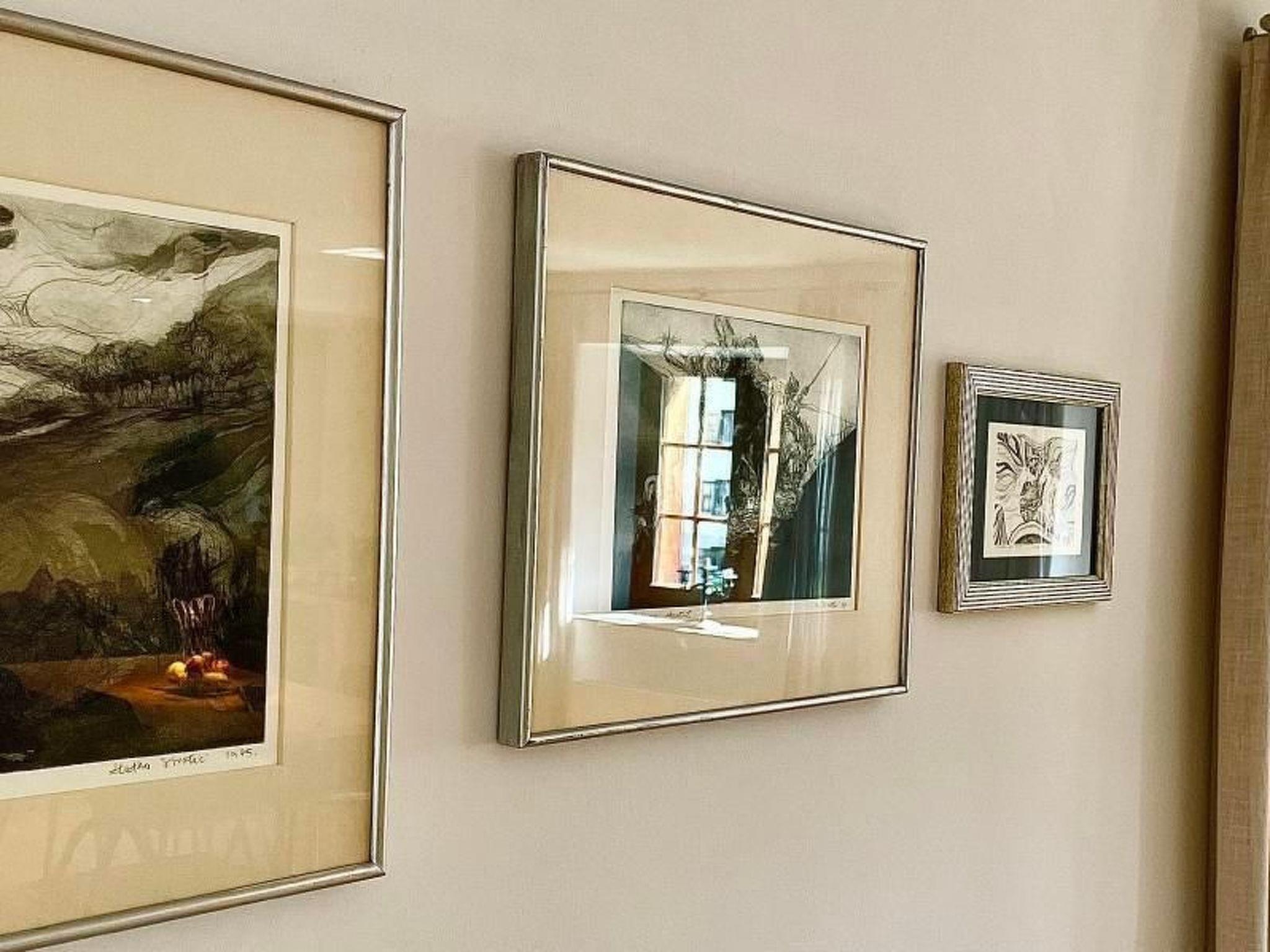 The living, dining and cooking area is generously proportioned. The fold-out sofa can be used as a cosy seat during the day and as a sleeping area for one adult or two children at night. An armchair invites you to read or relax. Three radiators provide cosy warmth. Wi-Fi is available throughout the flat and there is a Sonos Cube for music. Behind the living room, windows offer a view of the garden.