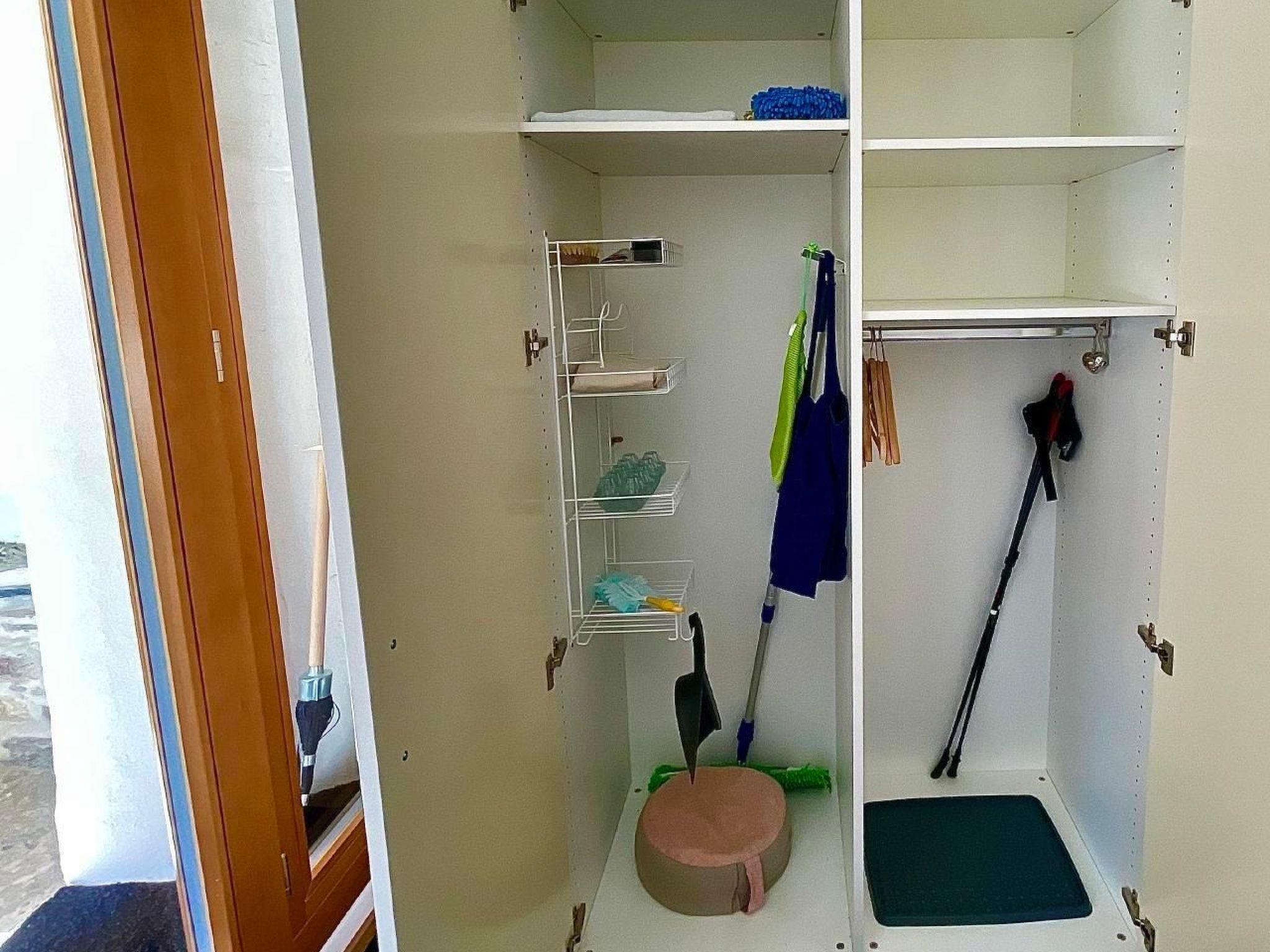 As you enter the building, you are greeted by a bright foyer. A cupboard on the left separates the entrance area from the living room and offers space for jackets, shoes and accessories. On the right, a large radiator is used to dry clothes and shoes, ideal after a day of skiing or hiking. The high-quality oak floor runs through the entire flat and immediately creates a cosy ambience.