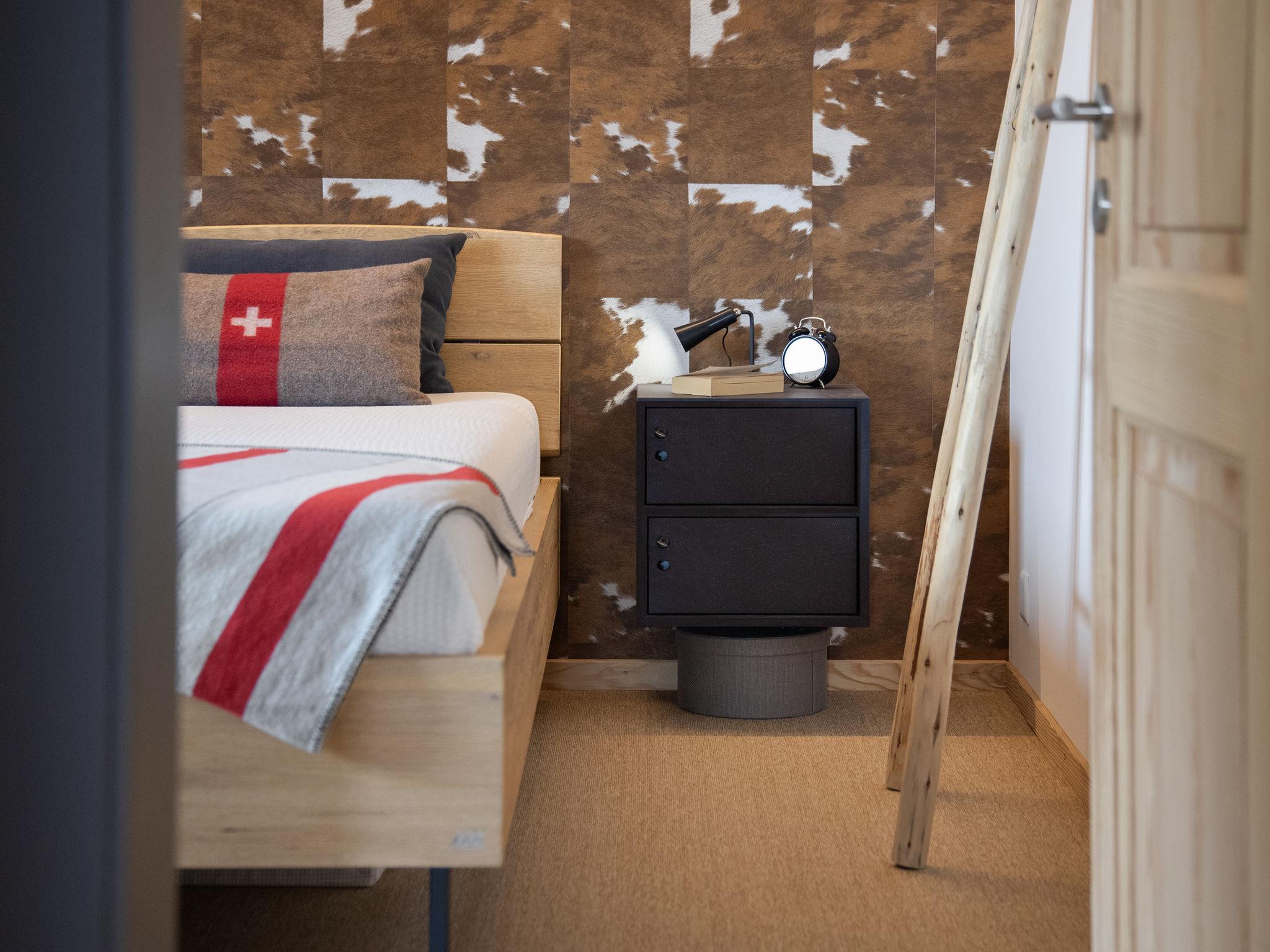 "Soleil des Alpes", 3-room apartment on the upper ground floor, south facing position. Comfortable and modern furnishings: large living/dining room with Scandinavian wood stove and cable TV. Exit to the balcony, to the terrace, south facing position. 1 large room with 1 double bed (1 x 180 cm, length 200 cm), cable TV. Exit to the terrace. 1 large room with 2 beds (90 cm, length 200 cm), cable TV. Kitchen (4 hot plates, oven, dishwasher, toaster, kettle, microwave, freezer, electric coffee machine, Capsules for coffee machine (Nespress) extra, raclette grill, fondue Set (cheese)). Shower/WC, sep. WC. Parquet floors. Balcony, south facing position. Balcony furniture. Very beautiful panoramic view. Facilities: hair dryer. Internet (WiFi, free). Parking (1 car). Please note: suitable for families. Non-smokers only.