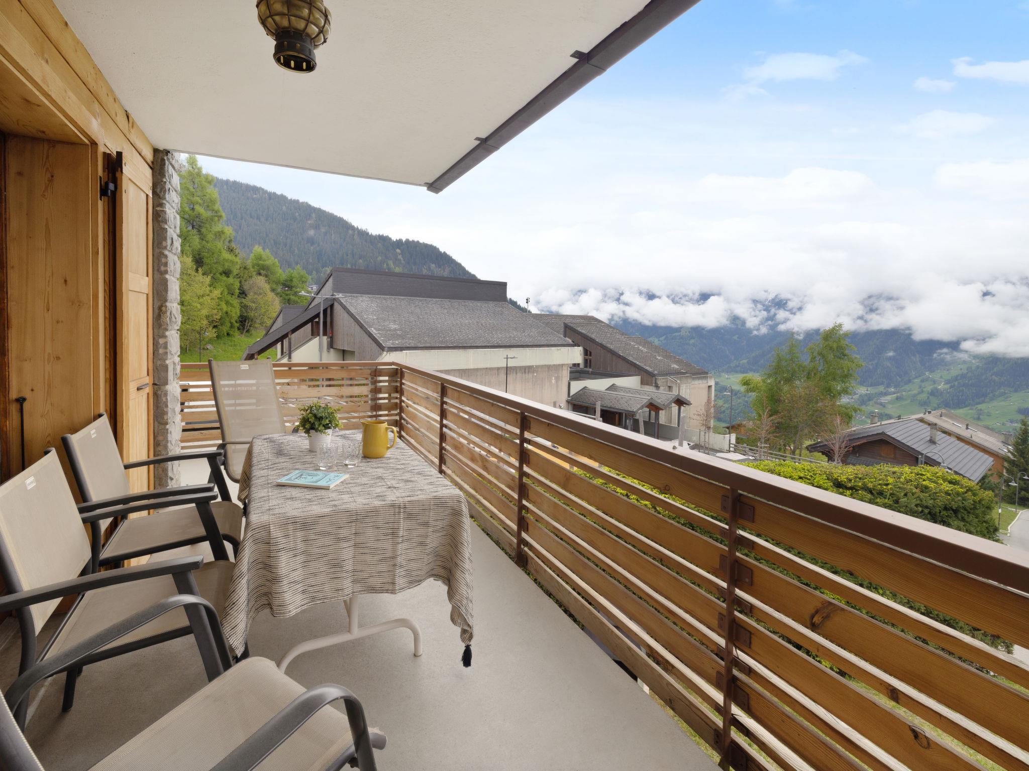 "La Toura", 4-room apartment 70 m2 on 1st floor, south-east facing position. Partly renovated in 2022, beautiful and cosy furnishings: living/dining room with open-hearth fireplace, radio and CD-player. Exit to the balcony. 2 rooms, each room with 2 beds (90 cm, length 200 cm). 1 room with 1 french bed (1 x 180 cm, length 200 cm). Open kitchen (oven, dishwasher, 4 induction hot plates, toaster, kettle, microwave, fondue Set (cheese)). Bath/WC. Balcony 10 m2, south facing position and, east facing position. Balcony furniture. Very beautiful view of the mountains and the valley. Facilities: hair dryer. Internet (WiFi, free). Parking space n milieu at the house. Please note: non-smokers only.