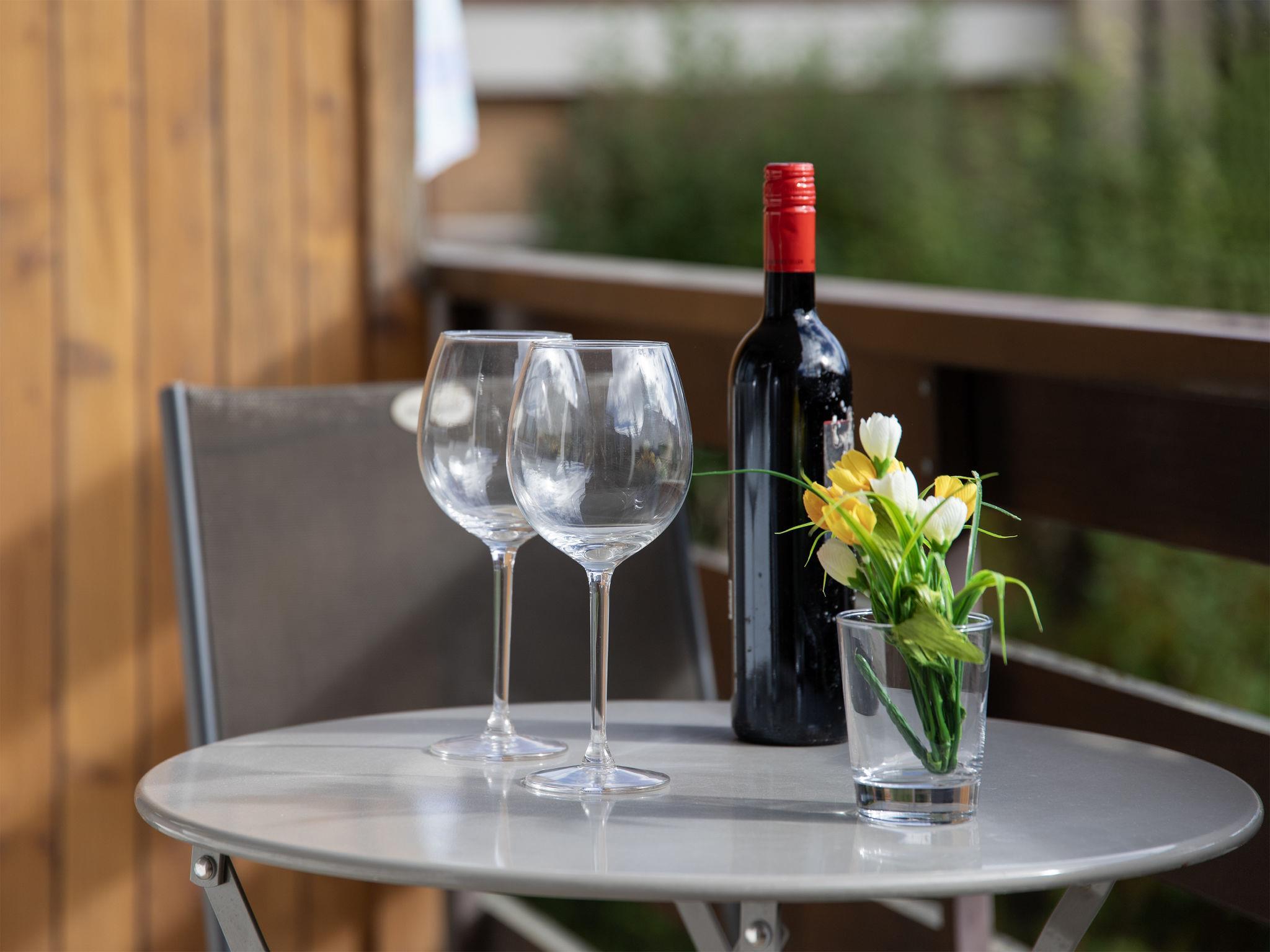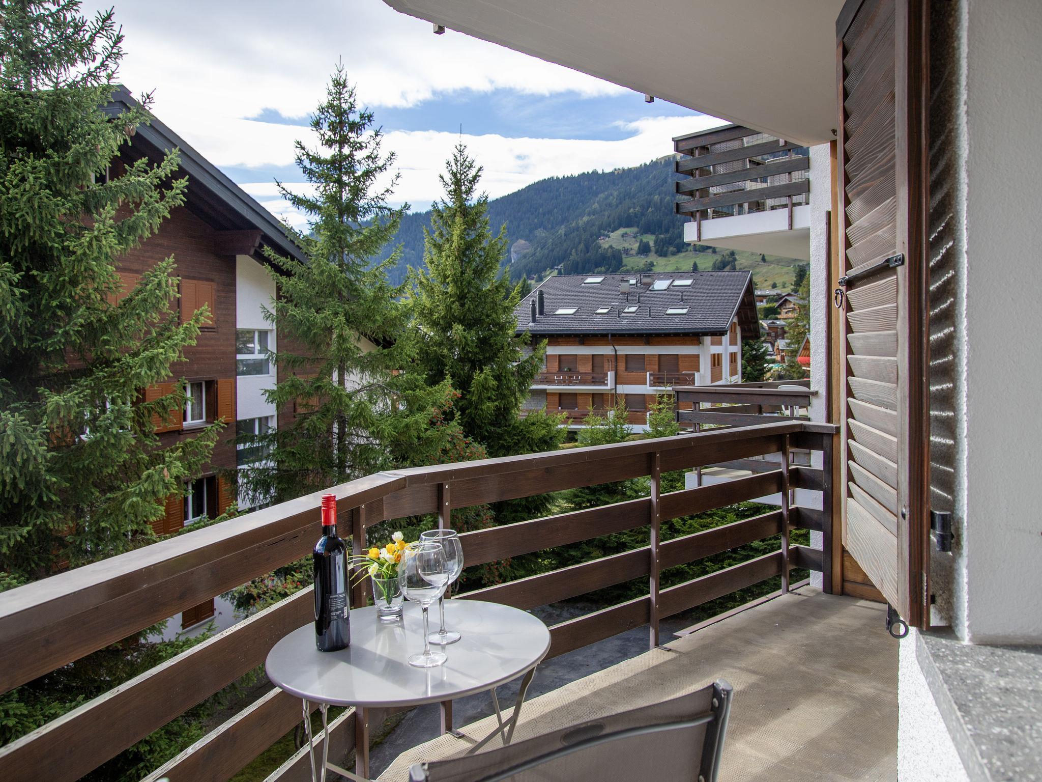"Galaxie 110", 2-room apartment 35 m2 on 1st floor. Bright, practical and beautiful furnishings: living/dining room with 1 double sofabed (1 x 160 cm, length 200 cm), cable TV. Exit to the balcony. 1 room with 1 double bed (2 x 90 cm, length 200 cm). Exit to the balcony. Kitchenette (dishwasher, 4 ceramic glass hob hotplates, toaster, kettle, raclette grill, fondue Set (cheese)). Shower/WC. Small balcony. Balcony furniture. Beautiful view of the mountains. Facilities: hair dryer. Internet (WiFi, free). Please note: non-smoking house.
