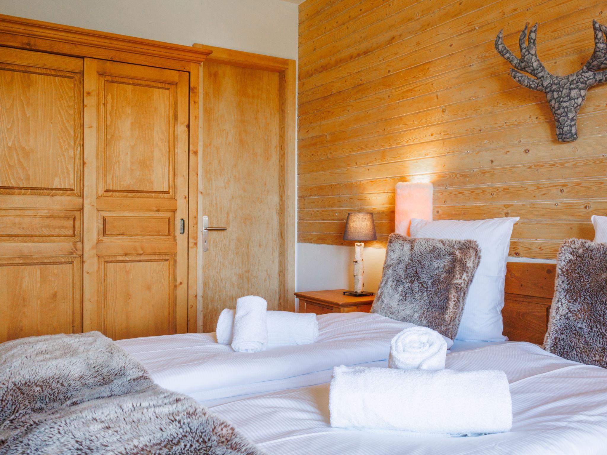"Victoria", 12-room chalet 850 m2 on 3 levels. Comfortable and stylish furnishings: living/dining room with open-hearth fireplace, dining nook and bar. Exit to the terrace, to the veranda. Large kitchen (oven, dishwasher, toaster, kettle, microwave, freezer, electric coffee machine, fondue Set (chinoise, cheese)). Sep. WC. Upper floor: 5 rooms, each room with 2 beds (90 cm, length 200 cm), shower/WC. Exit to the balcony. 1 room with 2 beds (90 cm, length 200 cm), bath/WC. 1 room with 1 bed (90 cm, length 20 cm), shower/WC. Exit to the balcony. 2nd upper floor: 3 rooms, each room with 2 beds (90 cm, length 200 cm), shower/WC. Exit to the balcony. 2 rooms, each room with 2 beds (90 cm, length 200 cm), shower/WC. Exit to the balcony. Terrace 100 m2, large 300 m2. Terrace furniture. Very beautiful view of the mountains and the resort. Facilities: children's high chair, baby cot for up to 3 year olds, hair dryer. Internet (WiFi, free). Please note: non-smokers only.