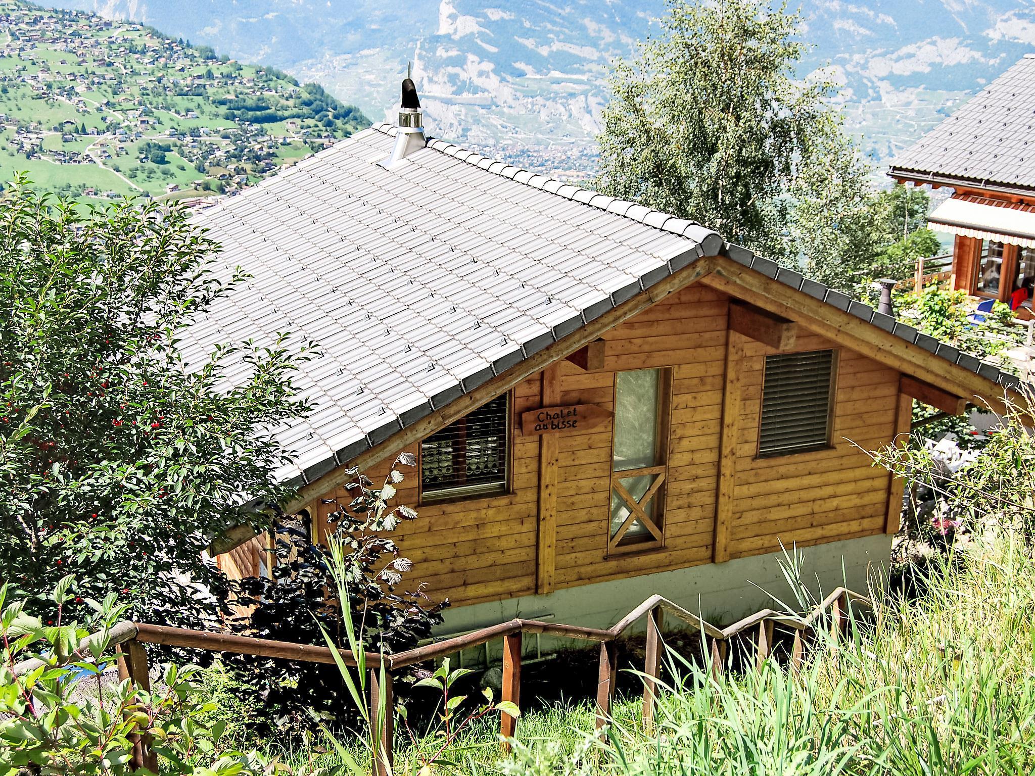 Chalet "au Bisse", 2 storeys. On the outskirts, 700 m from the centre, in a quiet position on a slope. Private: garden with lawn. Terrace, garden furniture. In Winter: please take snow chains. Stepped path to the house. Parking. Shop 550 m, bus stop "Arrêt principal de Veysonnaz" 1 km, railway station "Sion" 14 km, indoor swimming pool 600 m. Tennis 400 m, gondola lift 1.2 km, ski bus stop 500 m.