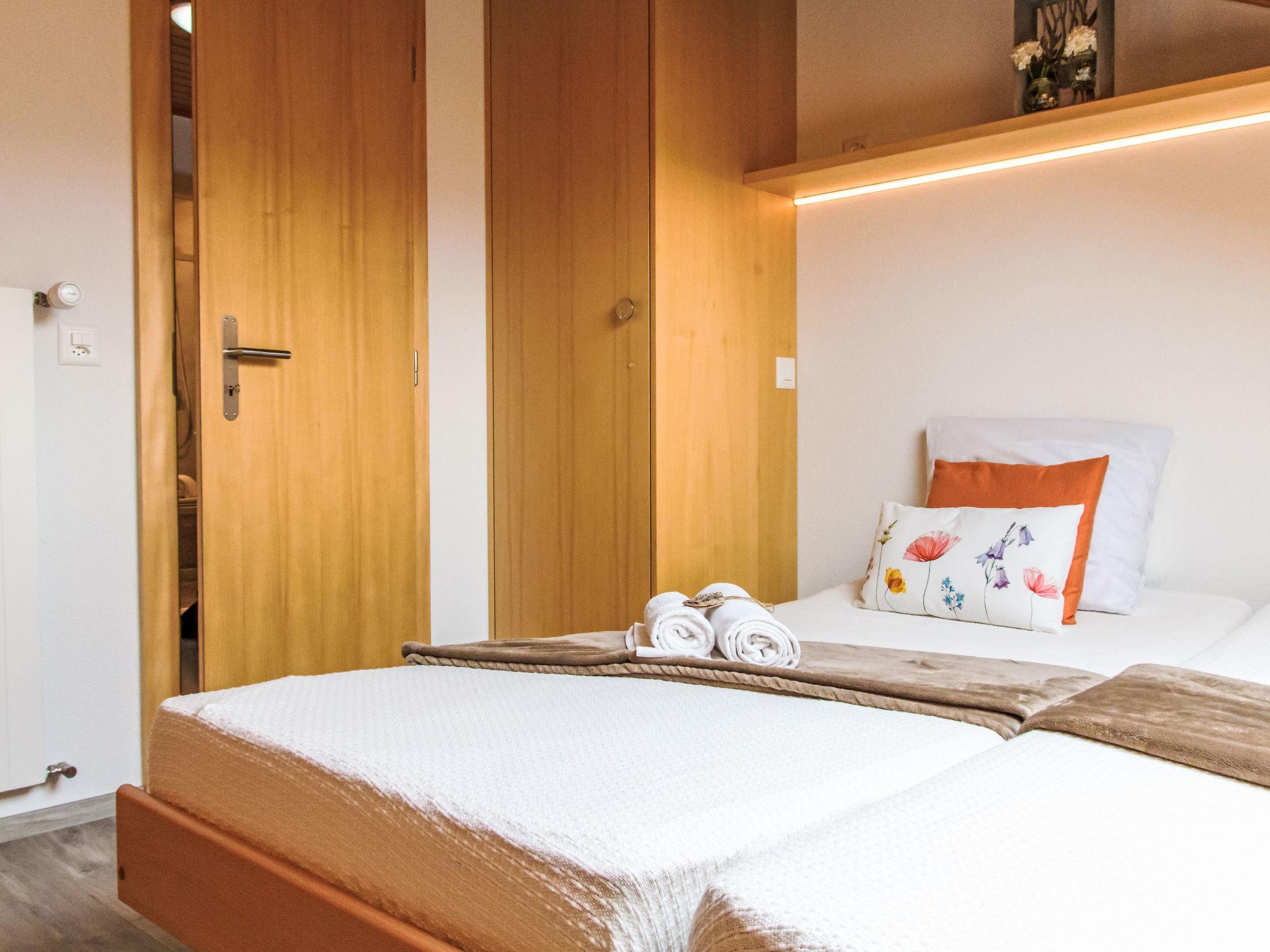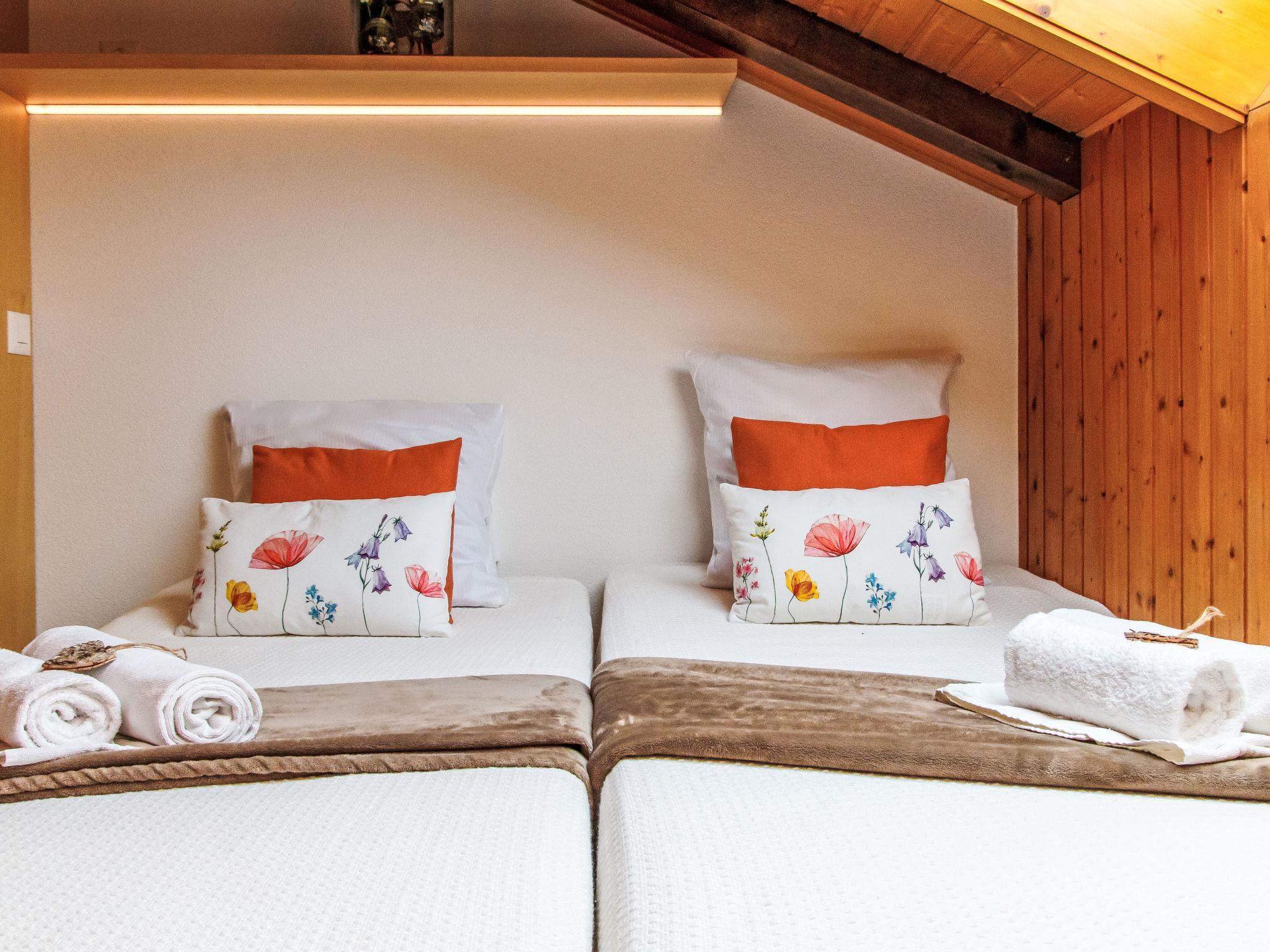 "Beau Soleil - Gentianes 40", 5-room apartment 125 m2 on 3rd floor. Spacious, partly renovated, comfortable and tasteful furnishings: entrance hall. Living/dining room with cable TV and CD-player. Exit to the balcony. 3 rooms, each room with 2 beds (90 cm, length 190 cm). 1 room with 2 beds (90 cm, length 200 cm). Open kitchen (oven, dishwasher, 4 ceramic glass hob hotplates, toaster, kettle, microwave, freezer, electric coffee machine, Capsules for coffee machine (Senseo) extra, raclette grill, fondue Set (cheese)). Bath/WC, shower/WC. 2 balconies, west facing position and south-east facing position, small terrace. Balcony furniture. Very beautiful view of the mountains and the valley. Facilities: Internet (WiFi, free). Please note: non-smokers only, no parking.