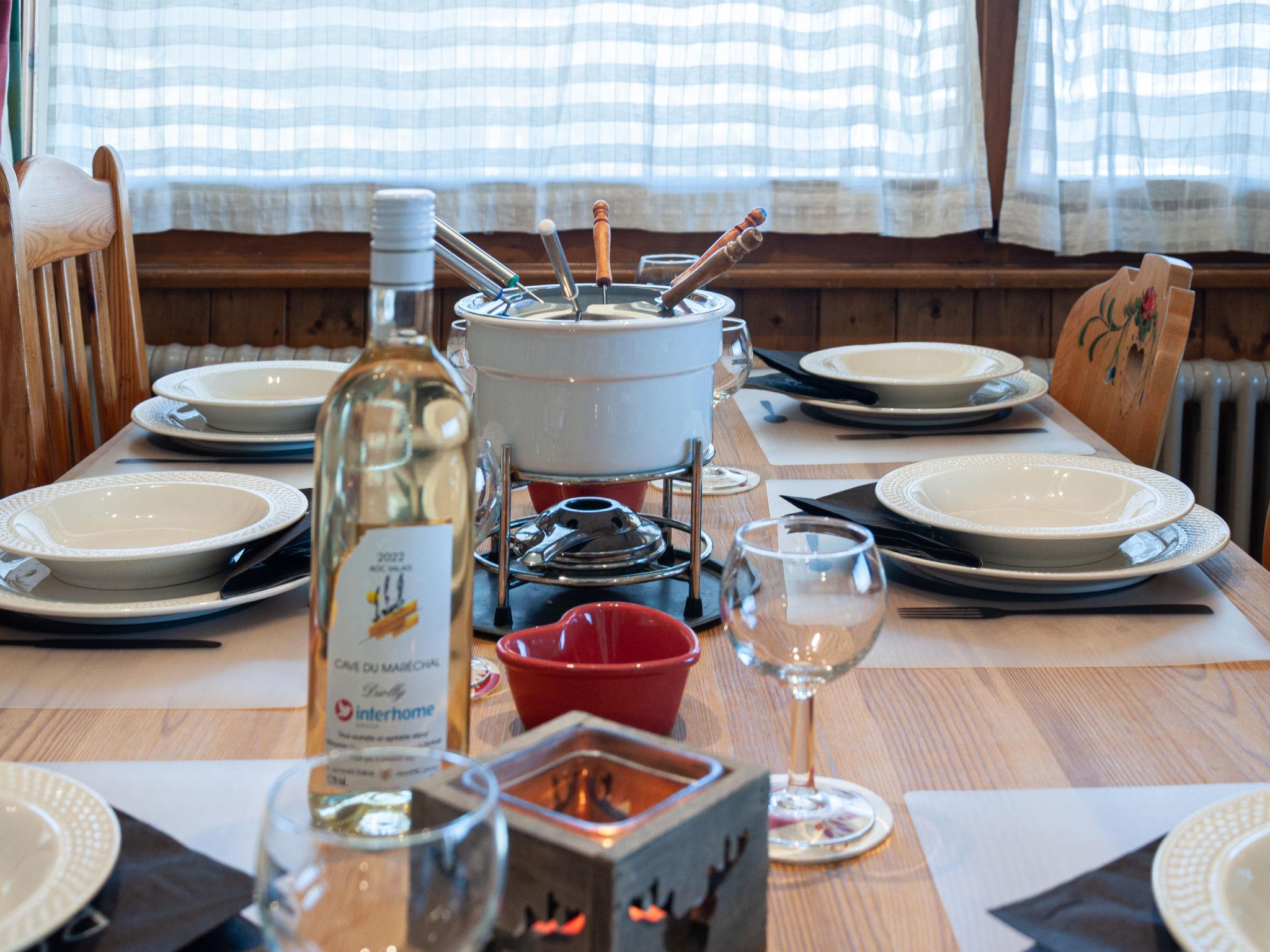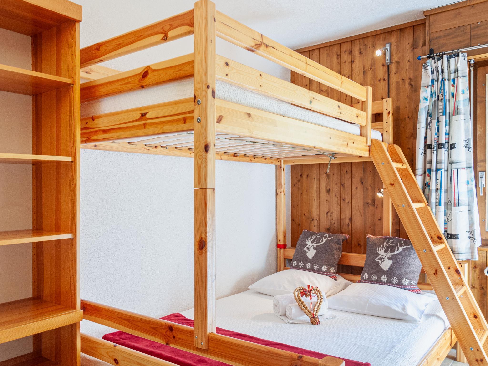 "Magrappé 344", 4-room apartment 90 m2 on 3rd floor. Comfortable and beautiful furnishings: living/dining room with open-hearth fireplace (only for decoration), cable TV and DVD. Exit to the balcony, north facing position and west facing position. 1 room with 1 x 2 bunk beds (90 cm, length 200 cm). 1 room with 1 double bed (2 x 90 cm, length 200 cm). 1 room with 1 french bed (140 cm, length 200 cm). Open kitchen (3 hot plates, oven, dishwasher, kettle, microwave, electric coffee machine, Capsules for coffee machine (Nespresso) extra, fondue Set (chinoise, cheese)). Bath/WC, sep. WC. Balcony furniture. Beautiful view of the mountains, the valley and the ski run. Facilities: hair dryer. Internet (WiFi, free). Please note: non-smokers only, no parking.