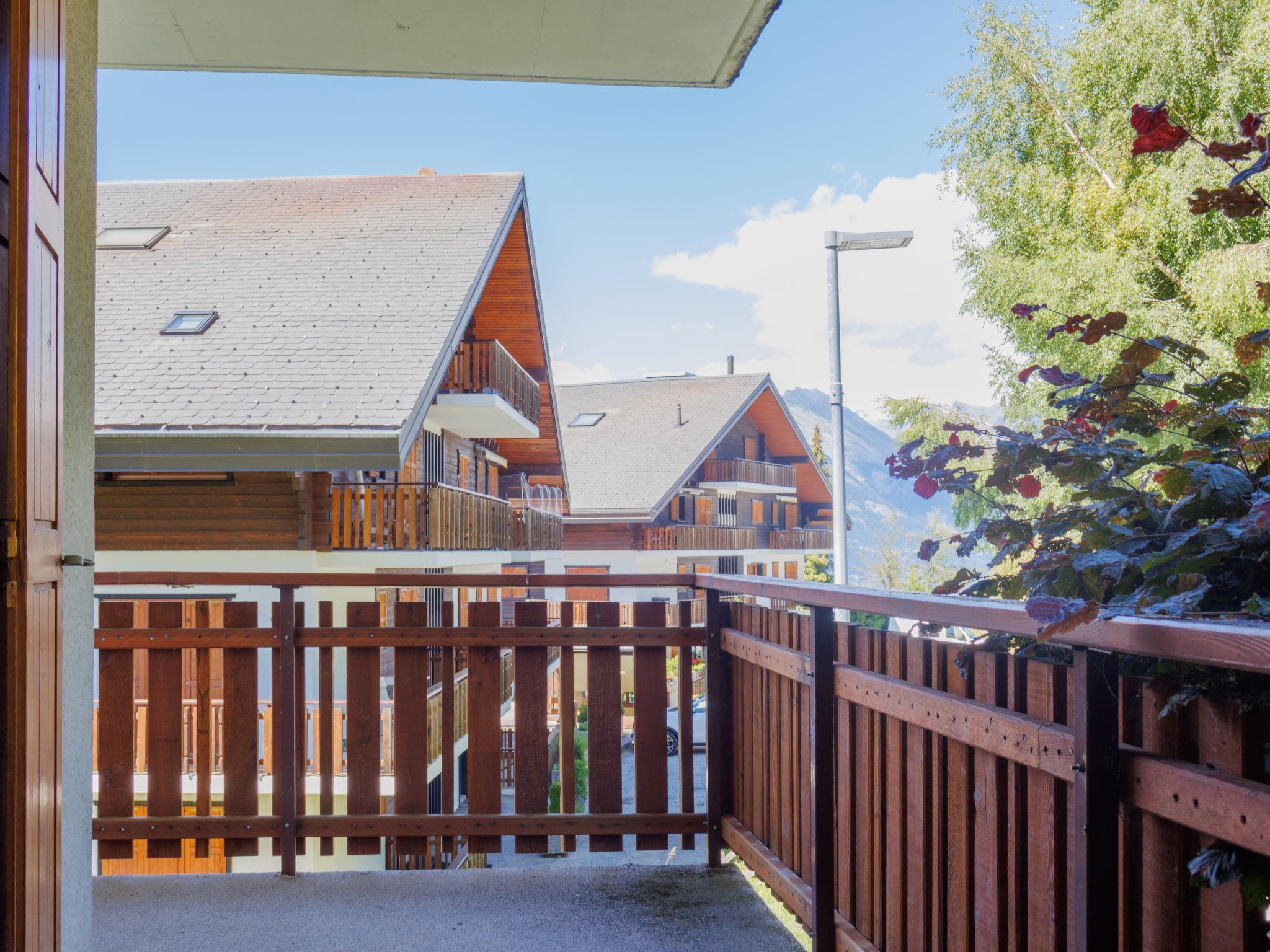 Apartment block "Hortensia". In the centre, on a slope. In the house: lift, central heating system, washing machine (extra), tumble dryer (for shared use, extra). Public car park at 500 m, extra. Shop, restaurant 100 m, bus stop "Veysonnaz Station" 350 m, railway station "Gare de Sion" 14 km, indoor swimming pool 50 m. Tennis 400 m, gondola lift 500 m, ski bus stop 100 m. Well-known ski regions can easily be reached: Veysonnaz 4 Vallées 500 m. Hiking paths: Bisse de Vex 250 m. Please note: ski bus (free of charge).