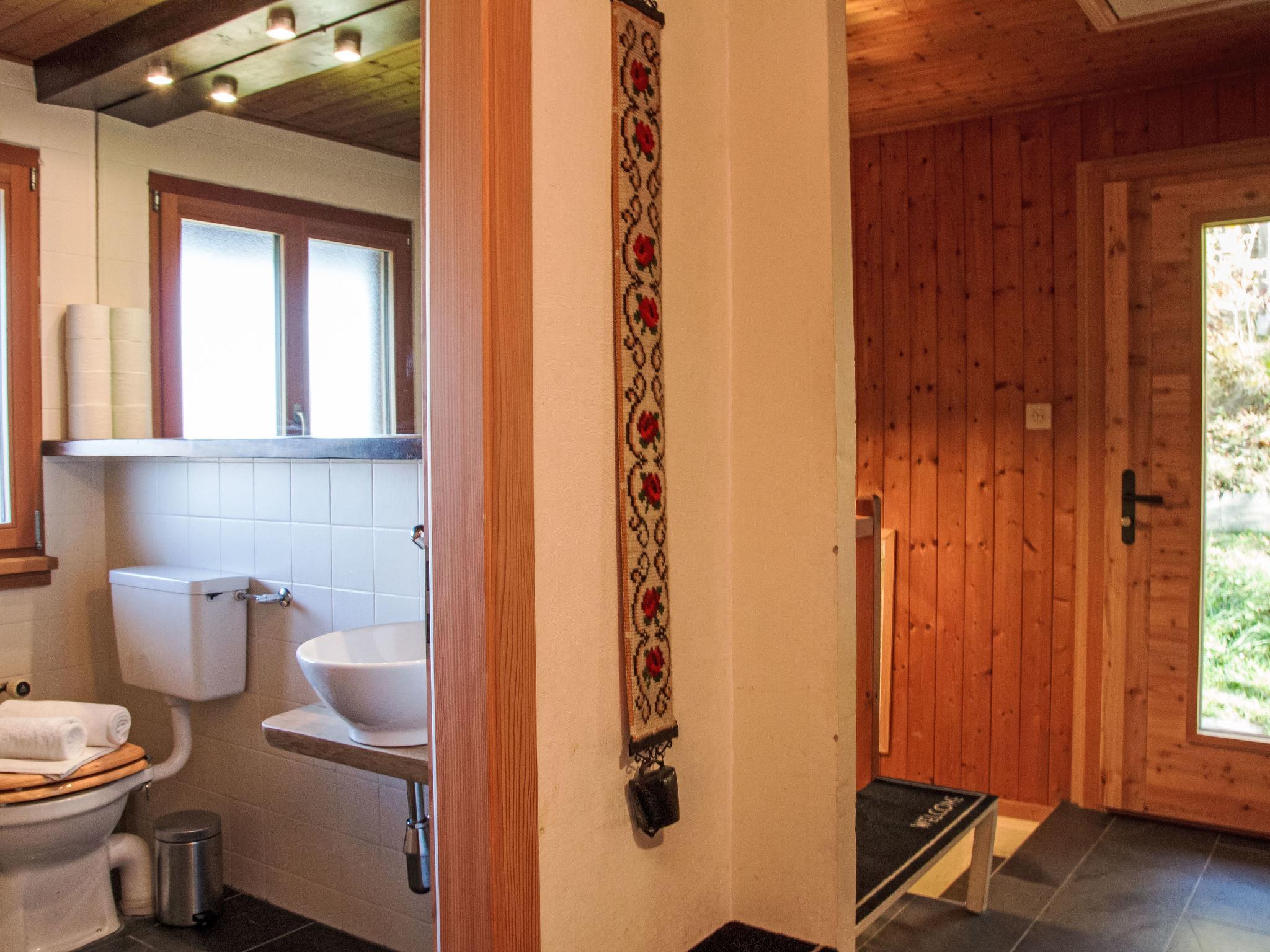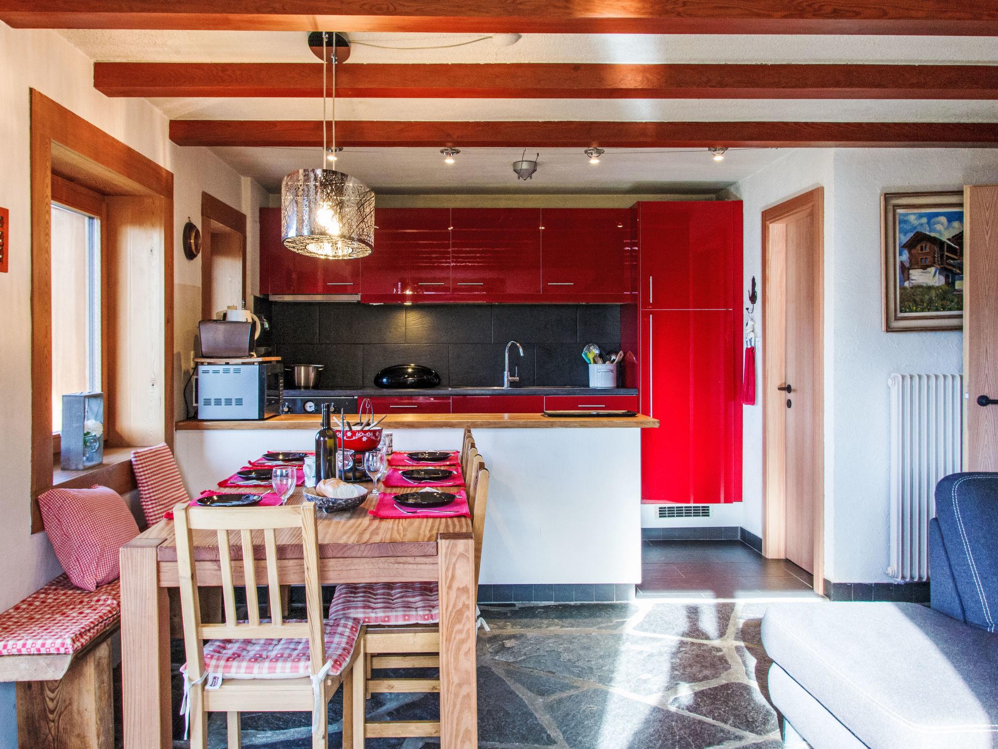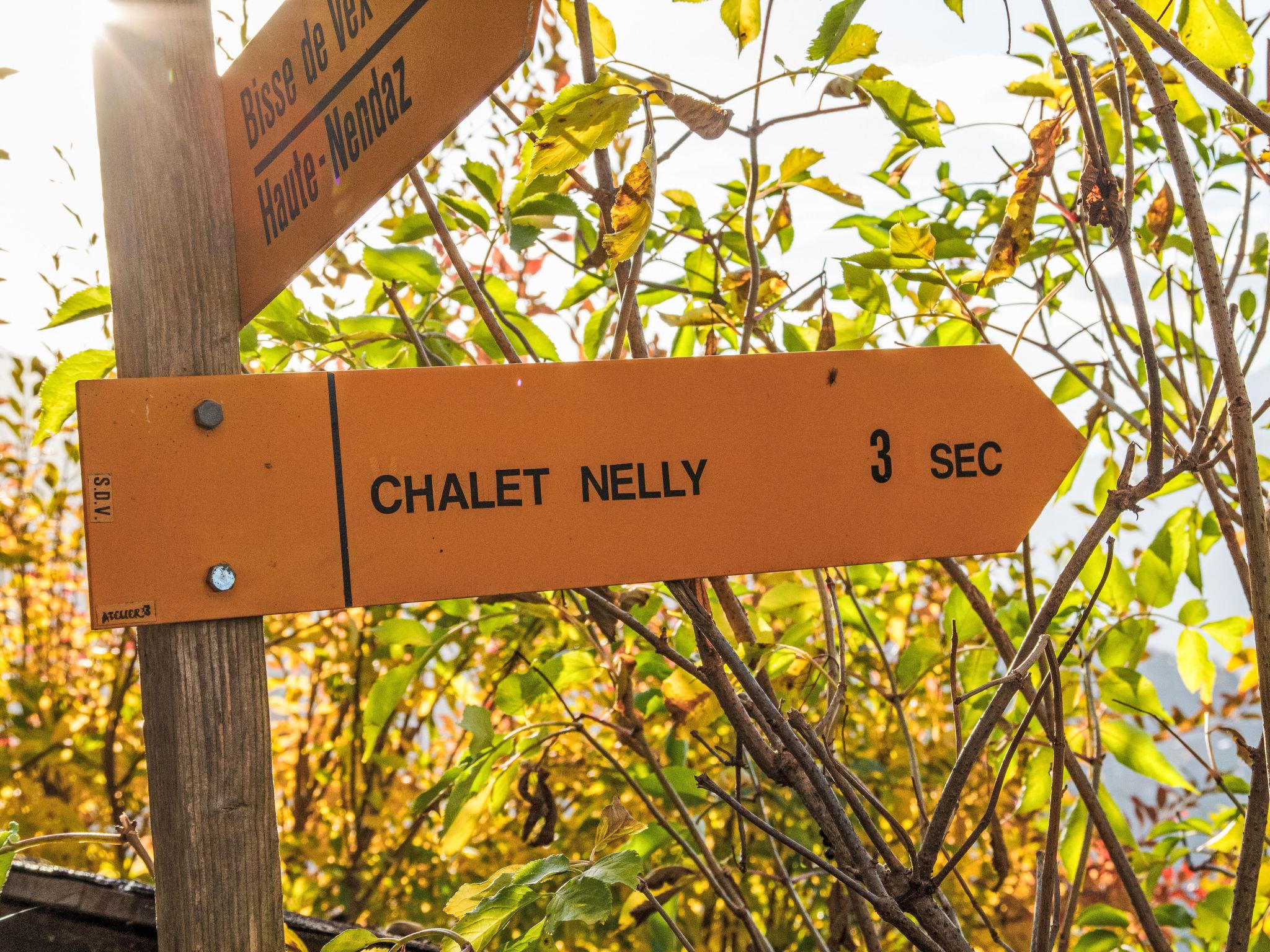 "Nelly", 4-room chalet 90 m2 on 2 levels. Partly renovated, comfortable and tasteful furnishings: entrance hall. 2 rooms, each room with 1 french bed (160 cm, length 200 cm). Exit to the balcony. 1 room with 1 x 2 bunk beds (90 cm, length 200 cm). Exit to the balcony. Bath/WC. On the lower ground floor: living/dining room with Scandinavian wood stove and DVD. Exit to the garden, to the terrace. Open kitchen (oven, dishwasher, 3 induction hot plates, toaster, kettle, microwave, electric coffee machine, Capsules for coffee machine (Nespresso) extra, raclette grill, fondue Set (cheese)). Sep. WC. Electric heating. Natural stone floors. Balcony, north-west facing position and south-west facing position, terrace, north-west facing position and south-west facing position. Terrace furniture, barbecue. Marvellous view of the mountains and the valley. Facilities: washing machine, dryer, children's high chair, baby cot for up to 2 year olds. Internet (WiFi, free). Parking (1 car) at 50 m. Please note: non-smokers only. Maximum 1 pet/ dog allowed. Television: NETFLIX only.
