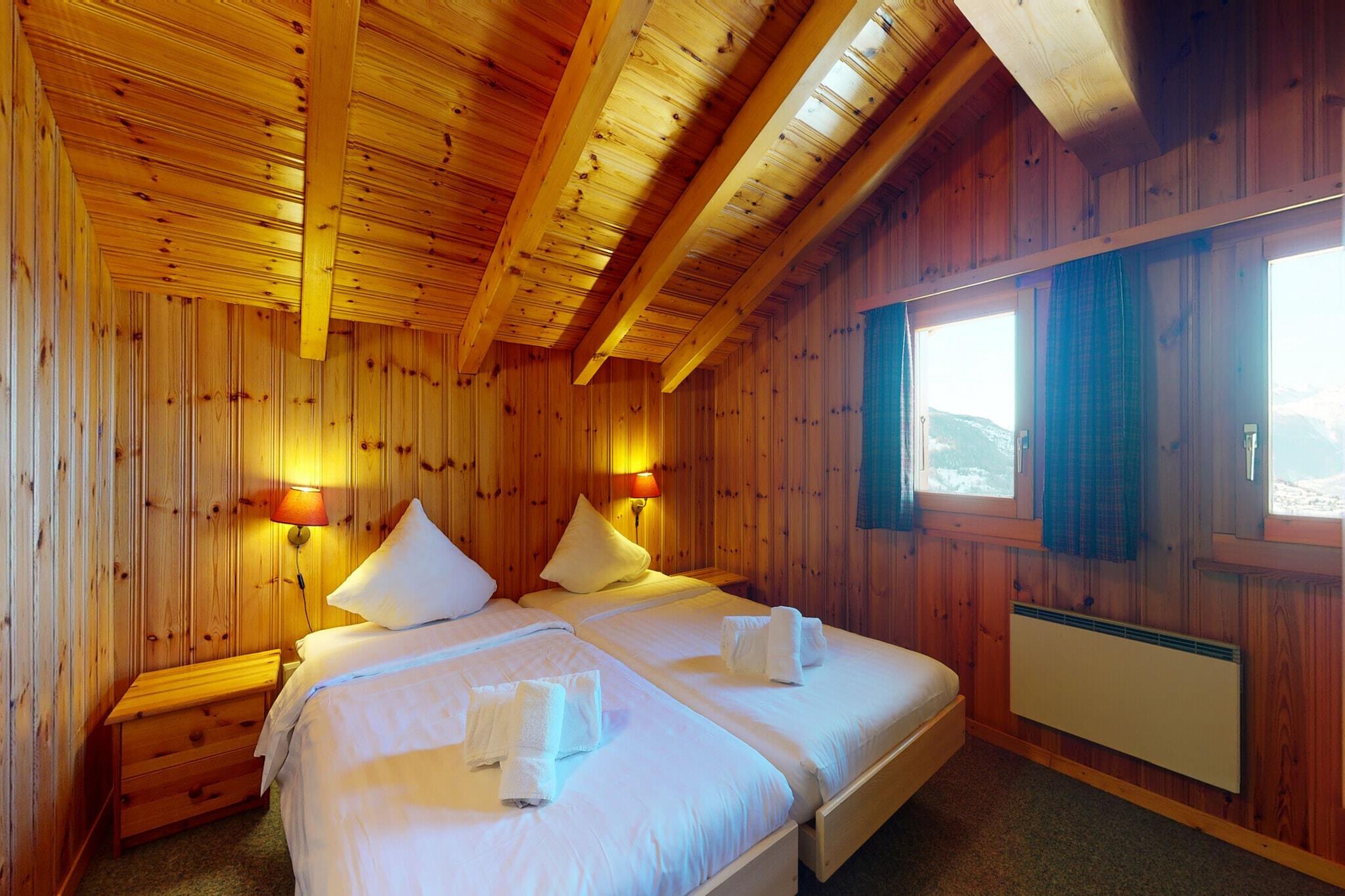 Stay in this cozy 3-star chalet in Veysonnaz, Switzerland, offering stunning valley and mountain views. With 120 m² of space, this charming chalet accommodates up to 10 guests in a warm and welcoming atmosphere. The bright living room features a fireplace, cable TV, DVD player, and a hi-fi system for your entertainment. The fully equipped kitchen includes a fridge, oven, microwave, toaster, filter coffee machine, kettle, and dishwasher to cater to all your cooking needs. The chalet has five bedrooms, each with two single beds, and a reading corner with cable TV. Two bathrooms provide convenience, including one with a bathtub and toilet, and another with a shower, toilet, and washing machine. Outside, the sunny terrace offers beautiful views of Nendaz and the valley, perfect for relaxing after a day of exploring. Ski lockers are provided next to the lifts, and there are two outdoor parking spaces with additional paid options nearby. The chalet is located in a peaceful and sunny hamlet, just 1.3 km from the cable car, with a shuttle bus available in winter. Shops and leisure activities are only 900 meters away, ensuring you have easy access to everything you need. Additional services include access to a public swimming pool during summer/winter, Sun&Fun activity programs in high summer, and discounts on equipment rental. Optional services such as bed linen & towels, gourmet baskets, and baby equipment are available to enhance your stay.