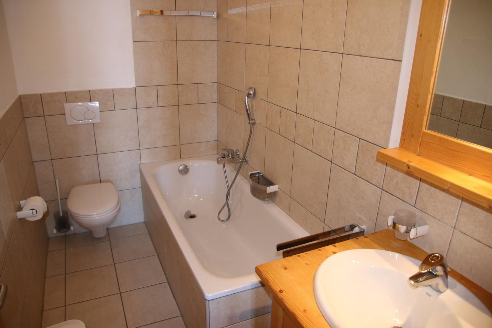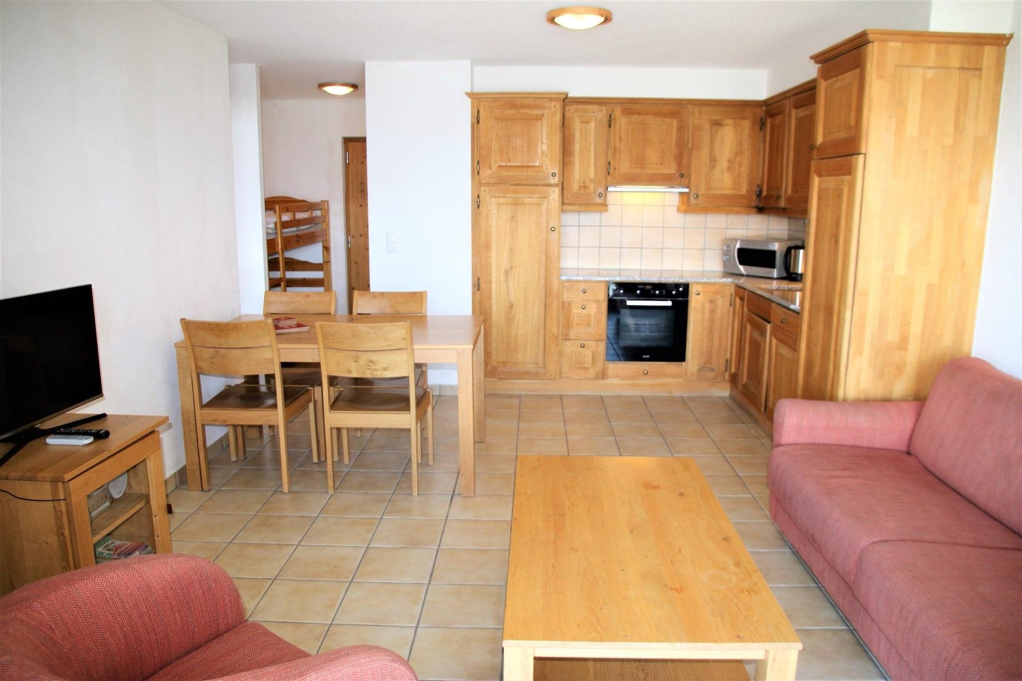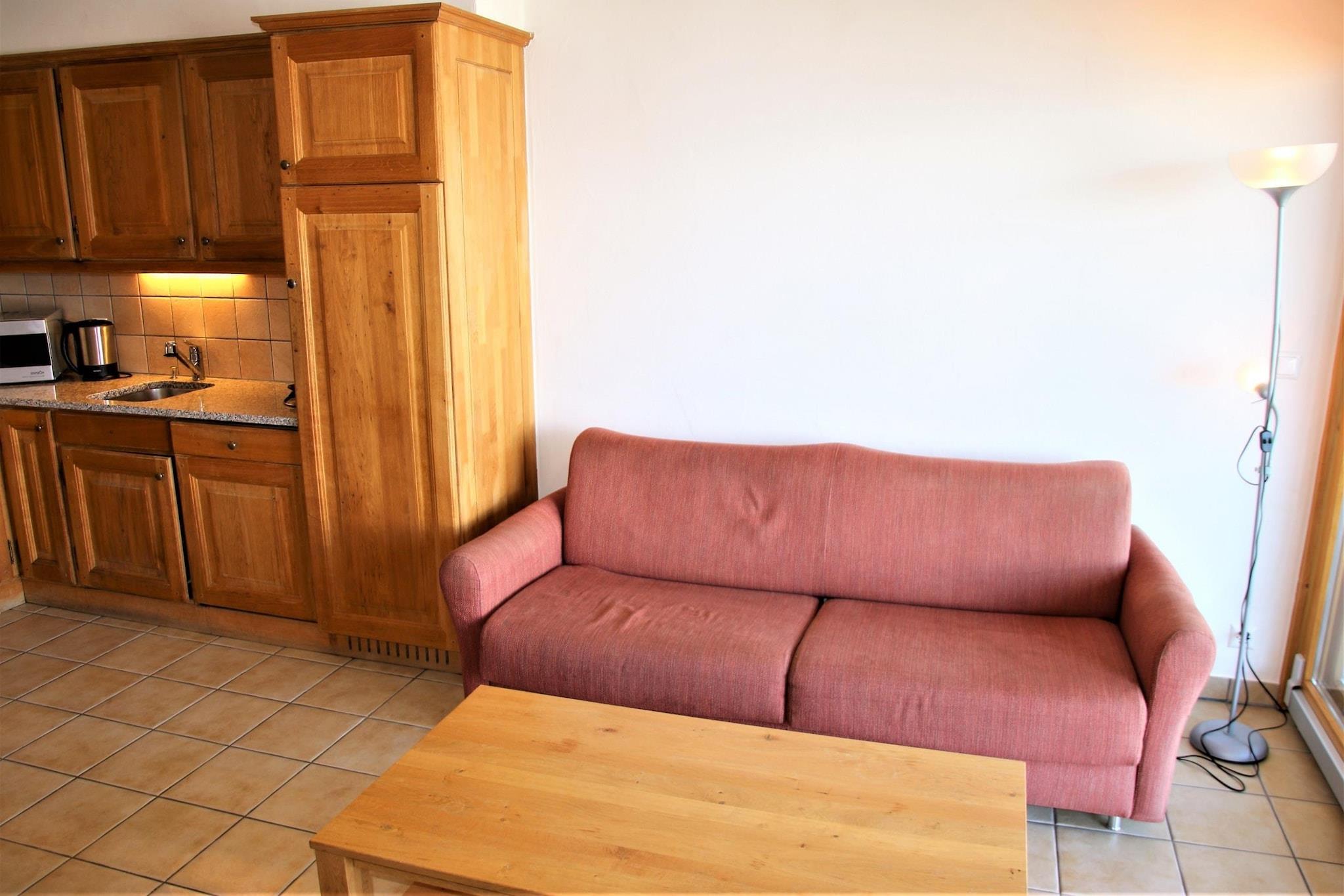 Enjoy a relaxing stay in this cozy flat in Veysonnaz, Switzerland, just steps from the slopes. Perfect for 4 guests, it features covered parking and stunning valley views. Key Features: Valley view balcony Central resort location Fireplace Close to cable cars (250m) Accommodation Details: 2-room, 3-star+ flat Bright living area with fireplace and cable TV Fully equipped kitchen (ceramic hob, oven, microwave, toaster, coffee machine, kettle, dishwasher) Sleeping Arrangements: Living Room: 1 sofa bed (140x200 cm) Bedroom 1: 2 single beds (90x200 cm) Corridor: 1 bunk bed (90x200 cm) Bathrooms: 1 with shower and WC 1 with bath and WC (attached to bedroom) Outdoor Space: Small terrace with garden furniture and panoramic Rhône Valley views Additional Amenities: On-site laundry (digital payment) Ski room 1 indoor parking space (extra paid parking available) Pets welcome Easy elevator access Location: 250m to cable car 25m to shops and winter shuttle 100m to leisure facilities Extra Costs: Tourist tax (varies by region) Security deposit (released post-stay) Alpvision Benefits: Free public swimming pool access in summer/winter (closed during low/mid-season) Participation in the Sun&Fun activity program during peak summer Discounts up to 50% off equipment rentals Optional Services: Bed linen & towels (with renewal options) Comfort service (made beds, towels, toiletries) Final cleaning (fees vary) Pet fee (mandatory final cleaning for pet stays) Extras like gourmet baskets and late check-out