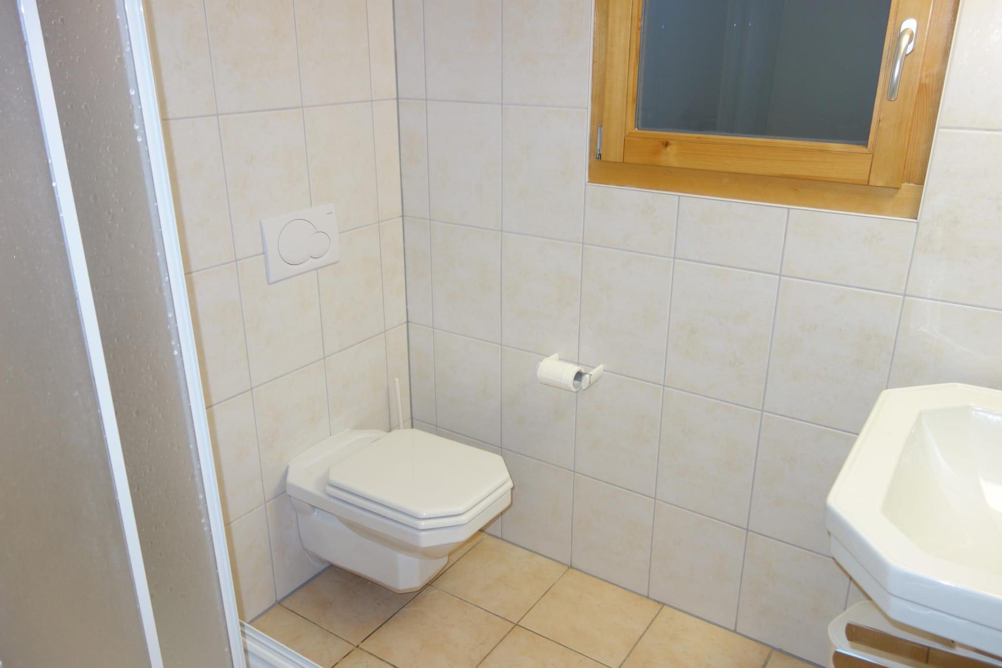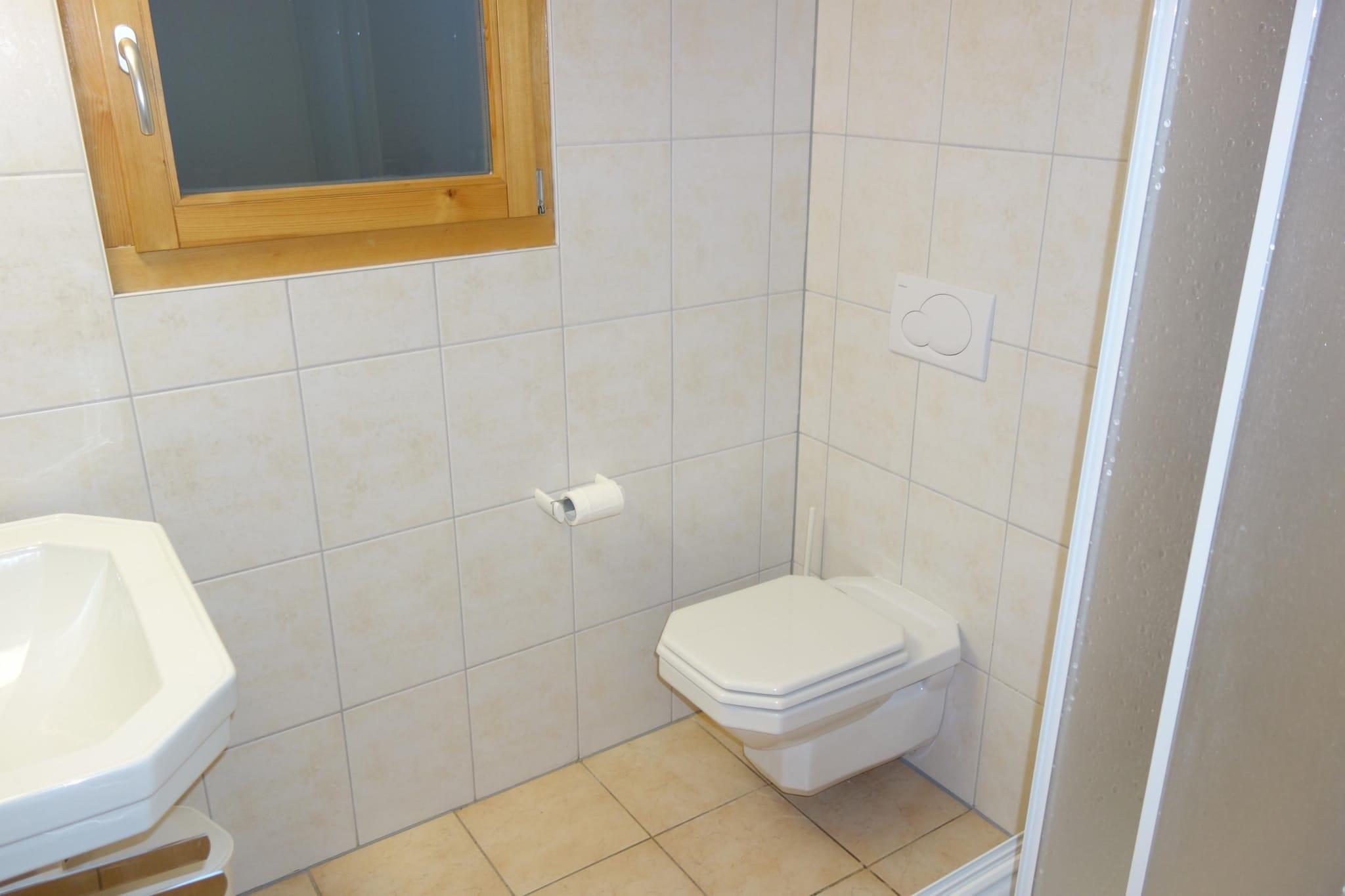 Ground floor: (open kitchen(hob(ceramic), electric kettle, toaster, coffee machine(filter), oven, grill, microwave, dishwasher, fridge, freezer, dishes and cutlery), Living/bed room(double sofa bed(140 x 200 cm), bunk bed(90 x 200 cm), TV(cable), fireplace, wireless music system), bedroom(single bed(90 x 200 cm), single bed(90 x 200 cm)), Bedroom with bathroom(single bed(90 x 200 cm), single bed(90 x 200 cm), bath tub, toilet, hairdryer), bathroom(shower, toilet)) ski storage, washing machine, balcony, heating(central), terrace, garden, garden furniture, swimming pool, lift