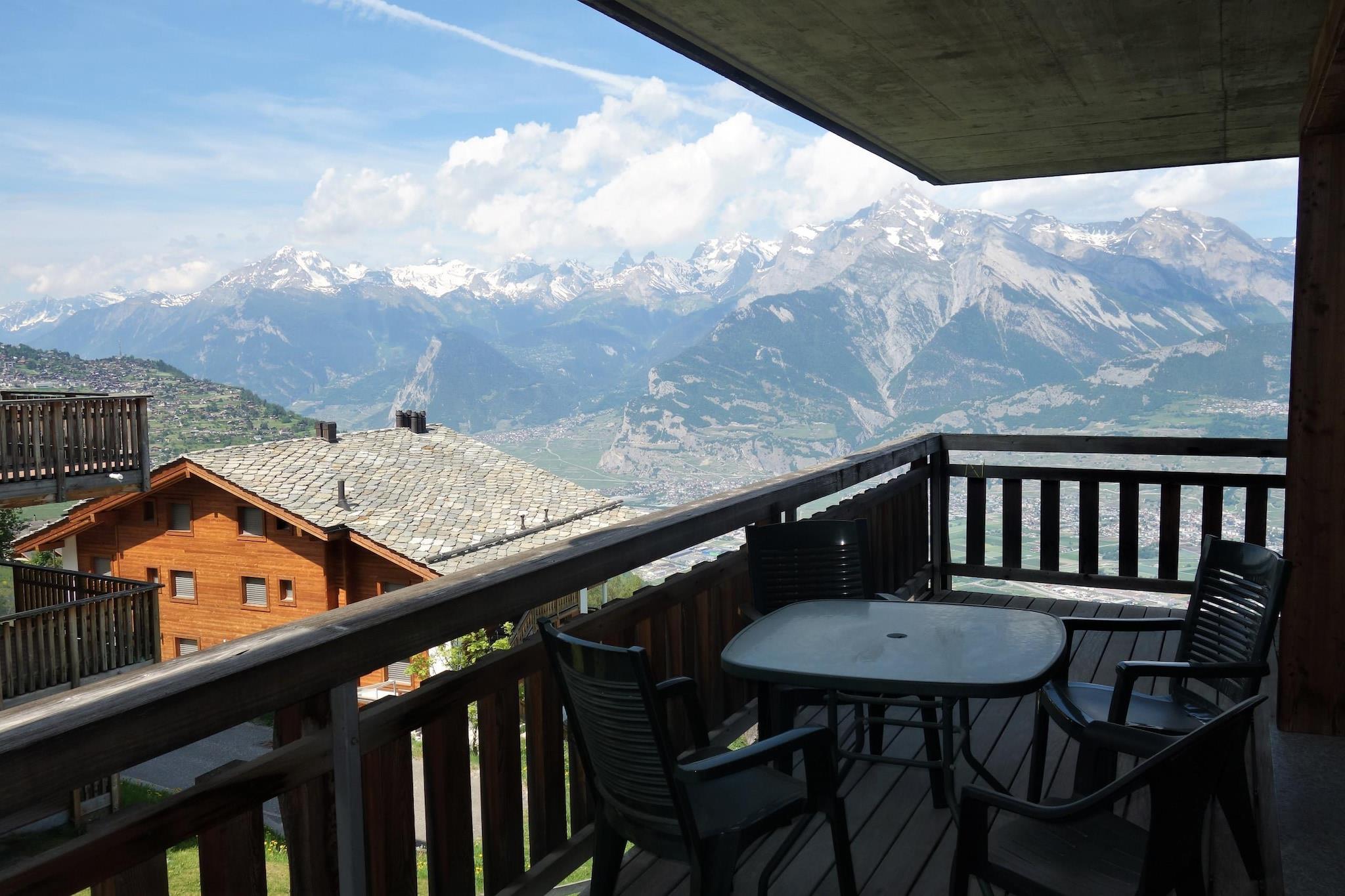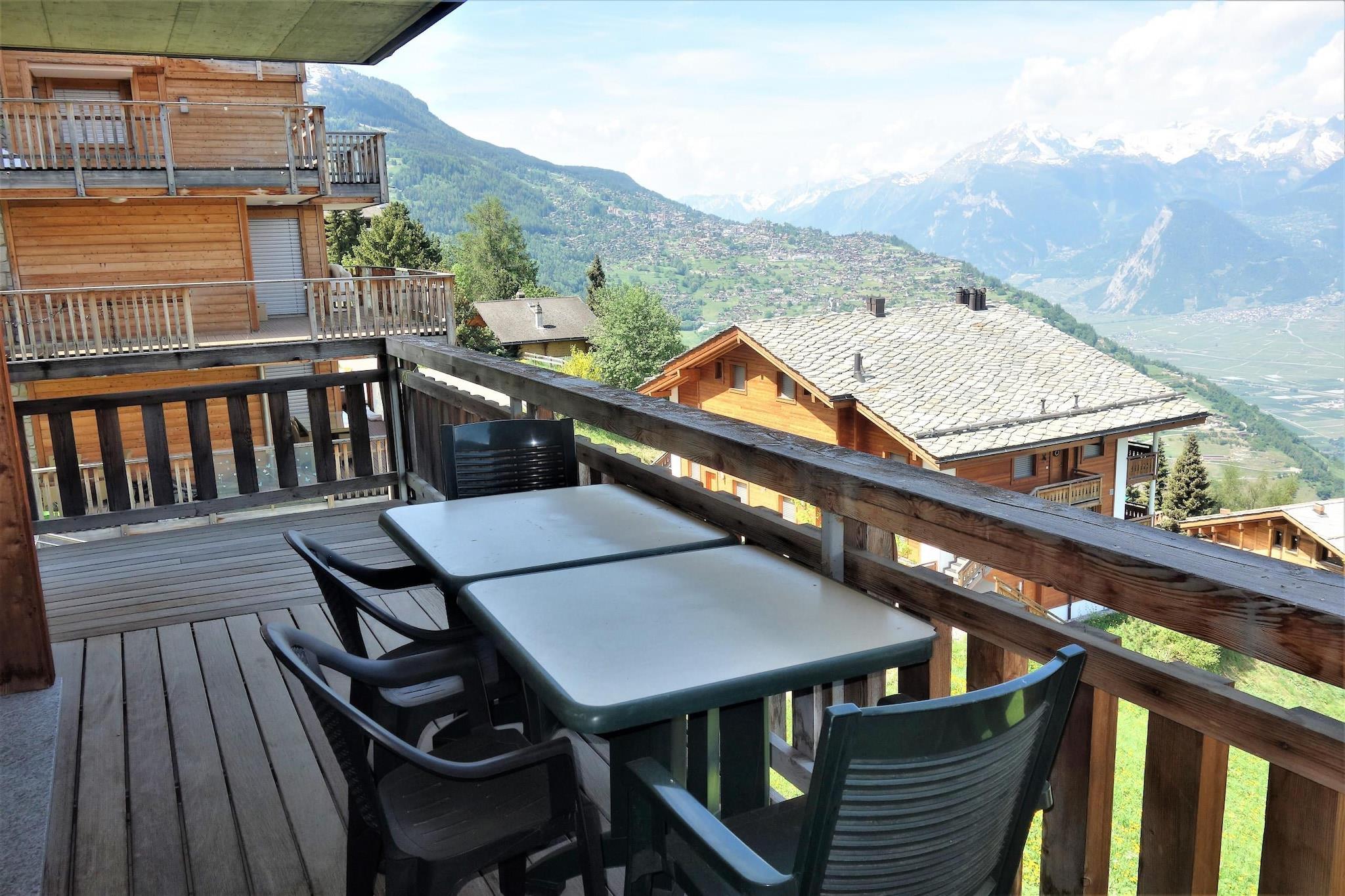 Discover the charm of Swiss mountain living in the spacious apartment, located in the heart of Veysonnaz, perfect for families or groups of friends. Accommodating up to 8 guests, this cozy retreat offers stunning views of the Rhône Valley and serves as an ideal base for your alpine adventures. The inviting living space features a bright living room with a fireplace, cable TV, and DVD player, while complimentary WiFi keeps you connected. The open kitchen is fully equipped with a fridge, oven, microwave, toaster, coffee machine, kettle, and dishwasher, making meal preparation a breeze. The apartment includes one corridor with a bunk bed and three bedrooms, each with two single beds, providing flexibility and comfort. With two bathrooms—one with a bath and one with a shower—convenience is assured for all guests. Enjoy the outdoor balconies, equipped with seating, while soaking in the breathtaking valley views. Additional amenities include indoor parking for one vehicle and ski storage, as well as access to a communal laundry room (digital payment). Centrally located, you are just 270m from the cable car, shops, and restaurants. Enhance your stay with exclusive benefits such as complimentary access to the public swimming pool and the Sun&Fun activity program during high summer season, along with discounts on equipment rentals through our partners. Optional services, including beds made upon arrival, gourmet baskets, and baby equipment, are also available. Experience the magic of the Swiss Alps with Alpvision—your home away from home awaits!