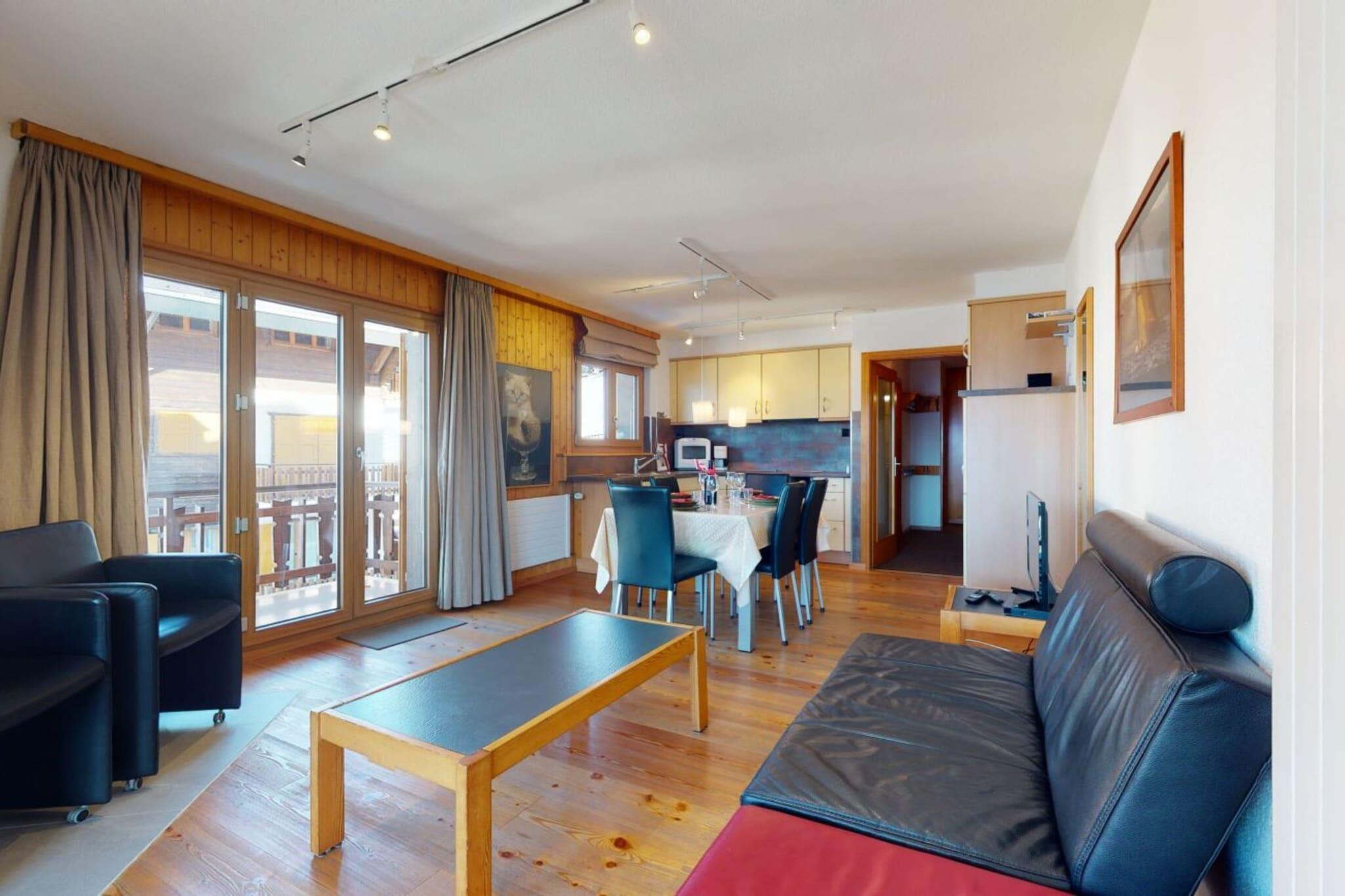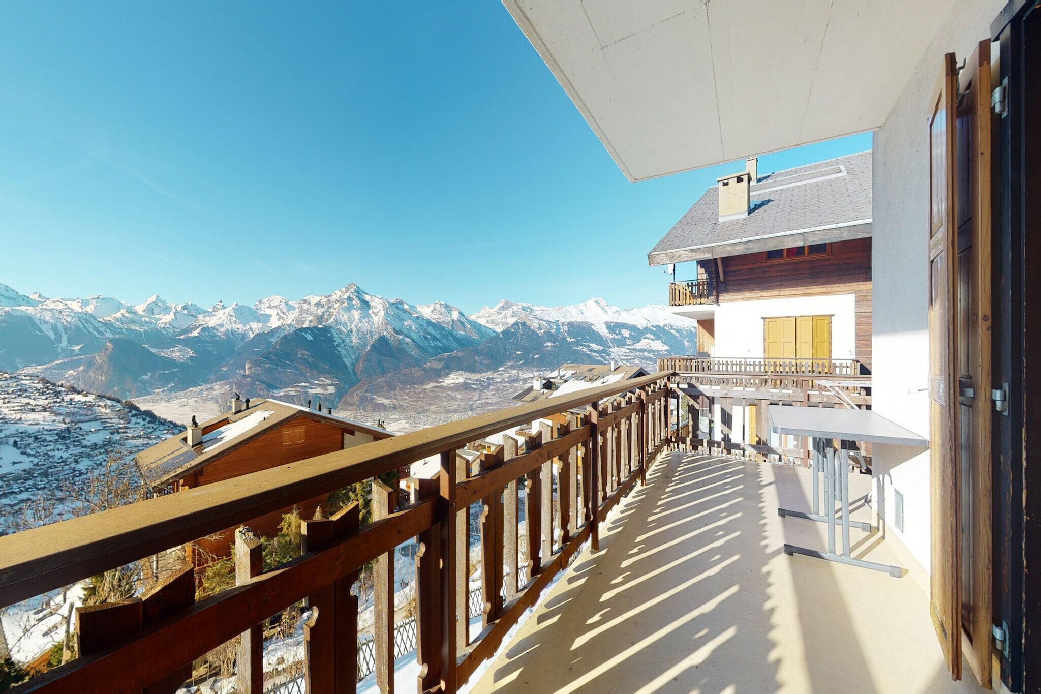 This relaxing apartment in the mountains offers a comfortable stay for up to five guests. Spanning 70 m², it features two cozy bedrooms, including a double bed and a bunk bed, ensuring ample sleeping arrangements. The bright living room is equipped with a decorative fireplace and cable television, creating a welcoming atmosphere. Guests can enjoy the front balcony with stunning valley views and outdoor seating, while a garage space is available for one car. Unfortunately, pets are not allowed, but guests can benefit from complimentary access to local activities during their stay. Situated in the picturesque resort of Veysonnaz, the apartment is conveniently located just 800 meters from the nearest cable car, making it ideal for skiing and hiking enthusiasts. A free shuttle bus stop is only 100 meters away, providing easy transportation during the winter months. Local shops and leisure activities are within a 200-meter radius, ensuring that all essential services are nearby. The well-equipped open kitchen includes modern appliances such as a ceramic hob, large fridge/freezer, oven, and dishwasher, facilitating effortless meal preparation. The apartment features two bathrooms, one with a bath and the other with a shower, providing convenience for guests. On-site laundry facilities and a ski room enhance the overall experience. Optional services like bed linen and towel rentals, as well as final cleaning, are available for an extra charge, ensuring a seamless stay. Additionally, guests can enjoy access to the public swimming pool during the high season and various discounts with local partners