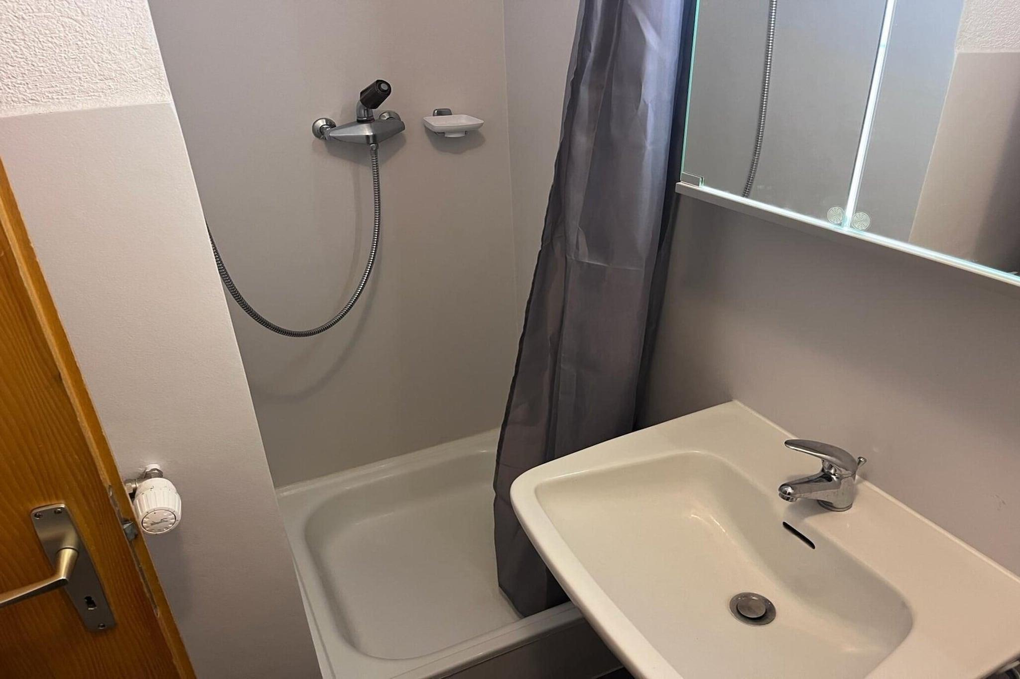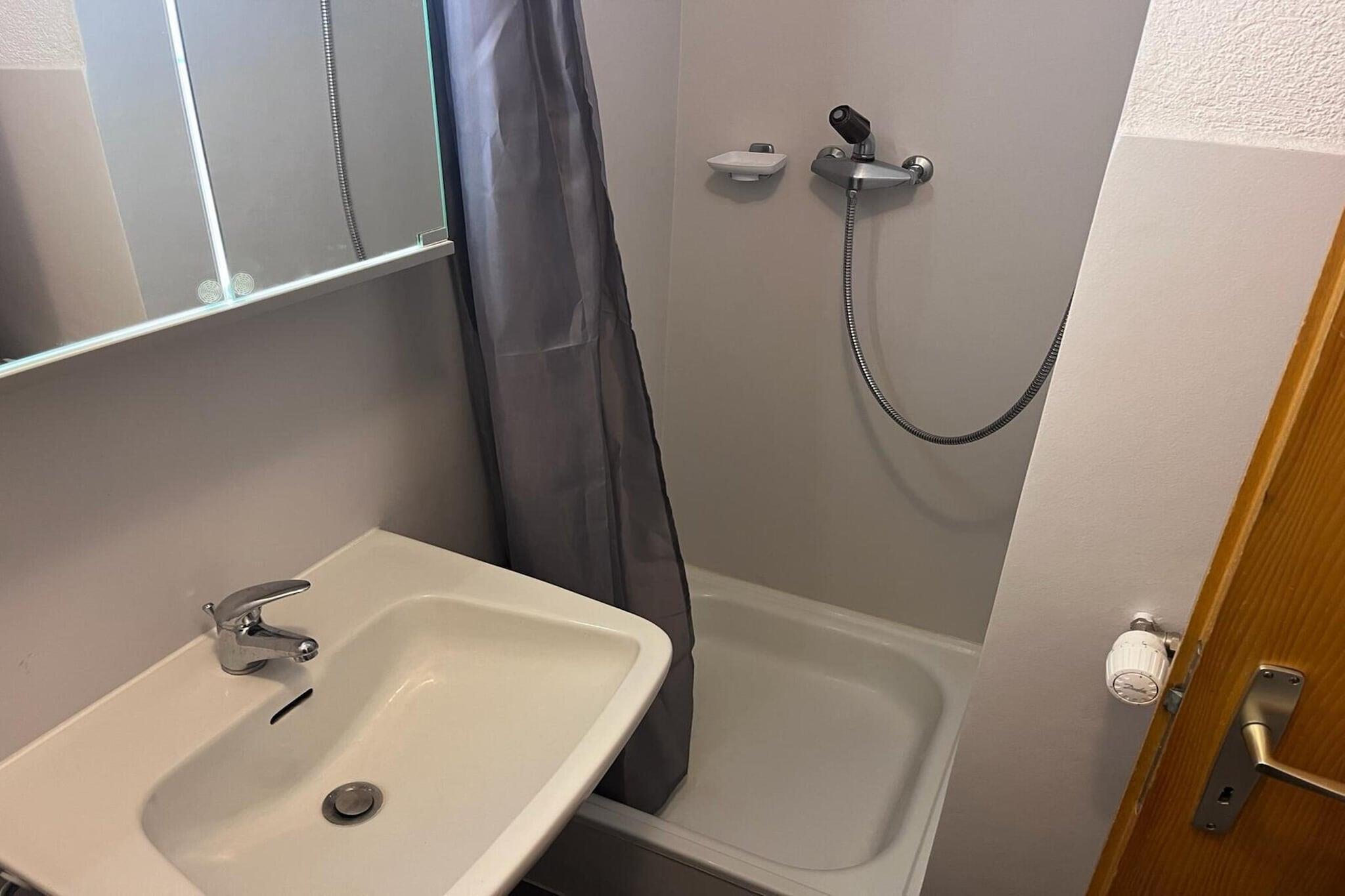 Ground floor: (open kitchen(electric kettle, coffee machine(filter), oven, microwave, dishwasher, fridge, freezer, Juicer, dishes and cutlery(Bowls, chopsticks, plates, cups, etc.)), Living/bed room(single folding bed(90 x 200 cm), single folding bed(90 x 200 cm), bunk bed(80 x 190 cm), TV(cable, satellite), dining table, seating area, DVD player, radio), Bedroom with bathroom(double bed(160 x 200 cm), shower, washbasin, toilet), bathroom(bath tub, shower, washbasin), toilet(toilet), Internet access, balcony) ski storage, washing machine, heating(central), garden furniture, parking, swimming pool(shared with other guests), lift, Laundry Package incl.