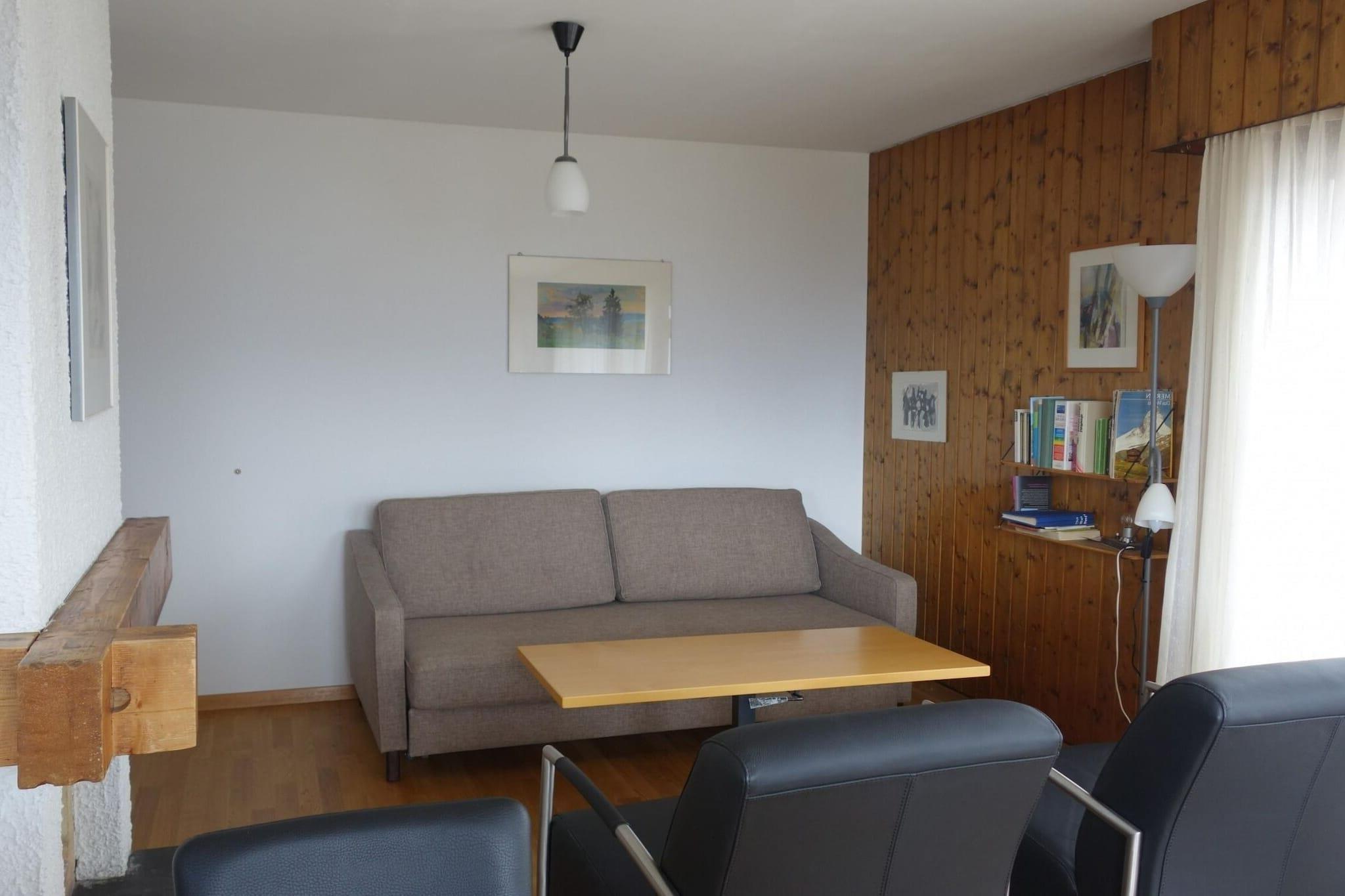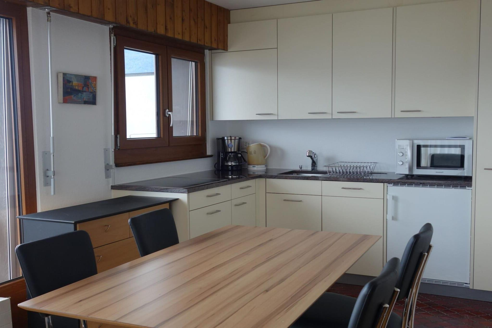 Welcome to this apartment, a cozy oasis in Veysonnaz, Switzerland, offering stunning views and relaxation all year round. This inviting 2-star apartment can accommodate up to 4 people, making it the perfect choice for families or small groups. Located on the third floor, this 40 m² apartment features a bright living room with a comfortable sofa, cable TV and a decorative fireplace, creating a warm and inviting atmosphere. The open-plan kitchen is well-equipped with a fridge and freezer, as well as an oven, filter coffee machine, kettle and dishwasher, ensuring you have everything you need to prepare your meals. Bedding includes a fold-down bunk bed in the hallway and two single beds pushed together in the bedroom, as well as a bathroom with shower and toilet. Step out onto your private balcony, perfect for relaxing and offering stunning views of the Rhone Valley. Additional amenities include laundry facilities (available for a fee), ski storage for your equipment and paid parking in the public car park (subject to availability). The apartment is conveniently accessed via a lift. The Remointze residence is ideally located in the heart of the resort, just 400 m from the gondola and 70 m from the free winter shuttle. Shopping facilities are just 45 m away and leisure activities 20 m from your home. Benefit from exclusive Alpvision advantages, including access to the municipal swimming pool in summer and winter, participation in the Sun&Fun family animation program in mid-summer and discounts of up to 50% on equipment rental. Optional services such as bed linen and towel rental, bed preparation, final cleaning and gourmet baskets complete your stay.