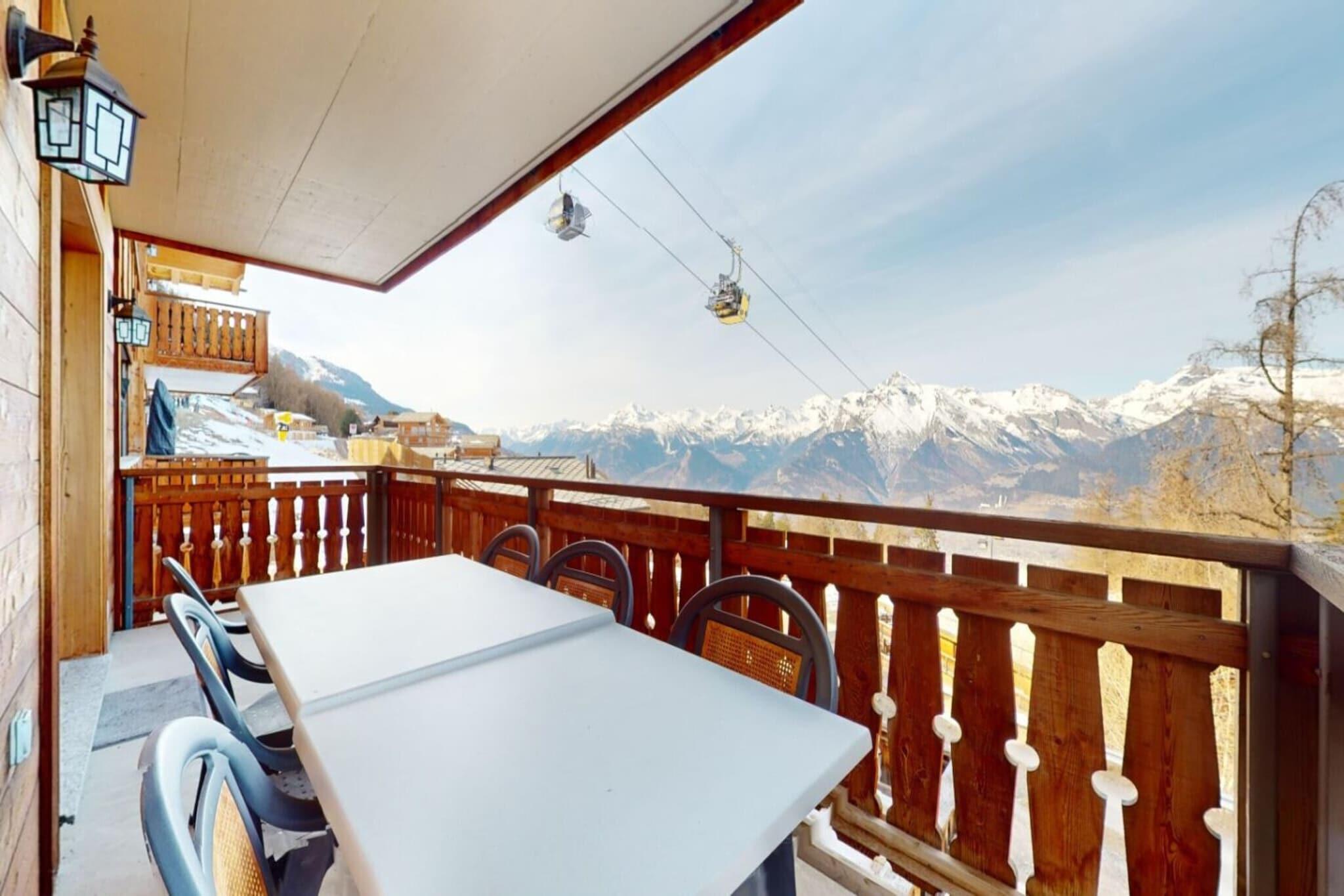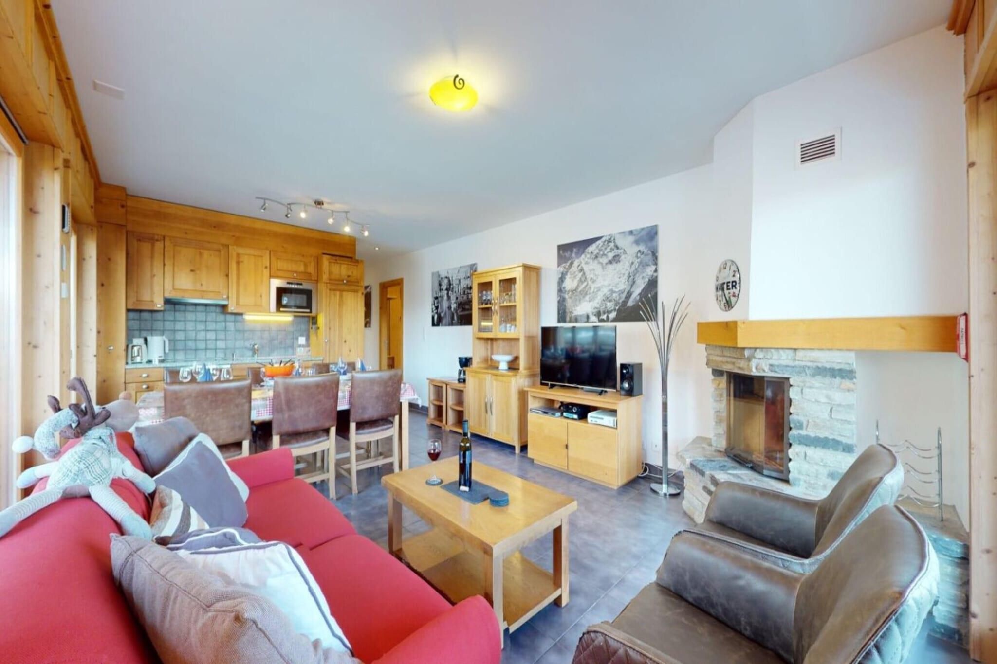 This modern apartment offers a cozy retreat for up to 6 guests, featuring a spacious living room with a fireplace, a double sofa bed, a cable flat-screen TV, and a DVD player. The accommodation includes two well-appointed bedrooms with flexible sleeping arrangements, alongside a large corner balcony that provides stunning views of the ski slopes and valley. While pets are not permitted, guests can enjoy the convenience of an indoor parking space and access to a sauna. The ski-in/ski-out setup makes it an ideal choice for winter sports enthusiasts. Situated in Veysonnaz, the residence boasts a prime location just 400 meters from the nearest cable car and 1.3 kilometers from shops and leisure activities. The peaceful setting is surrounded by nature, with numerous walking trails available for outdoor exploration. The proximity to the ski slopes enhances the appeal for skiing and snowboarding, providing easy access to winter adventures right at your doorstep. The open kitchen is well-equipped with essential appliances, including a microwave, toaster, coffee machine, and dishwasher, allowing for convenient meal preparation. Additional amenities include a laundry facility and a ski room, which further enhance the practicality of the space. This thoughtfully designed apartment combines modern comfort with a touch of luxury, making it perfect for families or groups looking to create lasting memories in the heart of the Swiss Alps.