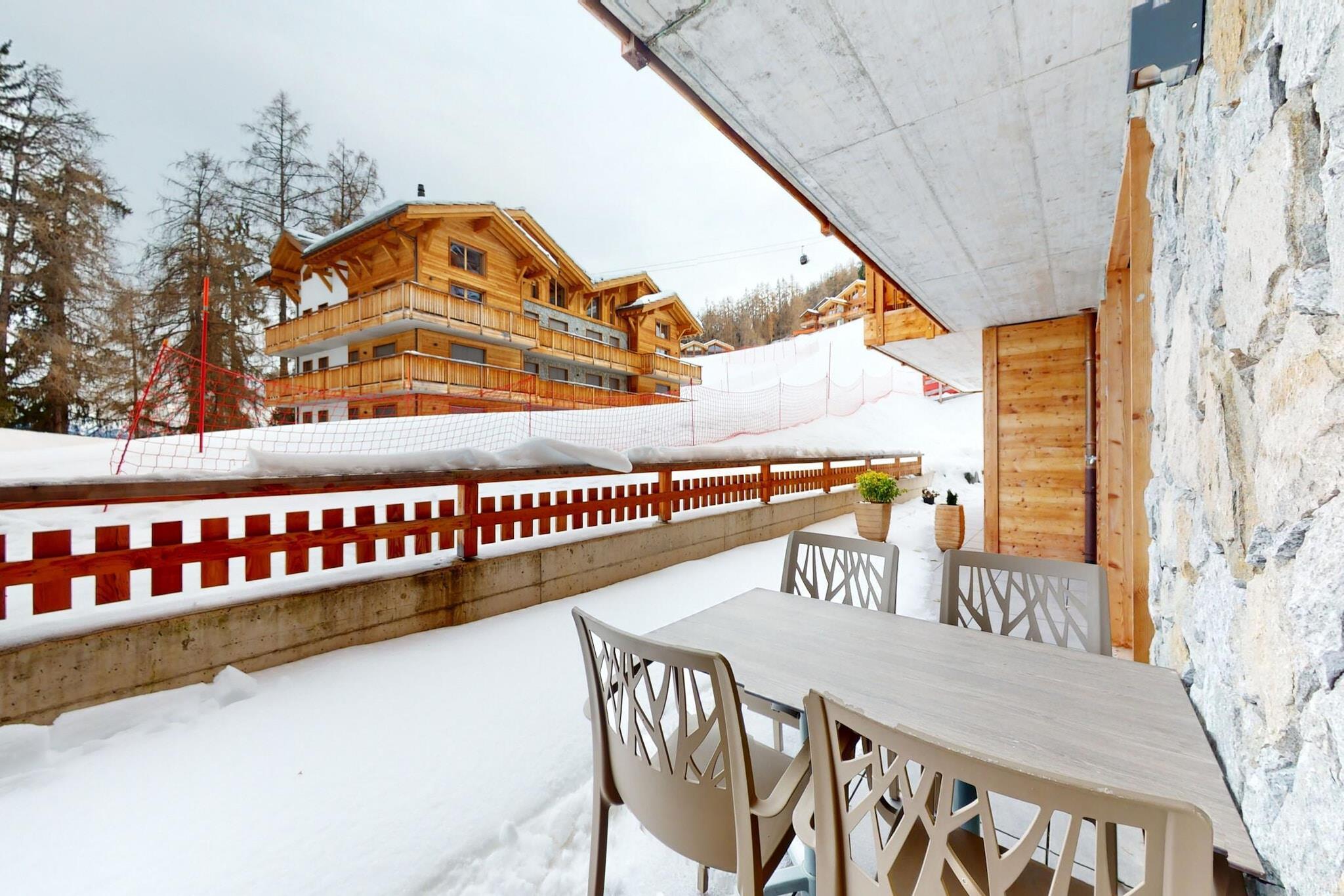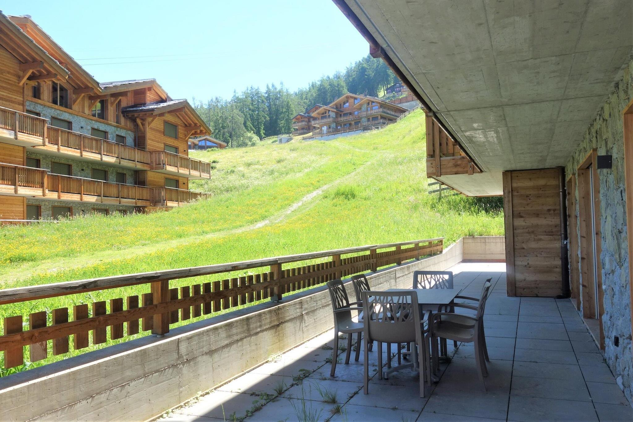 This spacious and inviting apartment accommodates up to 6 guests, making it an ideal choice for families or groups. It features three bedrooms, including options for single and bunk beds, ensuring comfortable sleeping arrangements. The living area includes a sofa, creating a cozy space for relaxation. Guests will appreciate the balcony with stunning views, enhancing the overall experience. Pets are welcome, providing an inclusive atmosphere for all family members. Complimentary access to nearby recreational facilities offers opportunities for leisure activities. Situated in the heart of Veysonnaz, the apartment benefits from a prime location near various attractions. The ski slopes are just a short distance away, making it perfect for winter sports enthusiasts. Visitors can explore the charming village, which is only a few minutes walk from the apartment and offers a selection of shops and dining options. Convenient transport links, including a cable car only 150 meters away and public transport options nearby, facilitate easy travel to surrounding areas and attractions. The well-equipped kitchen is designed for convenience, featuring essential appliances such as a fridge, oven, and dishwasher, along with a fondue set to enhance your culinary experience. Additional amenities include a washing machine for added convenience and a ski room to store equipment securely. The residence offers a peaceful environment, surrounded by nature, allowing guests to enjoy both comfort and tranquility during their stay.