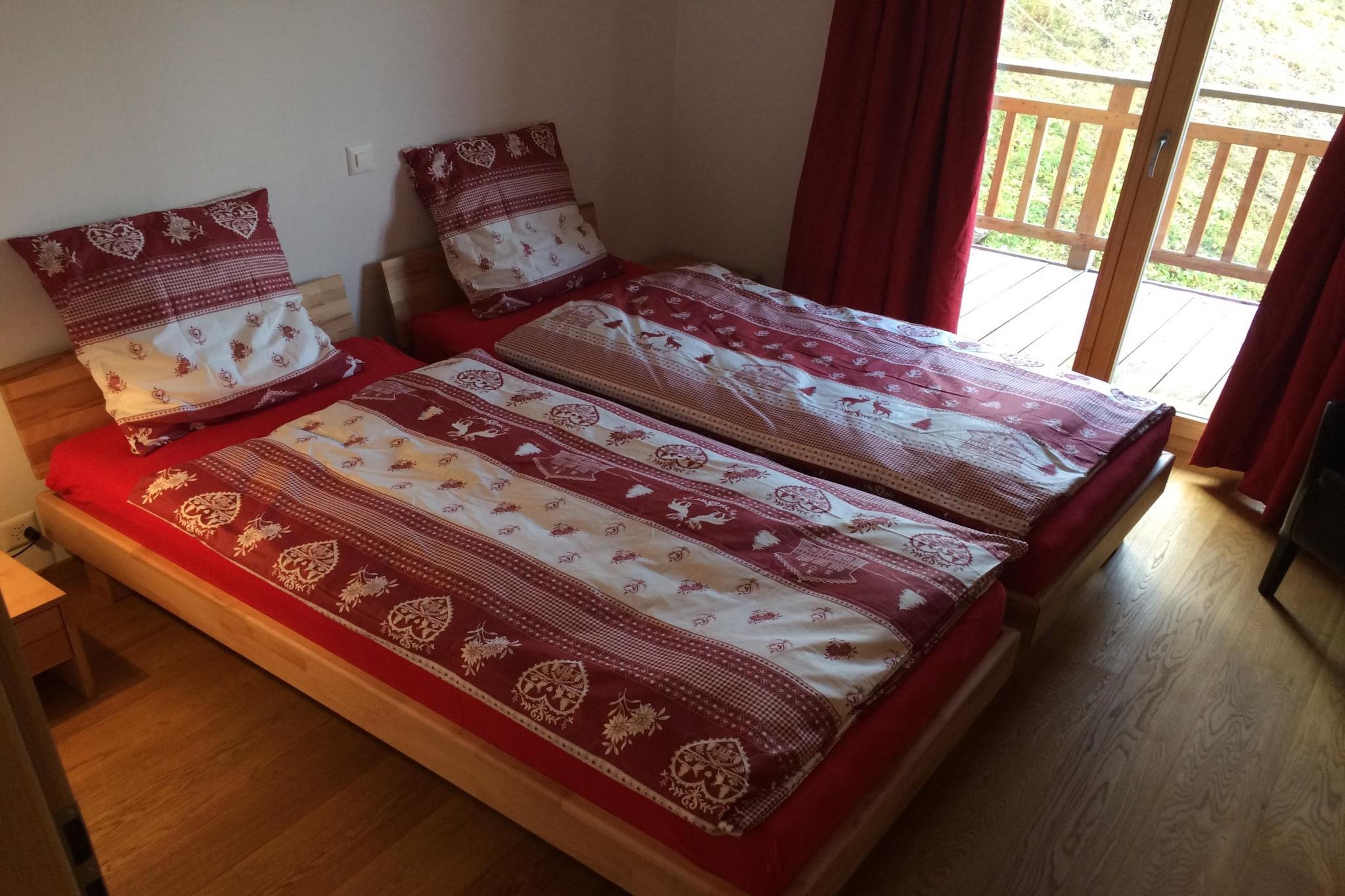 Welcome to Ski Paradise, a luxurious 5-star apartment in Veysonnaz, Switzerland, perfect for families. This spacious 87 m² retreat accommodates up to 4 guests and features stunning views of the Rhone Valley from your private balcony. The modern living room is equipped with a cozy fireplace, flat-screen cable TV, CD and DVD players, ensuring a relaxing stay. The fully equipped open kitchen includes a dishwasher, oven, microwave, fondue pot, toaster, Nespresso coffee machine, kettle, and a raclette grill. The apartment includes a bedroom with a double bed (160x200) and another with two single beds (90x200), along with two bathrooms—one with a bathtub and the other with a shower and WC. For your well-being, luxury Nuxe care products are provided. Additional amenities include access to a spa with a jacuzzi and sauna, a laundry room, and a ski room. Parking is available with one indoor space and/or additional outdoor parking for a fee. Situated conveniently near the gondola (150m) and a free winter shuttle bus (200m), the resort center with shops and restaurants is just a short walk away. To ensure a smooth stay, note that bed linen, towels, final cleaning, tourist tax, and a security deposit are required at an extra cost. As a guest, you'll enjoy access to a public swimming pool and the Sun&Fun activity program in summer, with discounts on equipment rentals. Enhance your experience with optional services like bed-making and gourmet baskets. Experience the Swiss Alps with Alpvision—your unforgettable holiday awaits!