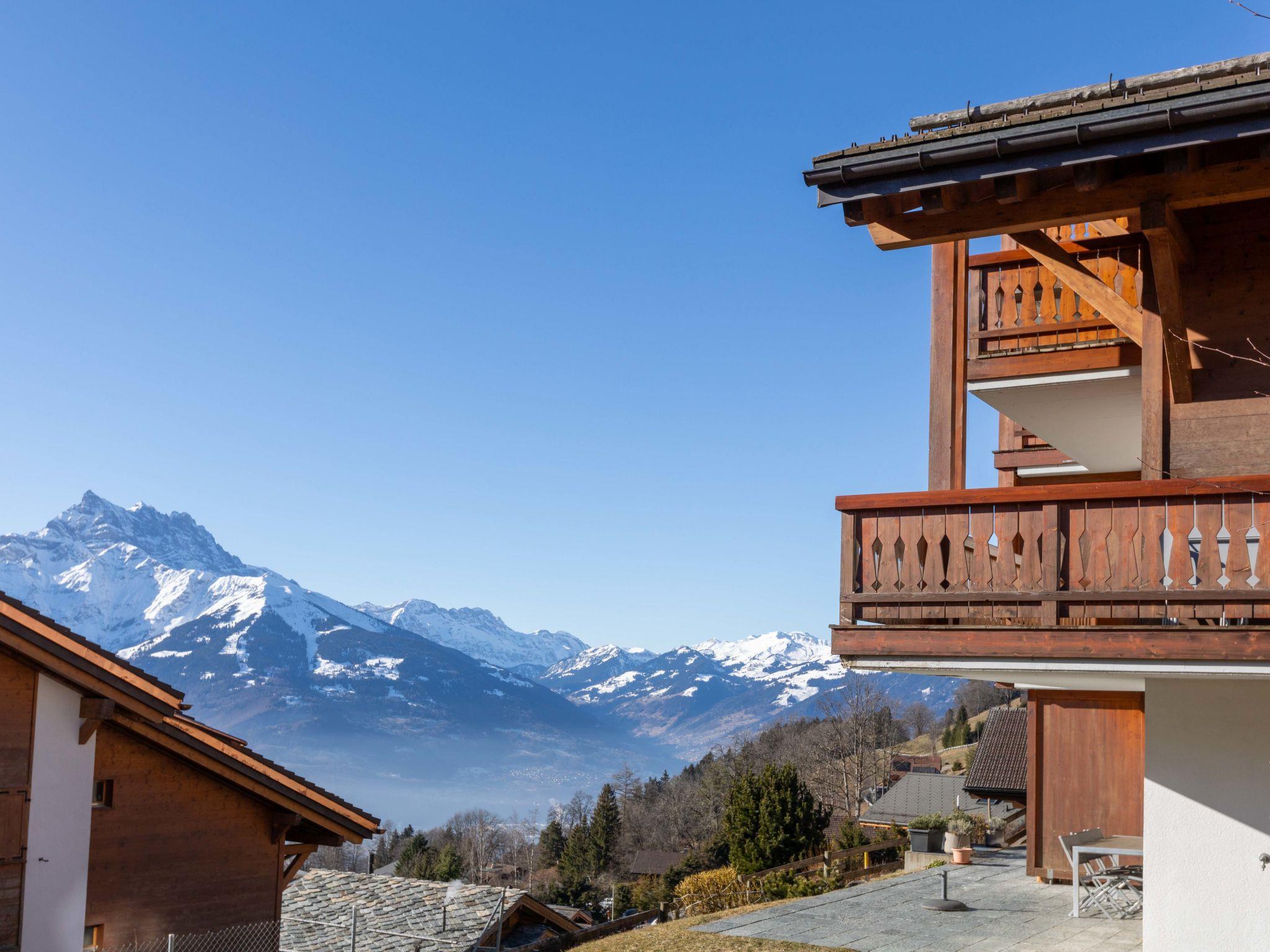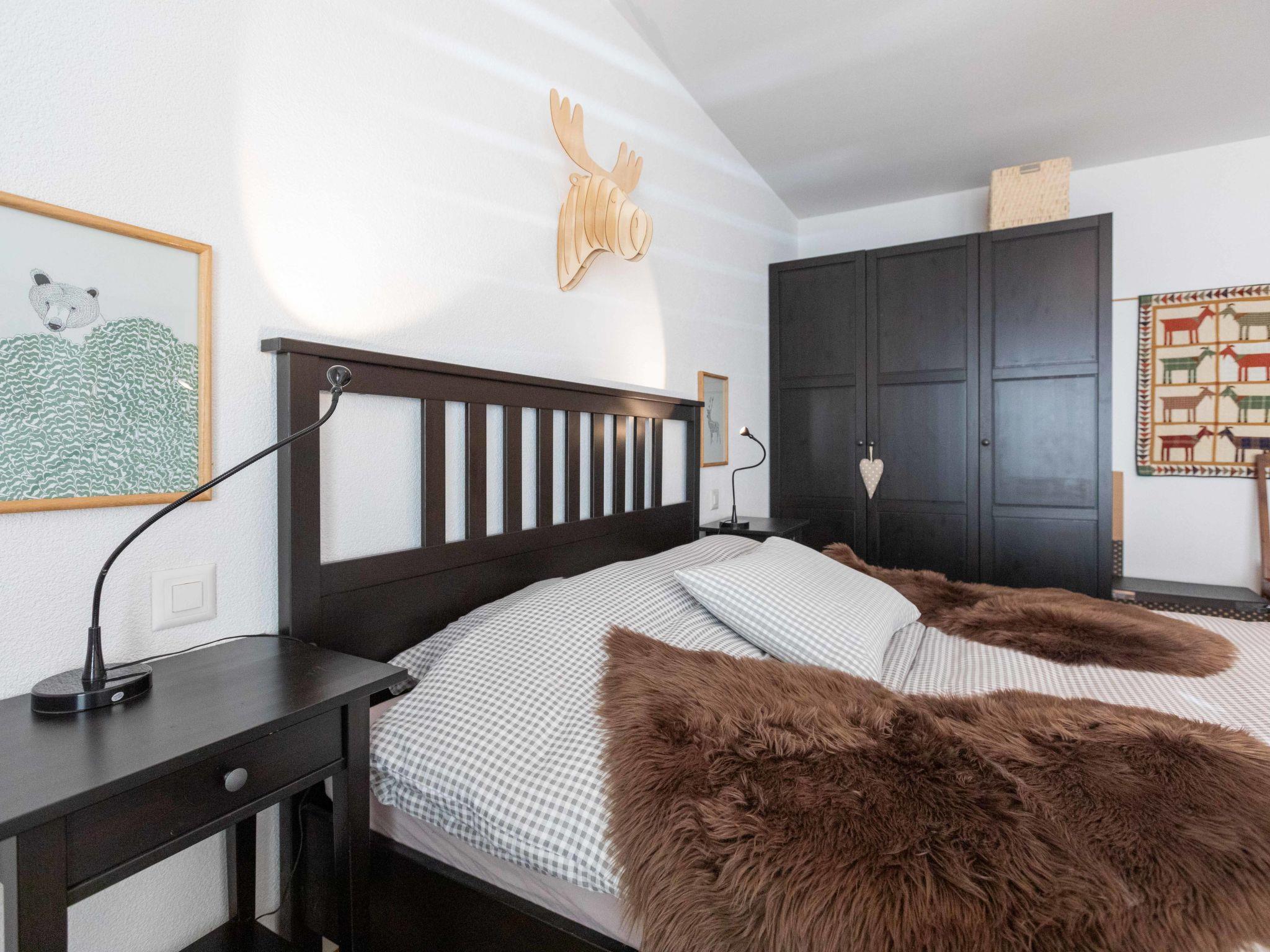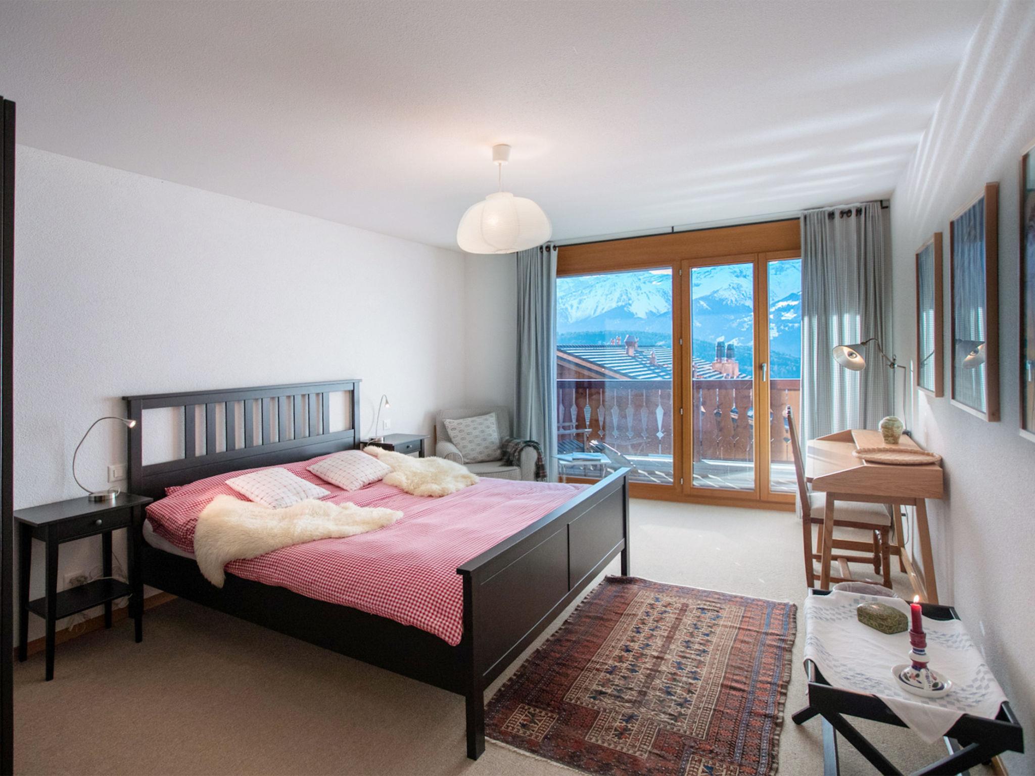 "Matin Calme A2", 3-room apartment 99 m2 on 2 levels, on the ground floor, south-west facing position. Practical and comfortable furnishings: living/dining room with open-hearth fireplace, dining table and TV (flat screen). Exit to the garden, south facing position and south-west facing position. Open kitchen (oven, dishwasher, 4 ceramic glass hob hotplates, toaster, kettle, freezer, electric coffee machine, Capsules for coffee machine (Nespresso) extra, raclette grill, fondue Set (cheese)). Sep. WC. Upper floor: 1 room with 1 french bed (1 x 160 cm, length 200 cm). Exit to the balcony, south-west facing position. 1 room with 1 french bed (1 x 160 cm, length 200 cm). Exit to the balcony, south-west facing position. Bath/WC. Balcony, south-west facing position, garden, south-west facing position. Balcony furniture. Very beautiful view. Facilities: washing machine, dryer, iron, hair dryer. Internet (WiFi, free). Garage space n 5 (1 car). Please note: non-smokers only, parking space for small car only.