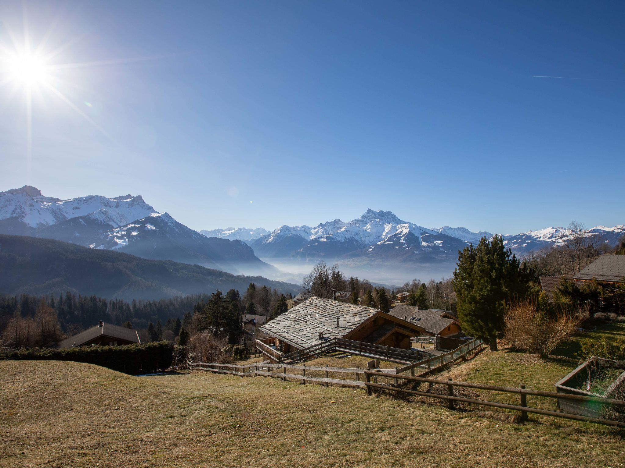 Chalet "Matin Calme", 4 storeys, surrounded by trees and meadows. On the outskirts, 600 m from the centre of Chesières, in a quiet position on a slope, in a cul-de-sac, in the countryside, south-west facing position. Private: garden with lawn. In the house: lift, storage room for skis, central heating system. Motor access to the house. In Winter: please take snow chains, 4x4 car recommended in winter. Shop 1.6 km, grocery 500 m, restaurant, café, bus stop 300 m, railway station "Villars" 2 km, thermal baths "Lavey-les-Bains" 19 km. Sports harbour 25 km, golf course (18 hole) 8 km, indoor tennis centre 2.7 km, sports centre 2.7 km, mountain railway 2 km, ski lift 2.6 km, gondola lift 1.7 km, ski bus stop 300 m, ski school 1.9 km, children's ski school 2.7 km, ice rink 1.6 km, children's playground 600 m. Free ski bus service to the ski region Villars.