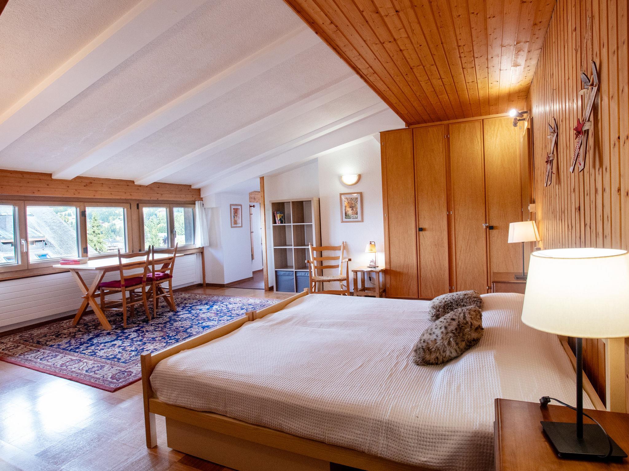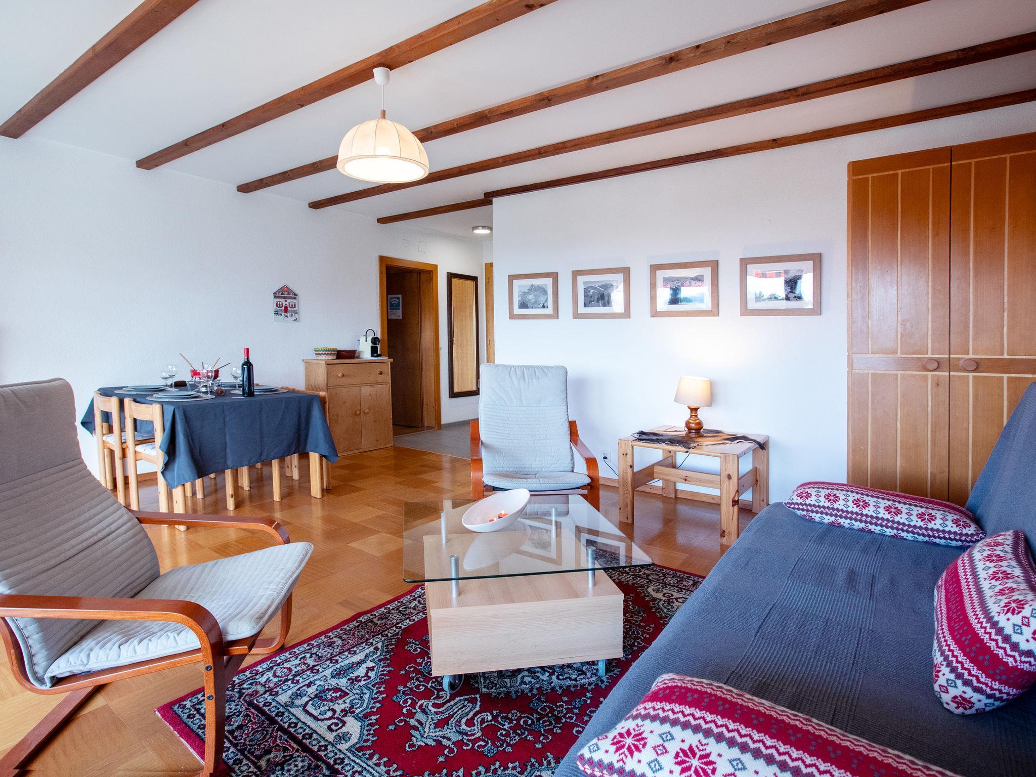 "Diamant 39", 2-room penthouse 60 m2, south facing position. Partly renovated in 2018, simple and practical furnishings: living/dining room with 1 sofabed (140 cm, length 200 cm), dining table, kitchen corner and bath/WC. Exit to the balcony, south facing position. 1 large room with sloping ceilings with 2 beds (90 cm, length 200 cm), bath/WC. Open kitchen (oven, dishwasher, 4 induction hot plates, toaster, kettle, freezer, electric coffee machine, Capsules for coffee machine (Nespresso) extra, raclette grill, fondue Set (cheese)). Balcony 10 m2, south facing position. Balcony furniture. Very beautiful panoramic view of the mountains. Facilities: hair dryer. Internet (WiFi, free). Parking space n 39A. Please note: non-smokers only.