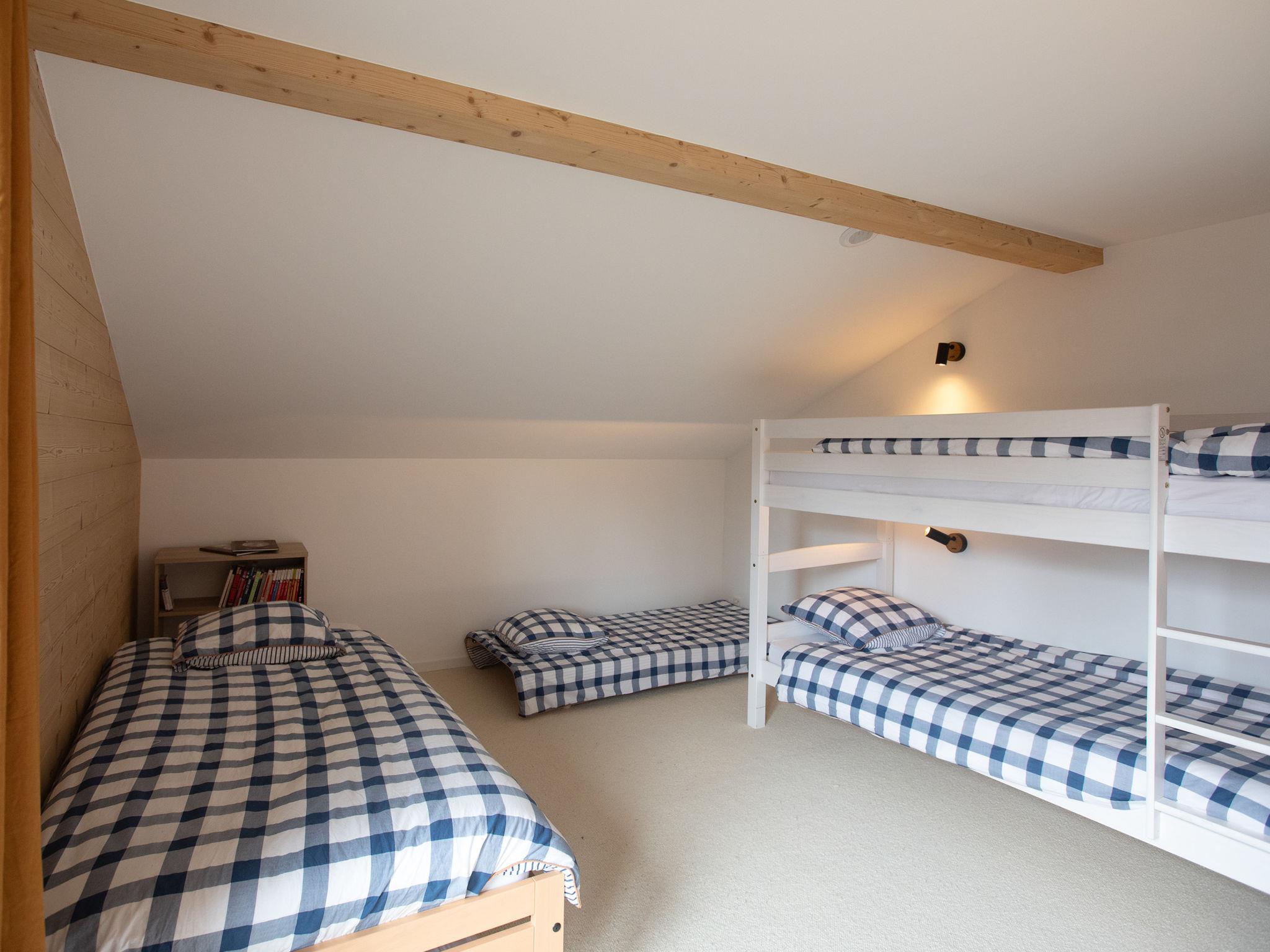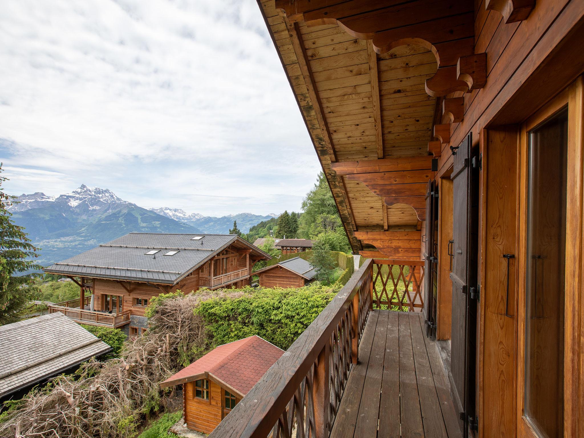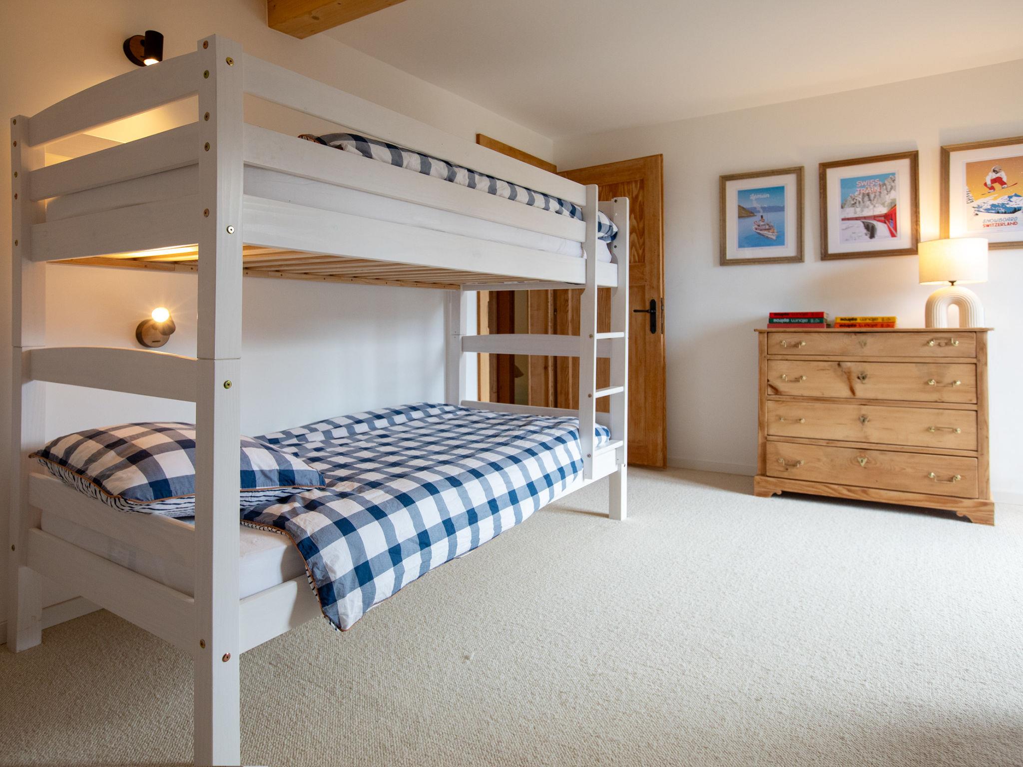 "Chalet Shambala", 7-room chalet 200 m2 on 3 levels, south facing position. Modern and tasteful furnishings: large living/dining room with open-hearth fireplace and dining table. Exit to the terrace, south facing position and west facing position. Small office. Open kitchen (oven, dishwasher, 4 induction hot plates, toaster, kettle, microwave, freezer, electric coffee machine, Capsules for coffee machine (Nespresso) extra, raclette grill, fondue Set (cheese)). Sep. WC. On the lower ground floor: 1 double bedroom with 1 french bed (180 cm, length 200 cm). Playroom with TV. Shower/WC. Upper floor: 1 double bedroom with 1 french bed (1 x 160 cm, length 200 cm), shower/WC. Exit to the balcony, south facing position. 1 children's room with 1 x 2 bunk beds (90 cm, length 200 cm), 1 pull-out bed (2 pers. 2 x 90 cm, length 200 cm). Exit to the balcony, south facing position. 1 double bedroom with 2 beds (80 cm, length 200 cm). Bath/WC. Balcony, south facing position terrace, south facing position and west facing position. Terrace furniture. Very beautiful panoramic view of the mountains. Facilities: washing machine, dryer, baby cot, hair dryer. Internet (WiFi, free). Parking (2 cars). Please note: non-smoking house.