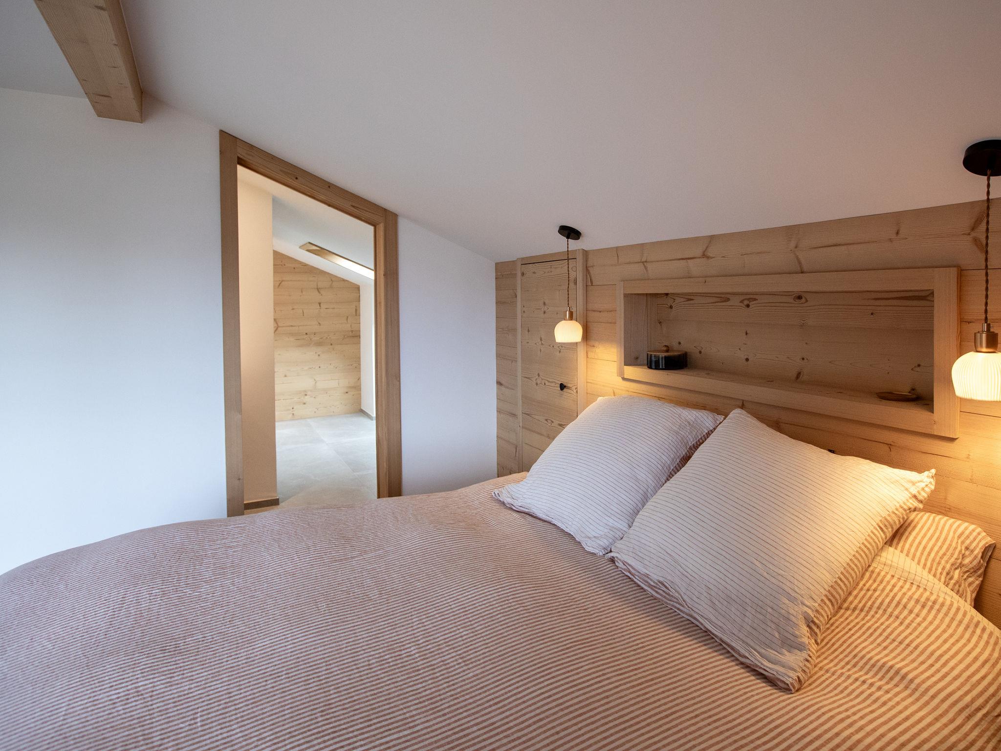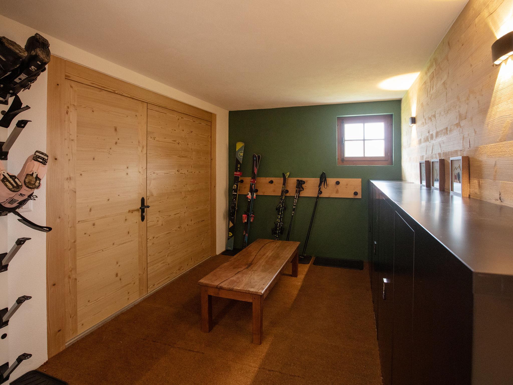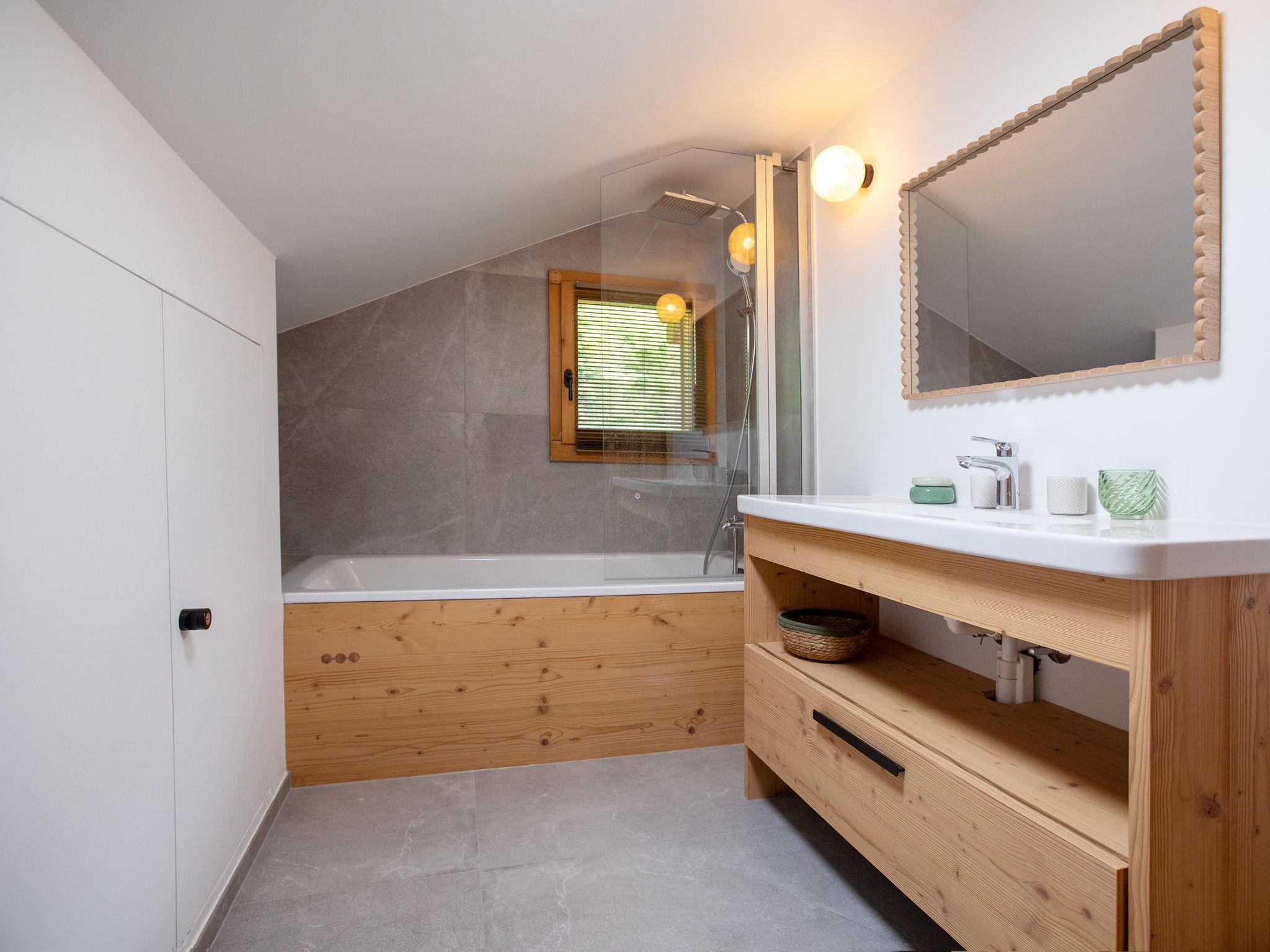 "Chalet Shambala", 7-room chalet 200 m2 on 3 levels, south facing position. Modern and tasteful furnishings: large living/dining room with open-hearth fireplace and dining table. Exit to the terrace, south facing position and west facing position. Small office. Open kitchen (oven, dishwasher, 4 induction hot plates, toaster, kettle, microwave, freezer, electric coffee machine, Capsules for coffee machine (Nespresso) extra, raclette grill, fondue Set (cheese)). Sep. WC. On the lower ground floor: 1 double bedroom with 1 french bed (180 cm, length 200 cm). Playroom with TV. Shower/WC. Upper floor: 1 double bedroom with 1 french bed (1 x 160 cm, length 200 cm), shower/WC. Exit to the balcony, south facing position. 1 children's room with 1 x 2 bunk beds (90 cm, length 200 cm), 1 pull-out bed (2 pers. 2 x 90 cm, length 200 cm). Exit to the balcony, south facing position. 1 double bedroom with 2 beds (80 cm, length 200 cm). Bath/WC. Balcony, south facing position terrace, south facing position and west facing position. Terrace furniture. Very beautiful panoramic view of the mountains. Facilities: washing machine, dryer, baby cot, hair dryer. Internet (WiFi, free). Parking (2 cars). Please note: non-smoking house.
