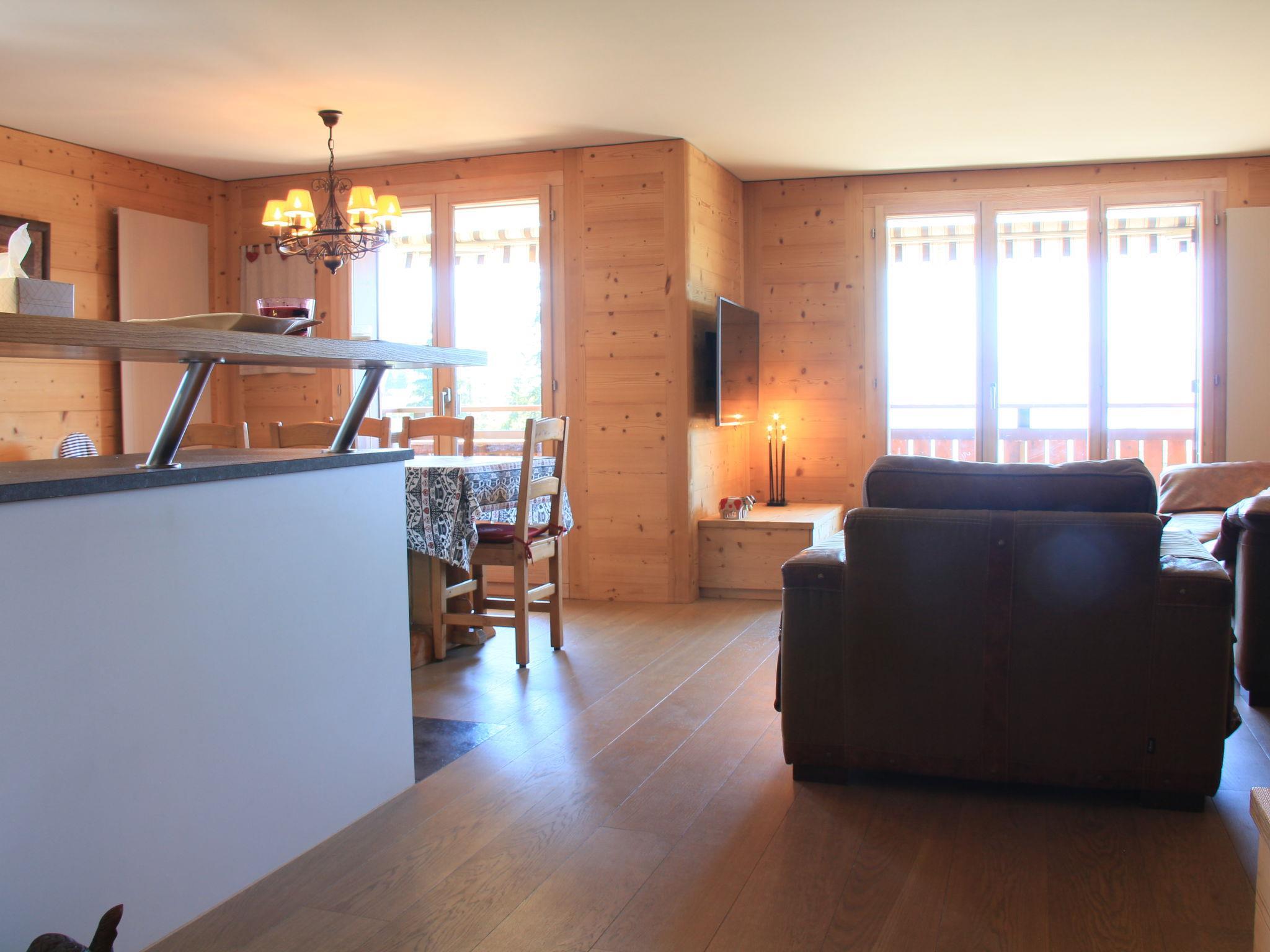 "Sunset A 4", 3-room apartment 76 m2 on 1st floor, south-west facing position. Renovated, comfortable and tasteful furnishings: living/dining room with open-hearth fireplace, dining table and TV (flat screen). Exit to the balcony, south-west facing position. 1 room with 1 double bed (2 x 90 cm), bath/WC and TV (flat screen). 1 room with 1 x 2 bunk beds (90 cm), TV (flat screen). Open kitchen (oven, dishwasher, 4 induction hot plates, electric coffee machine, Capsules for coffee machine (La Semeuse) extra, raclette grill, fondue Set (cheese)). Shower/WC. Balcony 11 m2, south-west facing position. Balcony furniture. Very beautiful view of the mountains. Garage space n 15 (1 car). Please note: non-smokers only.