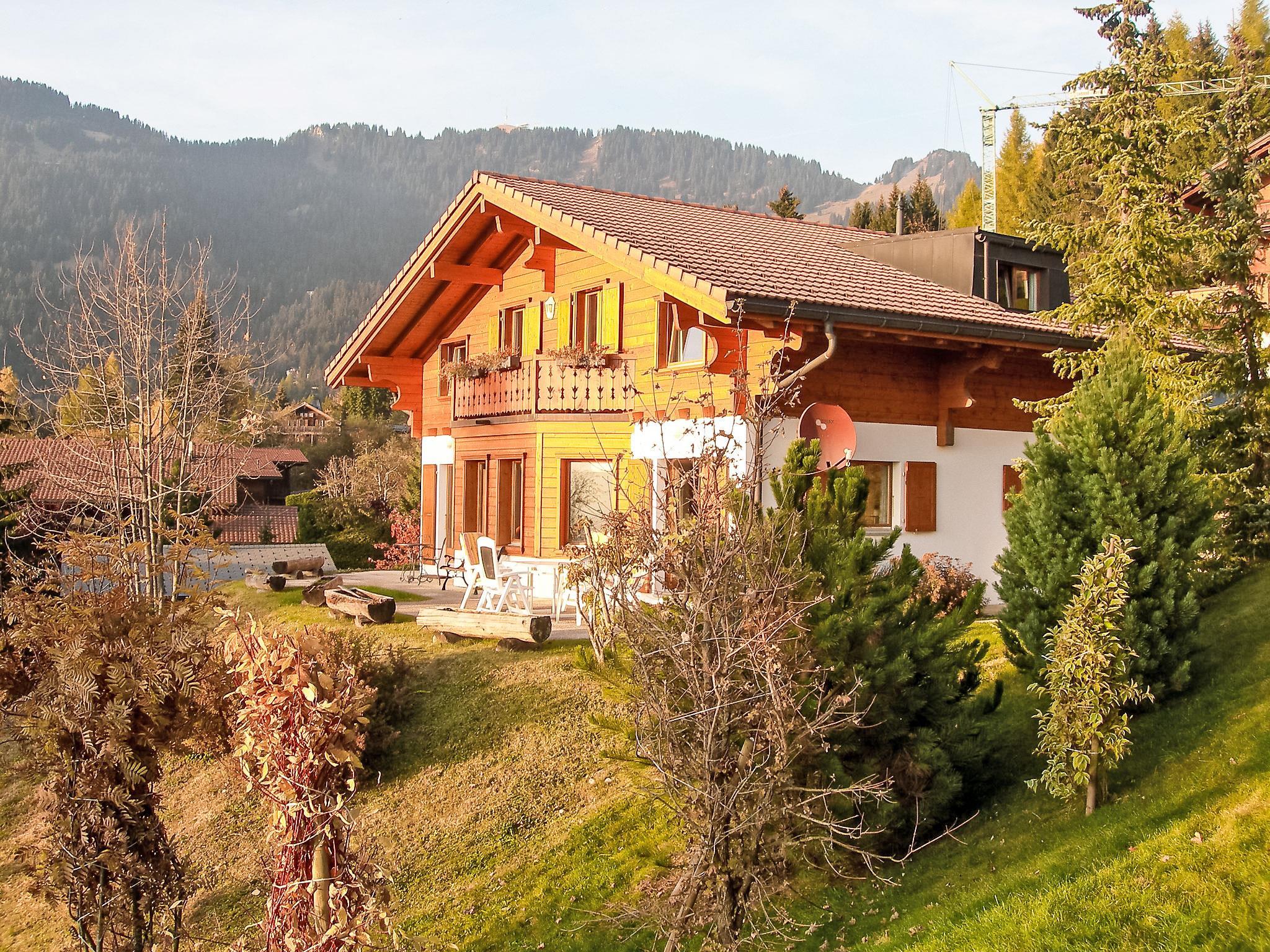 Domaine de la Fôret: Beautiful chalet "Petit Pont", 3 storeys, surrounded by trees. In the resort, 1.1 km from the centre, in a quiet, sunny position in the residential district, south facing position. Private: garden with lawn 1'100 m2 wildlife garden. Garden furniture, barbecue. In the house: billiard table, table football, storage room for skis, central heating system. Room cleaning weekly on request (extra). Motor access to the house. In Winter: please take snow chains. Shop 1.2 km, grocery 1 km, restaurant 800 m, bakery 1.2 km, 9 minute walk to the centre, bus stop 1.5 km, railway station "Villars-Bretaye" 1.5 km, indoor swimming pool 1.6 km, thermal baths "Lavey-les-Bains" 19 km. Golf course (18 hole) 7 km, indoor tennis centre 1.7 km, mountain railway 1.5 km, ski lift 1.2 km, gondola lift 1.1 km, ski bus stop 1.1 km, ski school 1.5 km, children's ski school 1.8 km, ice rink 1.7 km. Free ski bus service to the ski region Villars.