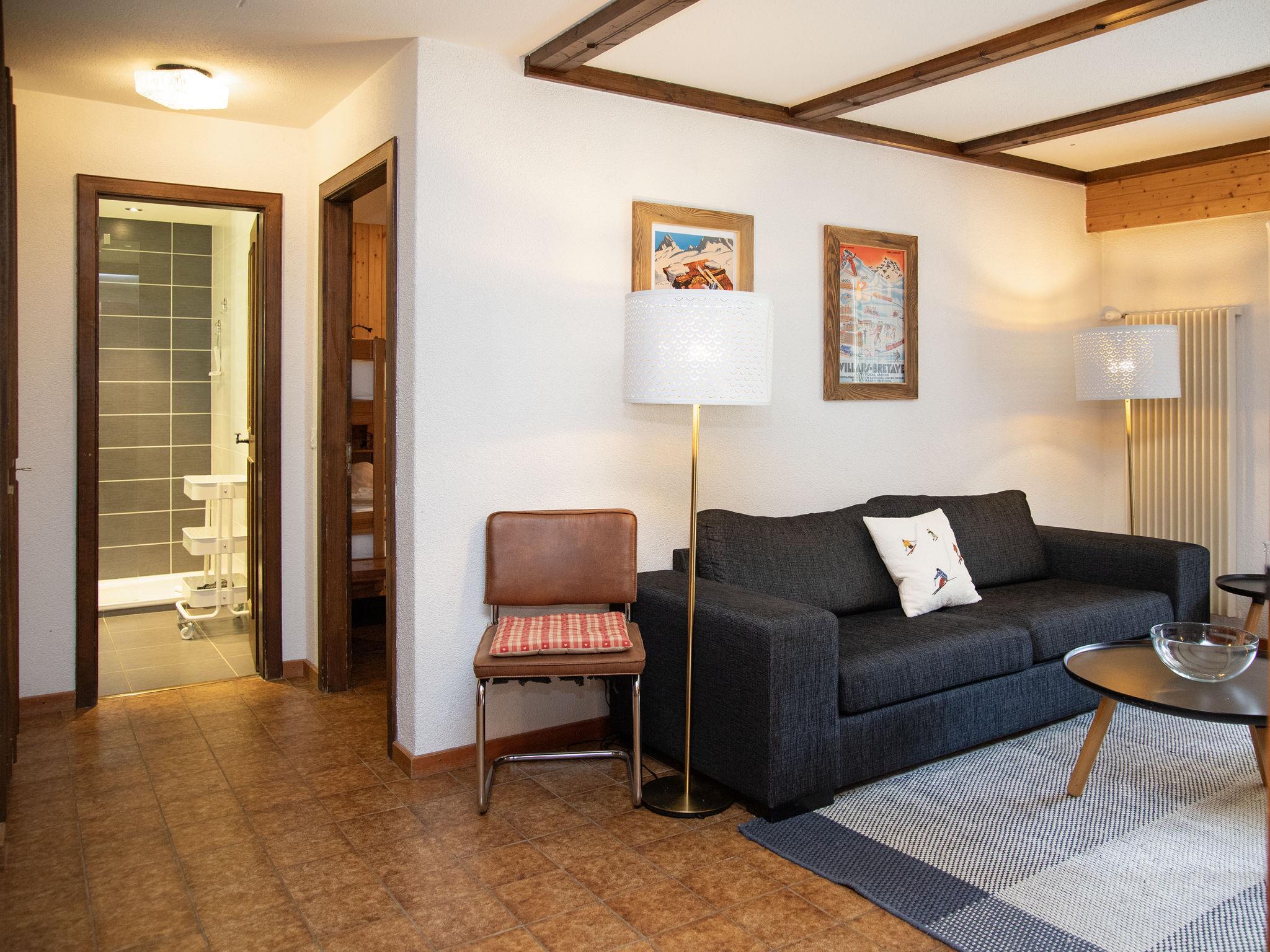 Rochegrise: Residence "Opale". Above Villars, in a sunny position, 200 m from the skiing area, south facing position. For shared use: property with lawn and plants. In the house: lift, storage room for skis, central heating system, washing machine (for shared use, extra). Parking (limited number of spaces) on the premises, public parking 20 m. Shop 1 km, grocery 700 m, restaurant, bakery 900 m, 10 minute walk to the centre, bus stop 1.5 km, railway station "Roches Grises" 120 m, indoor swimming pool 1.4 km, thermal baths "Lavey-les-Bains" 19 km. Sports harbour 25 km, golf course (18 hole) 7 km, indoor tennis centre 50 m, sports centre 50 m, mountain railway 120 m, ski lift 500 m, gondola lift 2 km, ski bus stop 1.5 km, ski school 1.4 km, children's ski school 50 m, ice rink 1.4 km, children's playground 200 m. Free ski bus service to the ski region Villars. Please note: Additional accommodations can be booked.