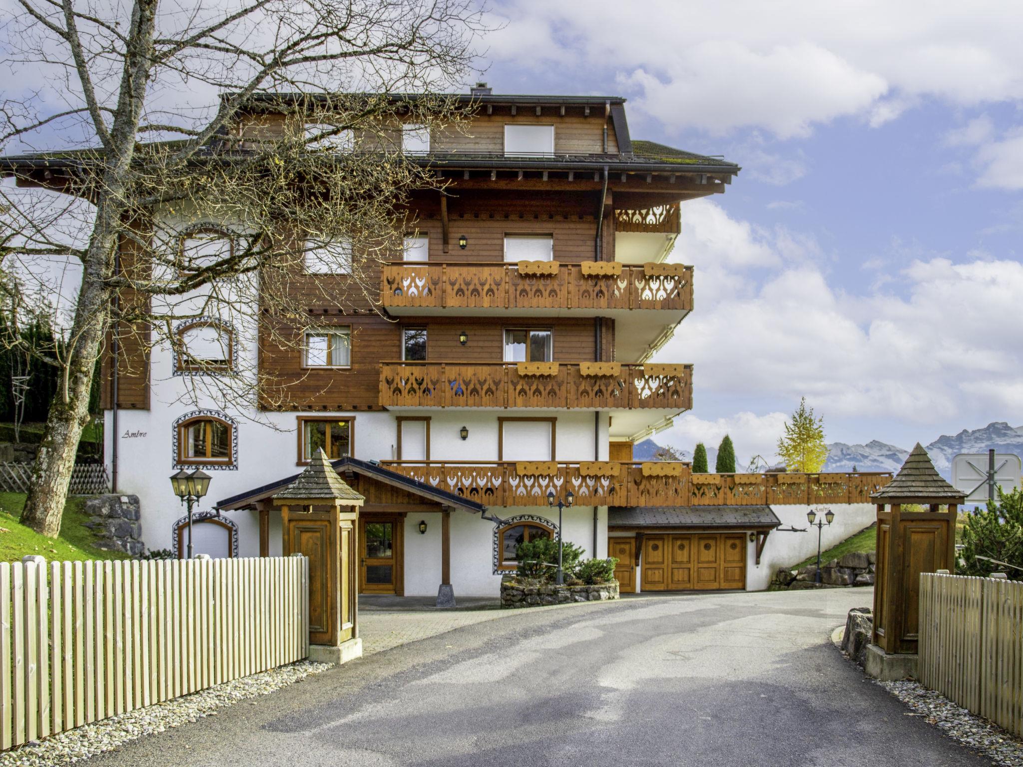 Rochegrise: Very beautiful residence "Ambre", 4 storeys. Above Villars, south facing position. In the house: lift, storage room for skis, washing machine, tumble dryer (for shared use). Room cleaning weekly on request (extra). Motor access to the house. In Winter: please take snow chains. Parking (limited number of spaces). Shop 1.4 km, grocery 1 km, restaurant 900 m, bakery 1.5 km, bus stop 1.6 km, railway station "Roches-Grises" 200 m, indoor swimming pool 1.8 km, thermal baths "Lavey-les-Bains" 19 km. Sports harbour 25 km, golf course (18 hole) 7 km, indoor tennis centre 500 m, sports centre 500 m, mountain railway 200 m, ski lift 650 m, gondola lift 1.4 km, ski bus stop 1.6 km, ski school 1.6 km, children's ski school 500 m, cross country ski track 100 m, ice rink 1.8 km, children's playground 1.7 km. Please note: ski bus (free of charge). Free ski bus service to the ski region Villars.